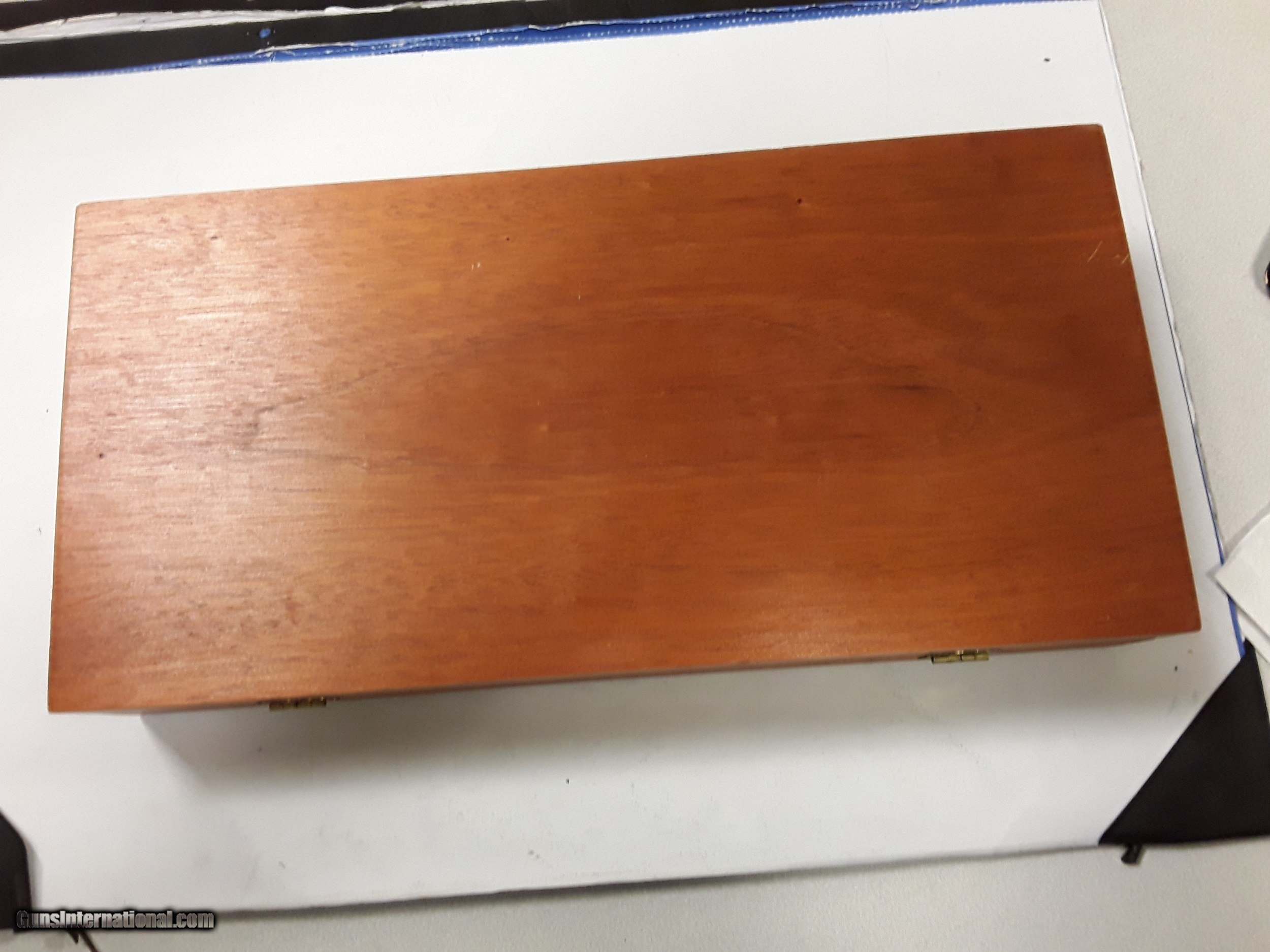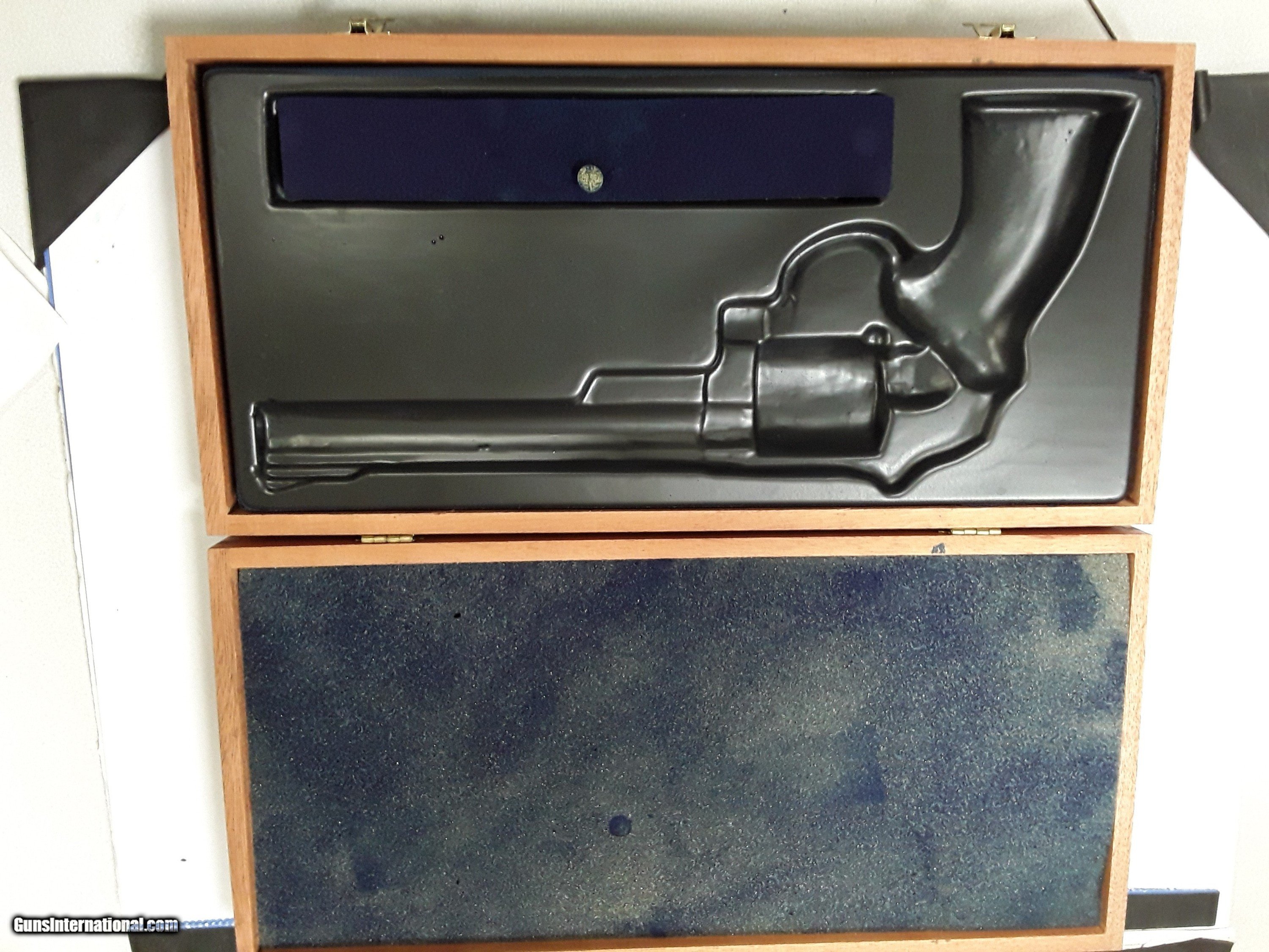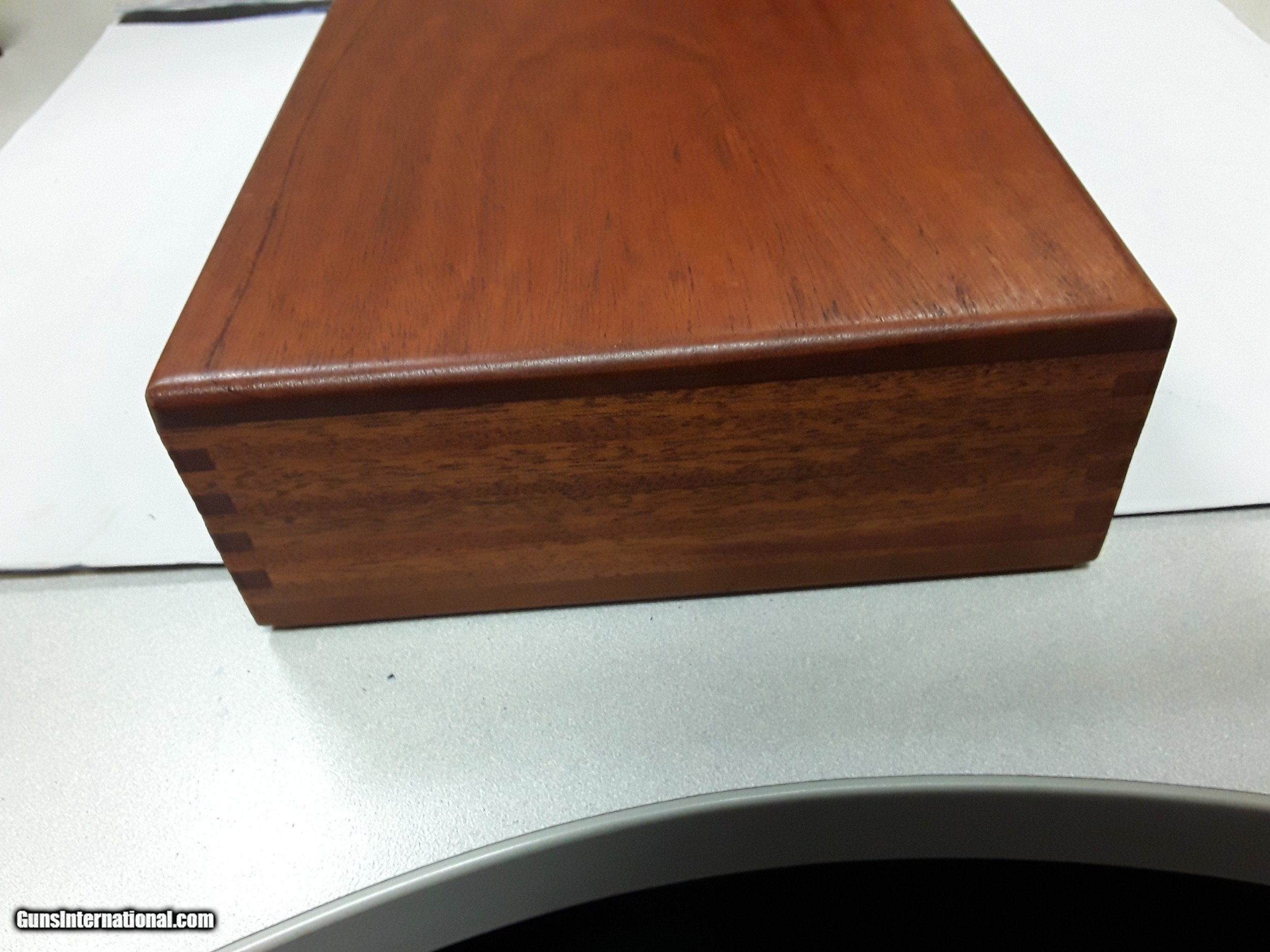 Description: SMITH & WESSON WOODEN PRESENTATION CASE FITS 8" REVOLVER NO MARKS, FOAM DETERIORATED $125.00 DELIVERED SOLD |