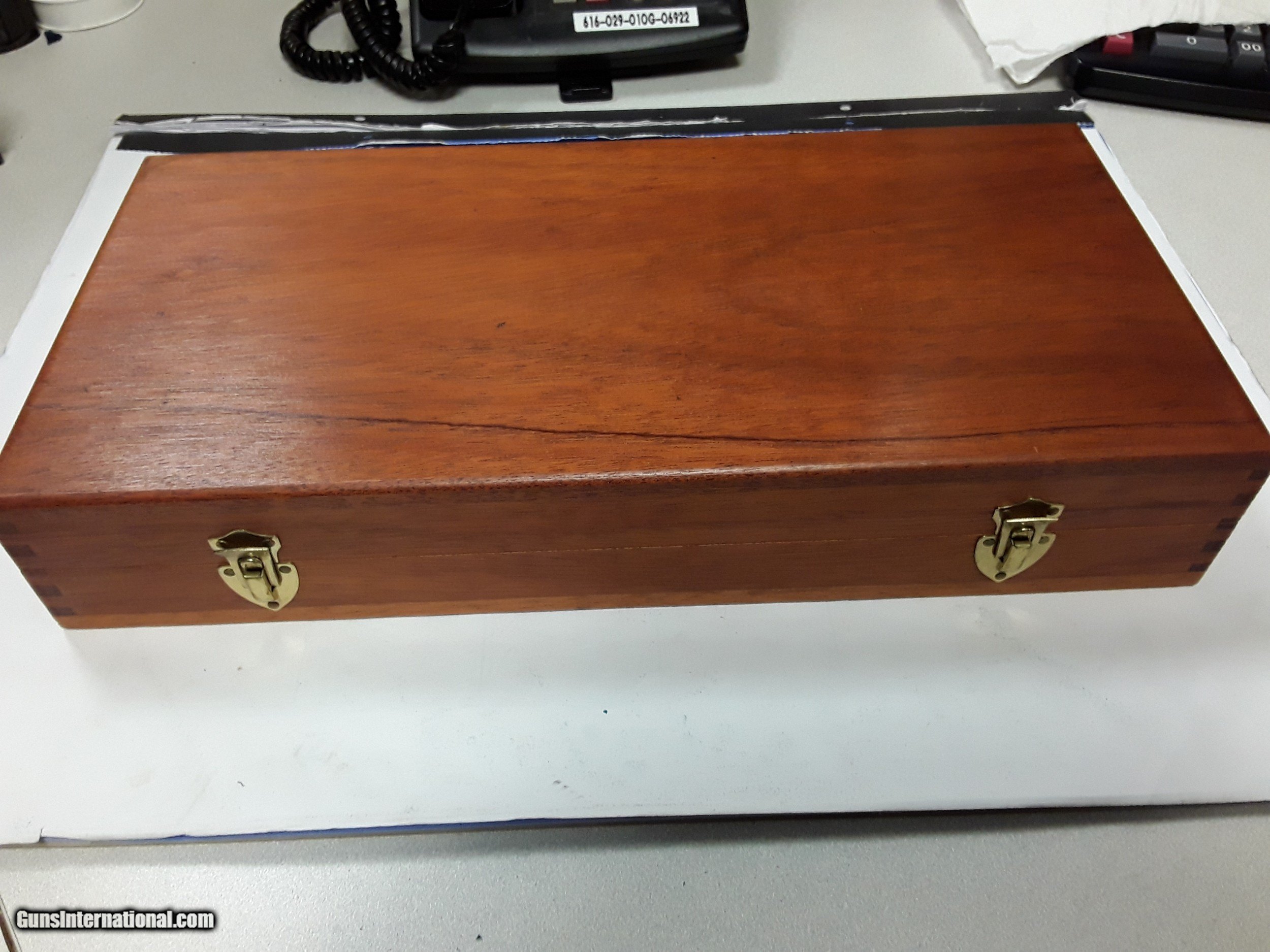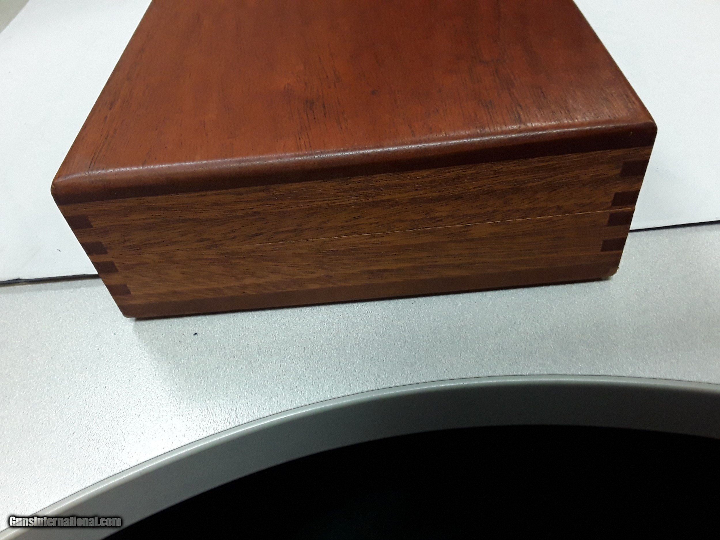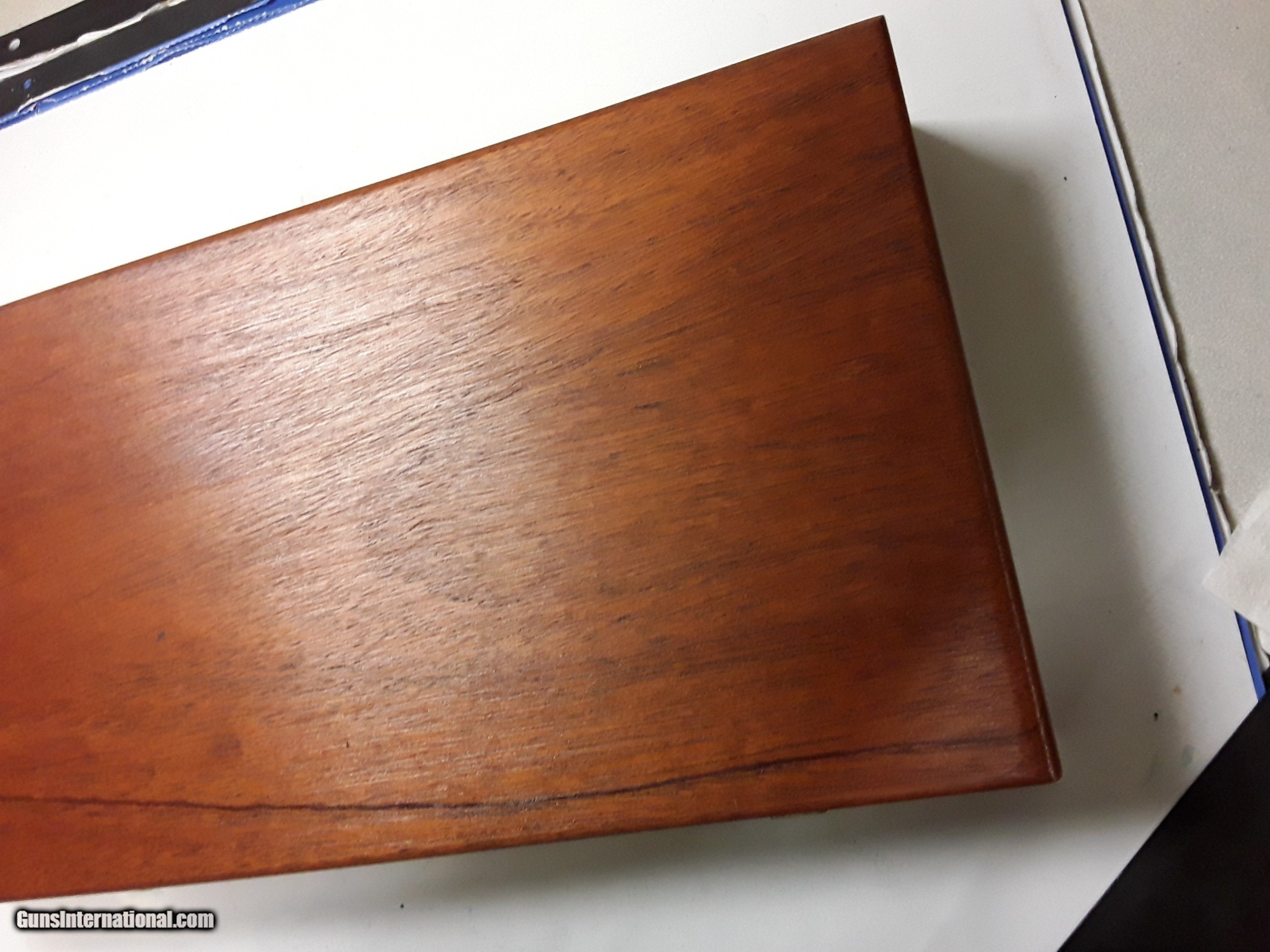 Description: SMITH & WESSON WOODEN PRESENTATION CASE FITS 8" REVOLVER NO MARKS, FOAM DETERIORATED $125.00 DELIVERED SOLD |