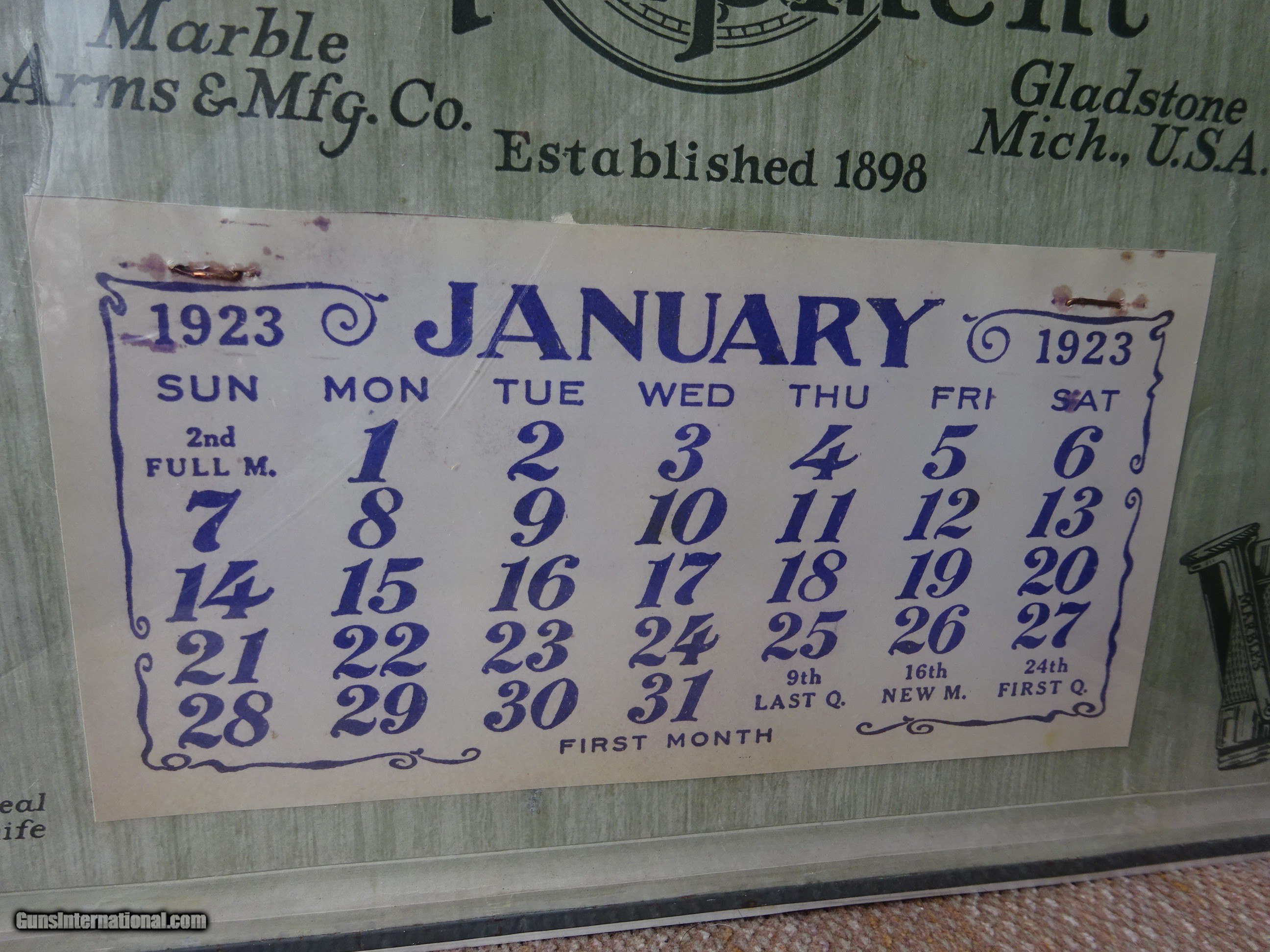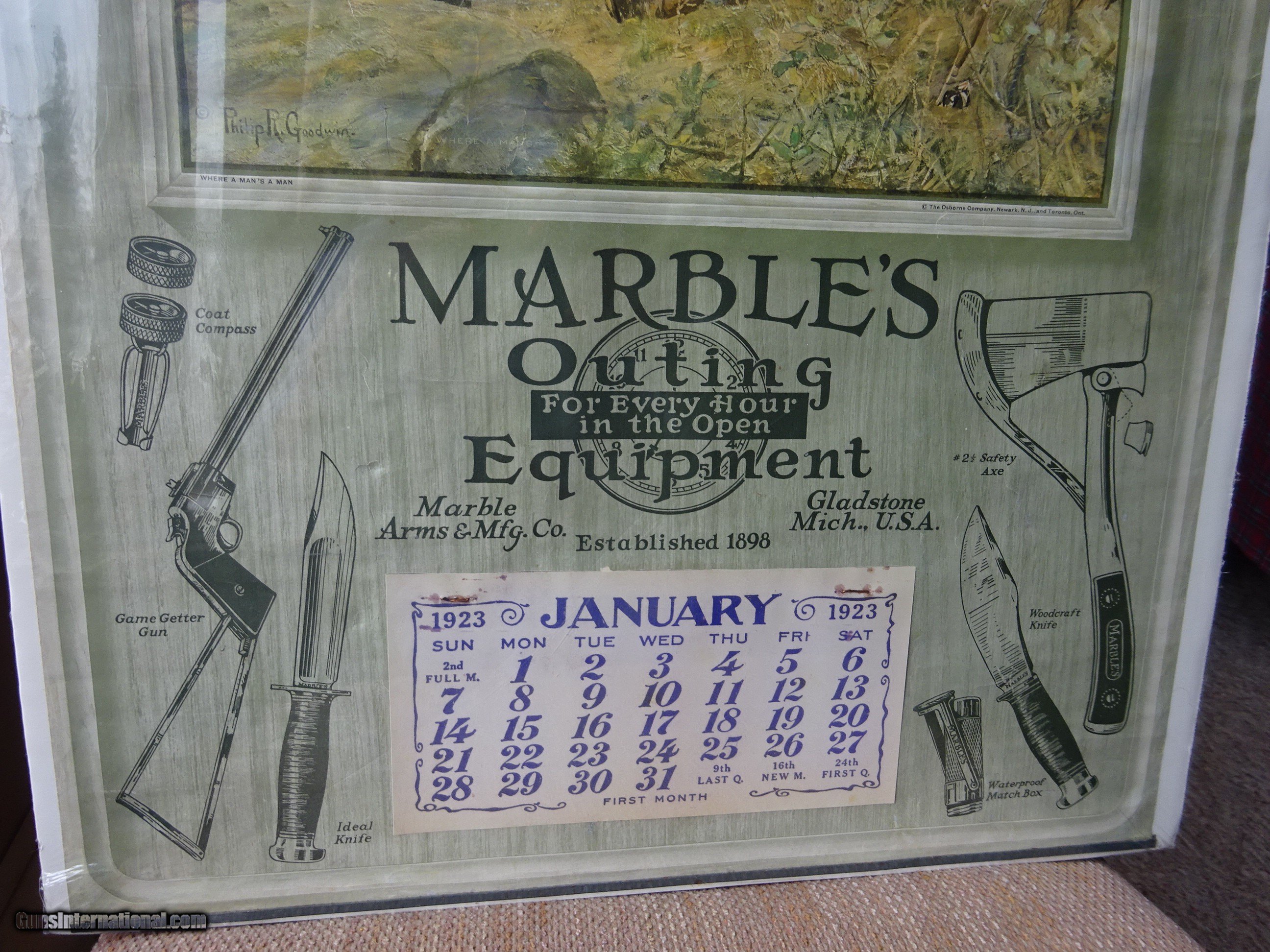 MARBLES ARMS & MFG. CO. GLADSTONE MICH. ORIGINAL CALENDAR 1923 - PHILIP R GOODWIN - EXTREMELY RARE