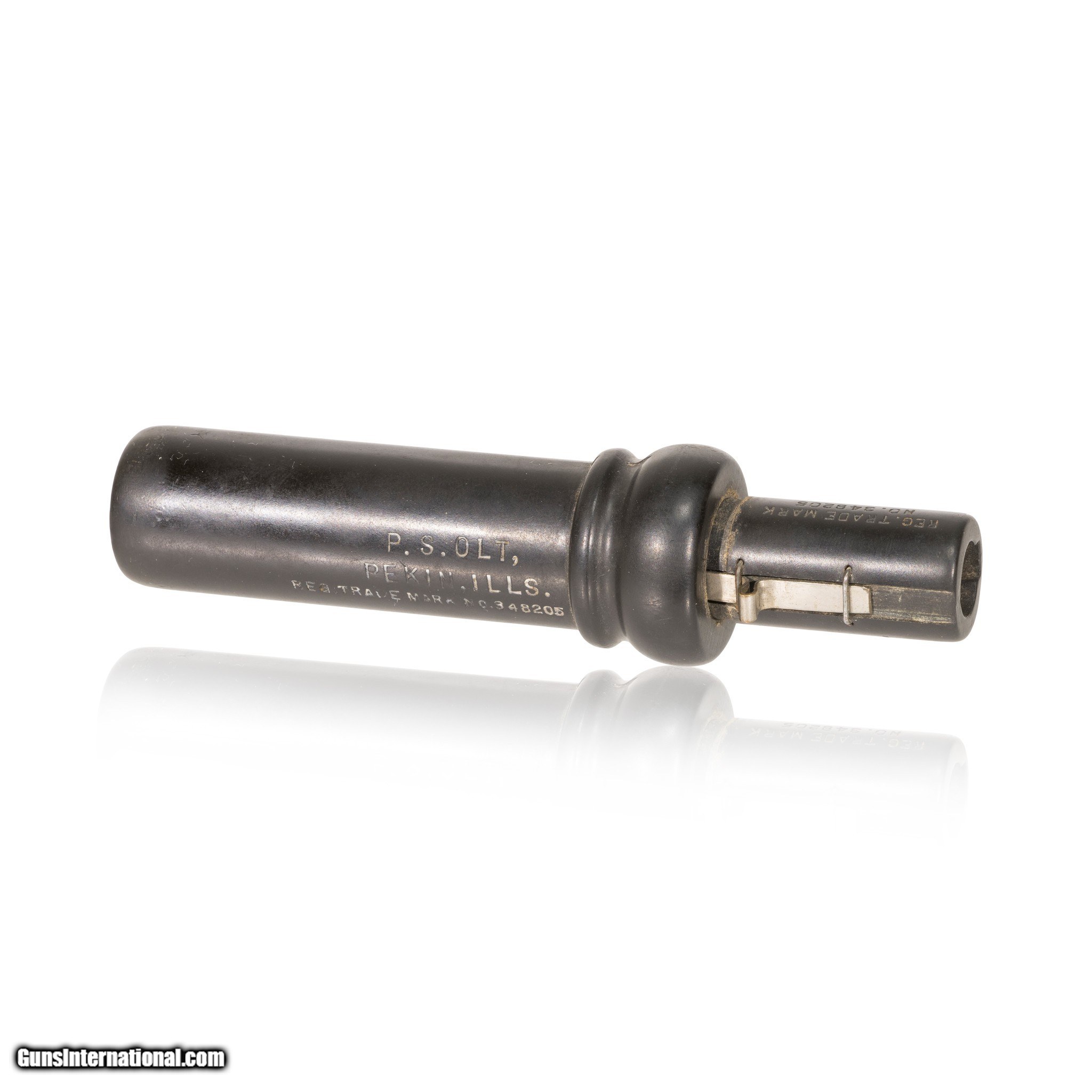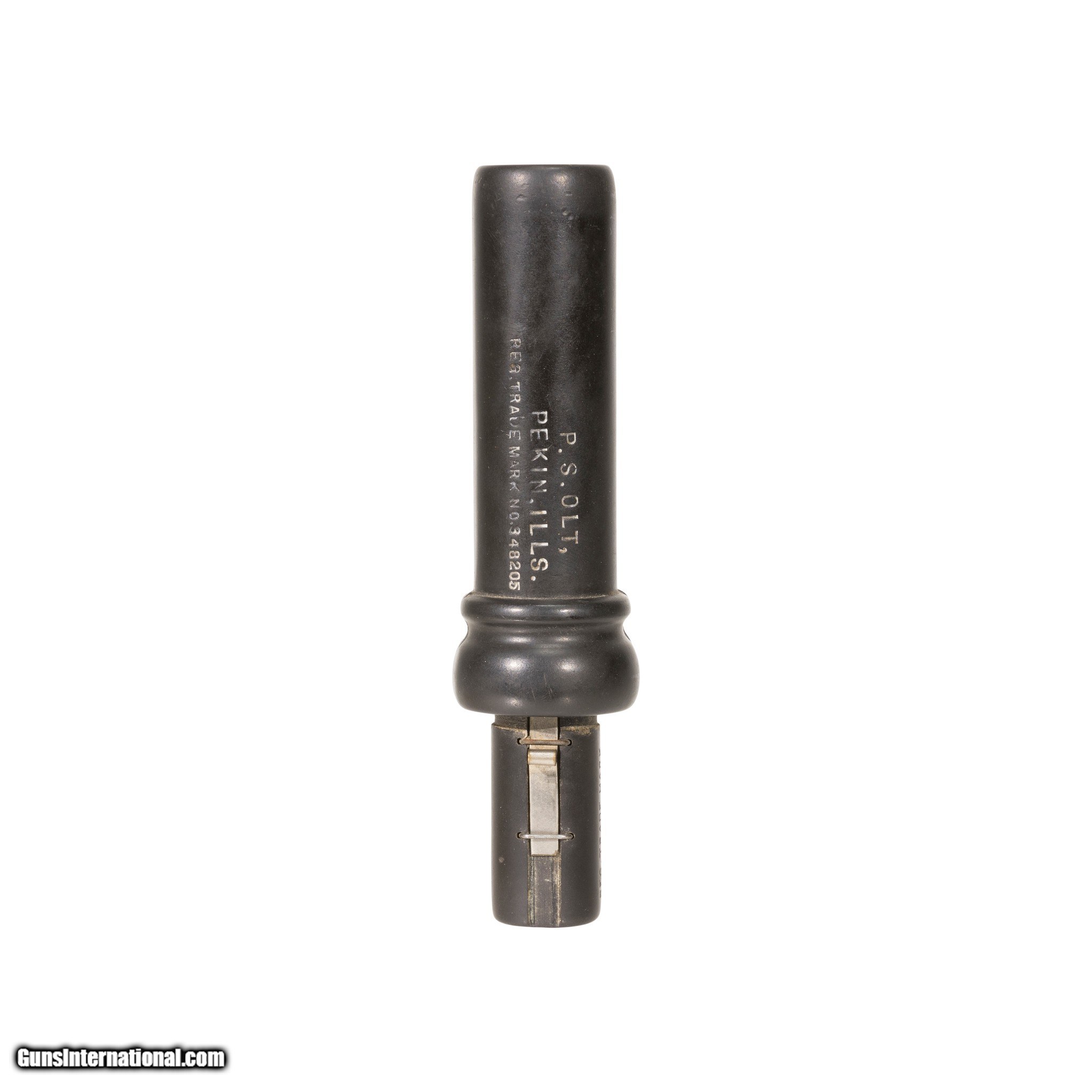Description: Vintage P.S. Olt metal duck call. Piece is in excellent working condition with metal slide. Has engraving still very visible on side. Not sure on exact date, but piece is older. Great for duck hunters and sporting collectors. SOLD |