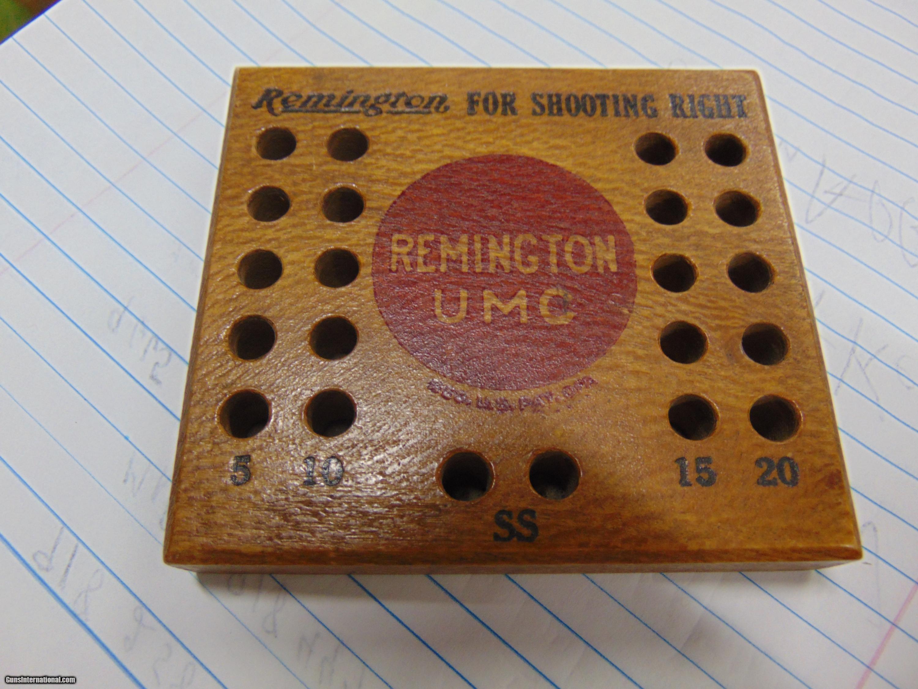 Description: Maple Remington UMC competition shooting block. Another cool example of days gone by, if these where made today the would be plastic like they make cars today. In the words of Merle Haggerd, this shooting block was made when a buck still was still silver, back when the country was strong. All that aside, this piece remains in unused condition, and unless I am looking in the wrong places, these don't come up for sale everyday. I would say it's a keeper for sure. SOLD |