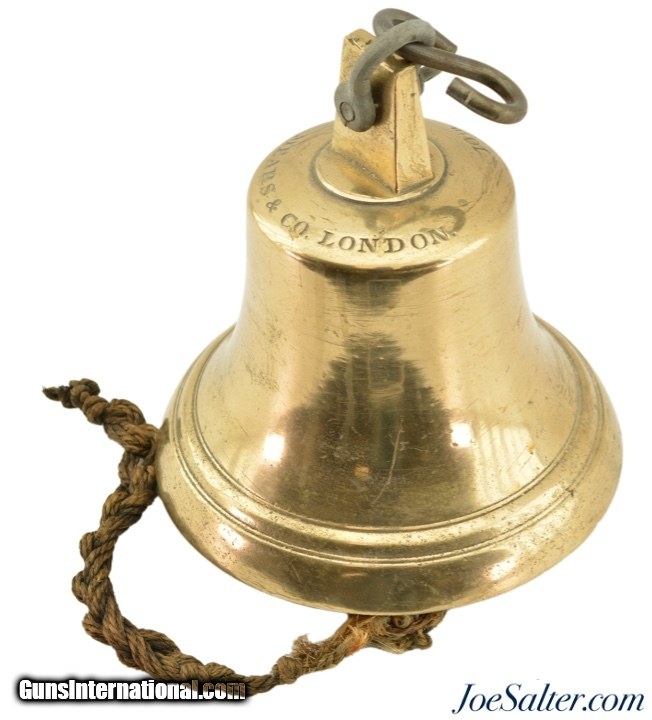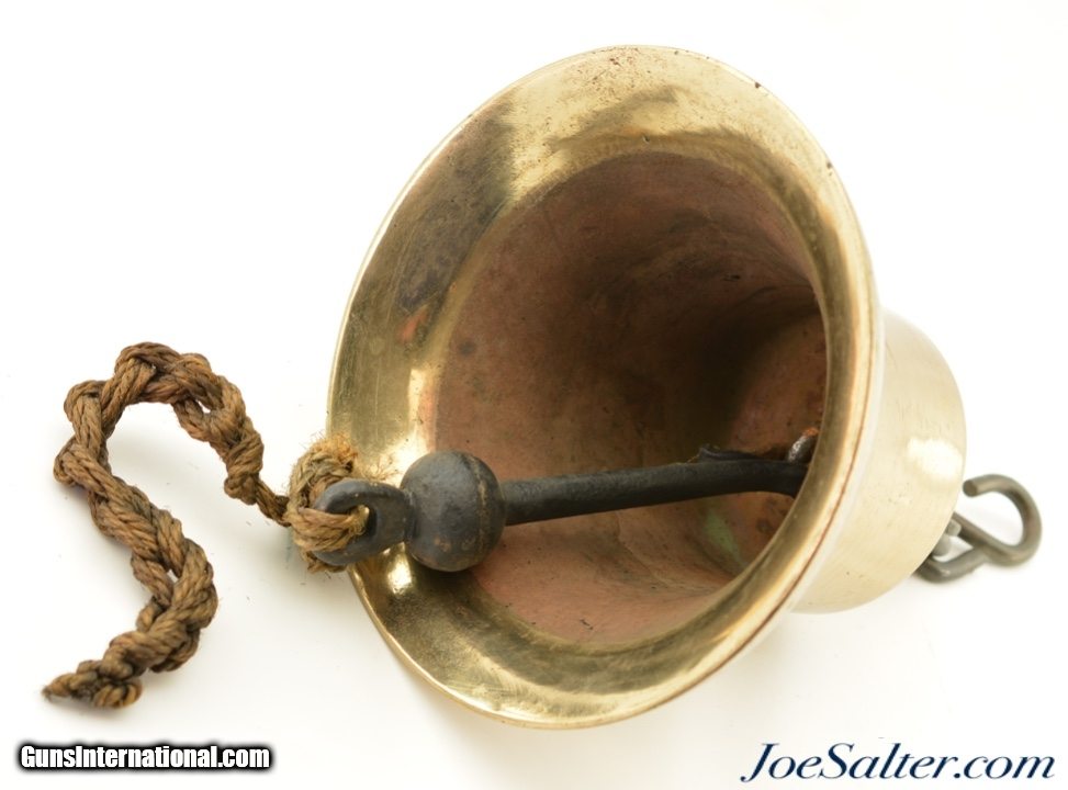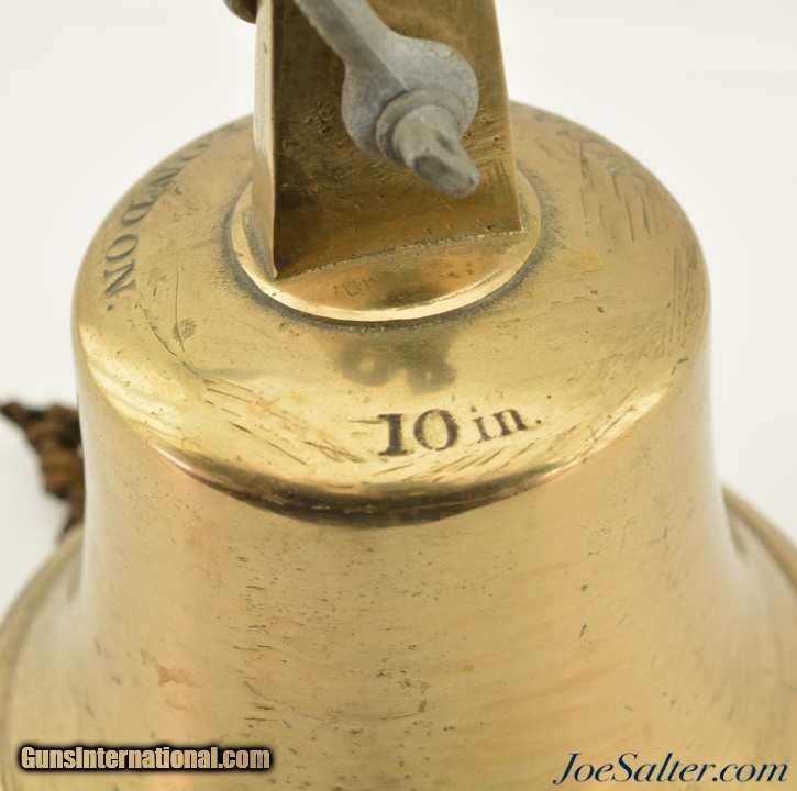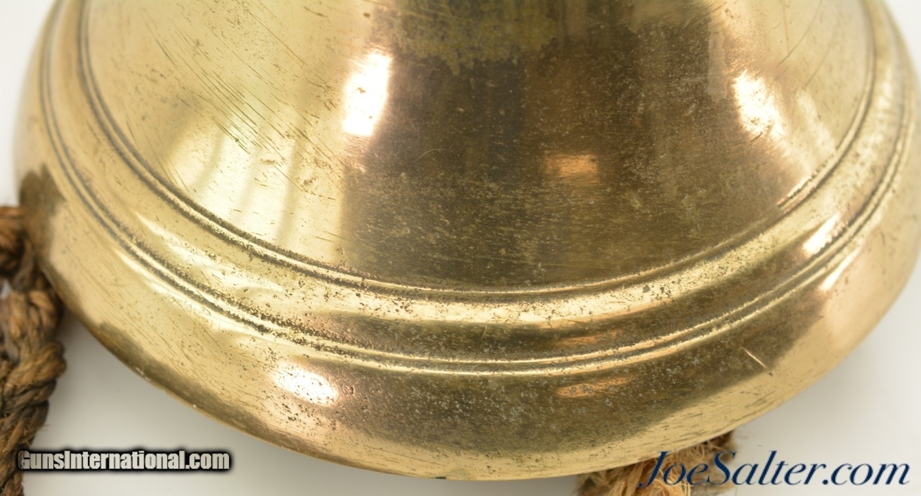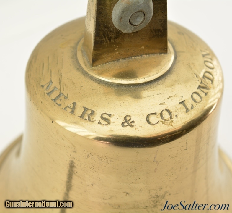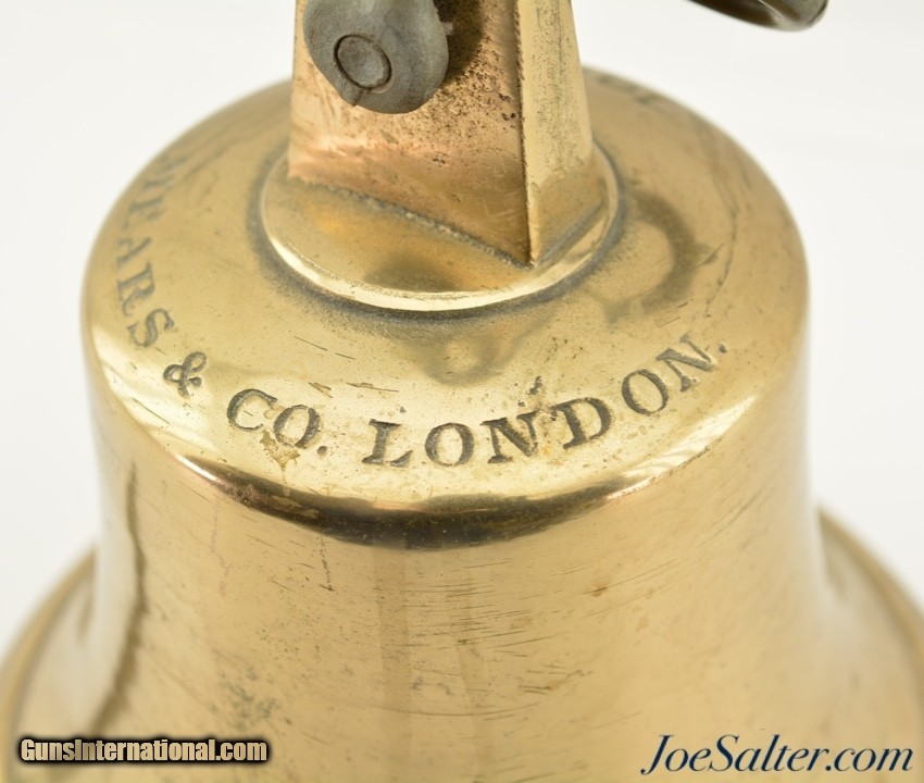 Description: This is a Victorian 10" Mears & Co. Whitechapel Bronze Bell made in the most celebrated of bell foundry at Whitechapel which was also the birthplace of the American Liberty Bell and Big Ben in London. This bell is marked "MEARS & CO. LONDON" and 10" for the opening and is about 10 inches tall. In my research the 10" bell was used in many roles from ships to school and many others. The bell has a high luster shine on the brass with lots of patina. George Mears received control of the foundry in 1844 from his father, this bell will date before the 1860's and is in excellent condition with the original hand forged clapper which rings the bell clear and true. I would believe that this bell has centuries of service ahead of it. SOLD |