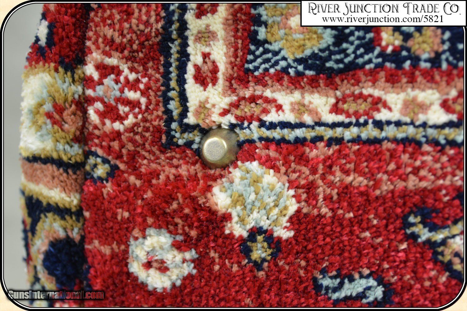 Description: Yes, it is made of real carpet. and measures 16 in. by 22 in. by 8.5 in. with one inside pockets. Impressive, isn't it? Unlike today's wasteful culture, the resourcefulness of people in the old days continues to teach us lessons. When a carpet needed replacing after high traffic areas became too damaged to repair, the parts of the carpet that were still in good shape were cut up to make the bags. Attached to a sturdy frame, carpet bags could last a lifetime. You can only imagine how difficult sewing these must have been. This one is constructed just like those of old, only of new carpet never walked on. It is not to be confused with the tapestry bags. The Carpet bag was a personal baggage light enough for a passenger to carry, as opposed to a large wooden or metal trunk. Described in 1886 as old-fashioned and reliable, "still unsurpassed by any, where rough wear is the principal thing. This bag, is constructed of good Materials and unquestionable workmanship, will last decades. Harken back to the time when Carpet-Baggers roamed freely, carrying their belongings in such bags, and Ladies traveled the rail lines and Stage coaches carrying their items in similar luggage. Five brass feet allow you to set this bag down and not worry about it tipping. The outer shell is made of a Cotton and Jute blend. Bag is fully lined. Display items not included. Payment: Item, can be ordered on line with a credit card or paypal on our sight. Just Google (riverjunction) and type in the River Junction Trade Co. item number (5821) in the search box. Before you checkout you will see shipping cost and total. OR If you prefer: Pay by cash, postal money order, cashiers check, personal & business checks. We wait for checks to clear. We always answer questions and entertain offers. Have questions? Call me 563-880-4588. Jim SOLD |