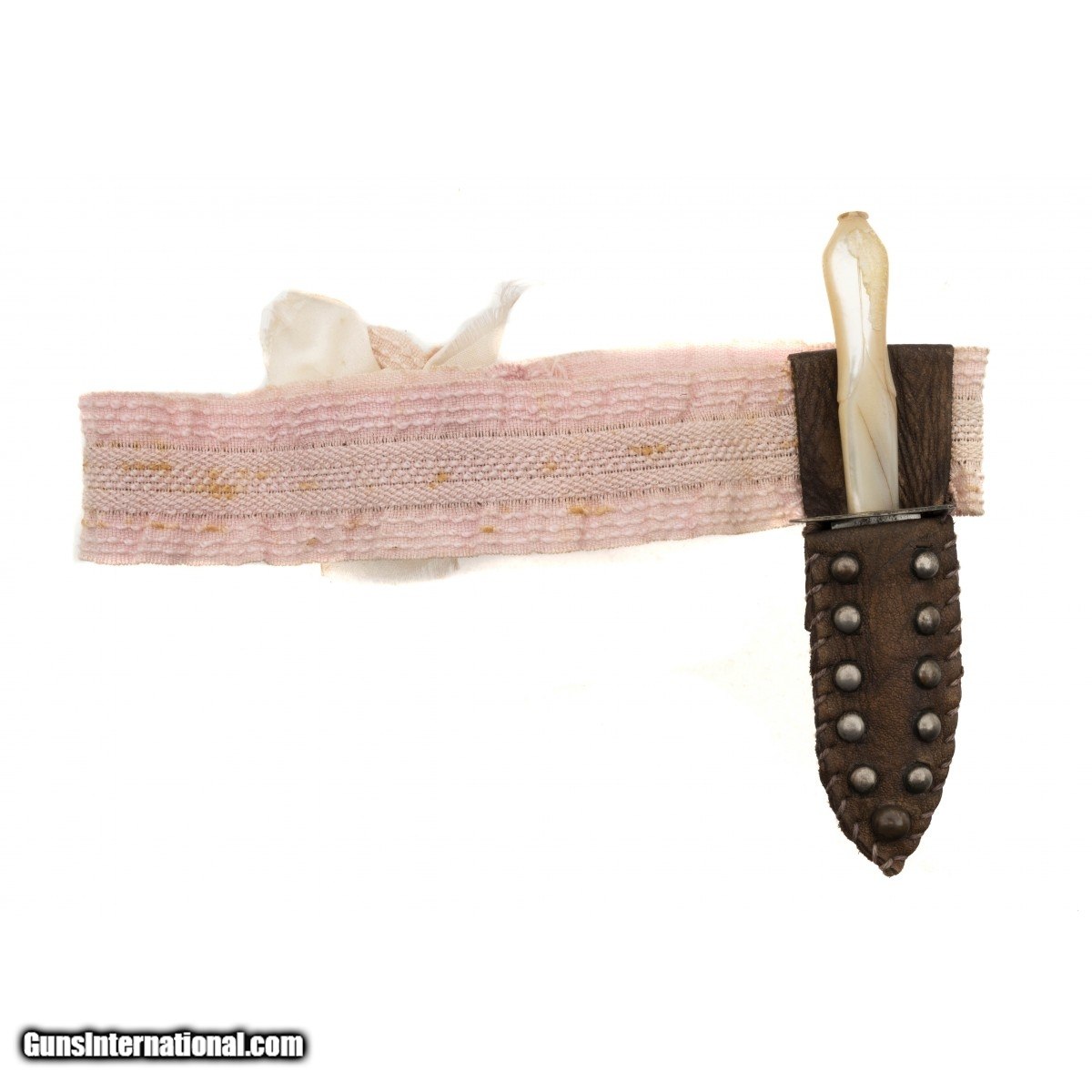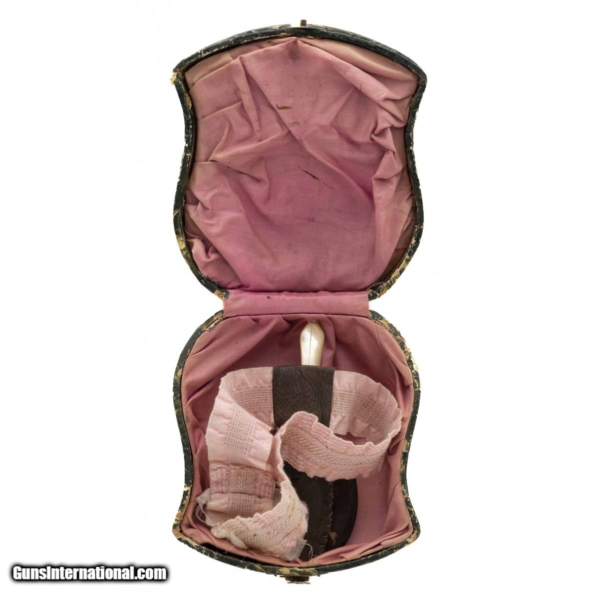 Description: " Wyatt Earp’s “whore box" in very good condition, comes with a garter belt attached with a tiny mother of pearl handle knife. Also included in the box is a mirror and with a lady of the night pictured on the front and a tiny pick. These items came from John Flood who was Wyatt and Sadie Earp’s personal Secretary and closest confidant. Mr. Flood even wrote a biography on Wyatt Earp that was never published. He was given and inherited numerous items from the Earp’s. Mr. Flood in turn passed the Earp collection on to John Gilchriese. Mr. Gilchriese owned and operated The Wyatt Earp Museum in Tombstone, AZ, where all of these items were displayed. These items were sold directly by Mr. Gilchriese to David Roberts along with Mr. Gilchriese’s notes on each item. Each item comes with a certificate of authenticity from Collectors Firearms. SOLD |