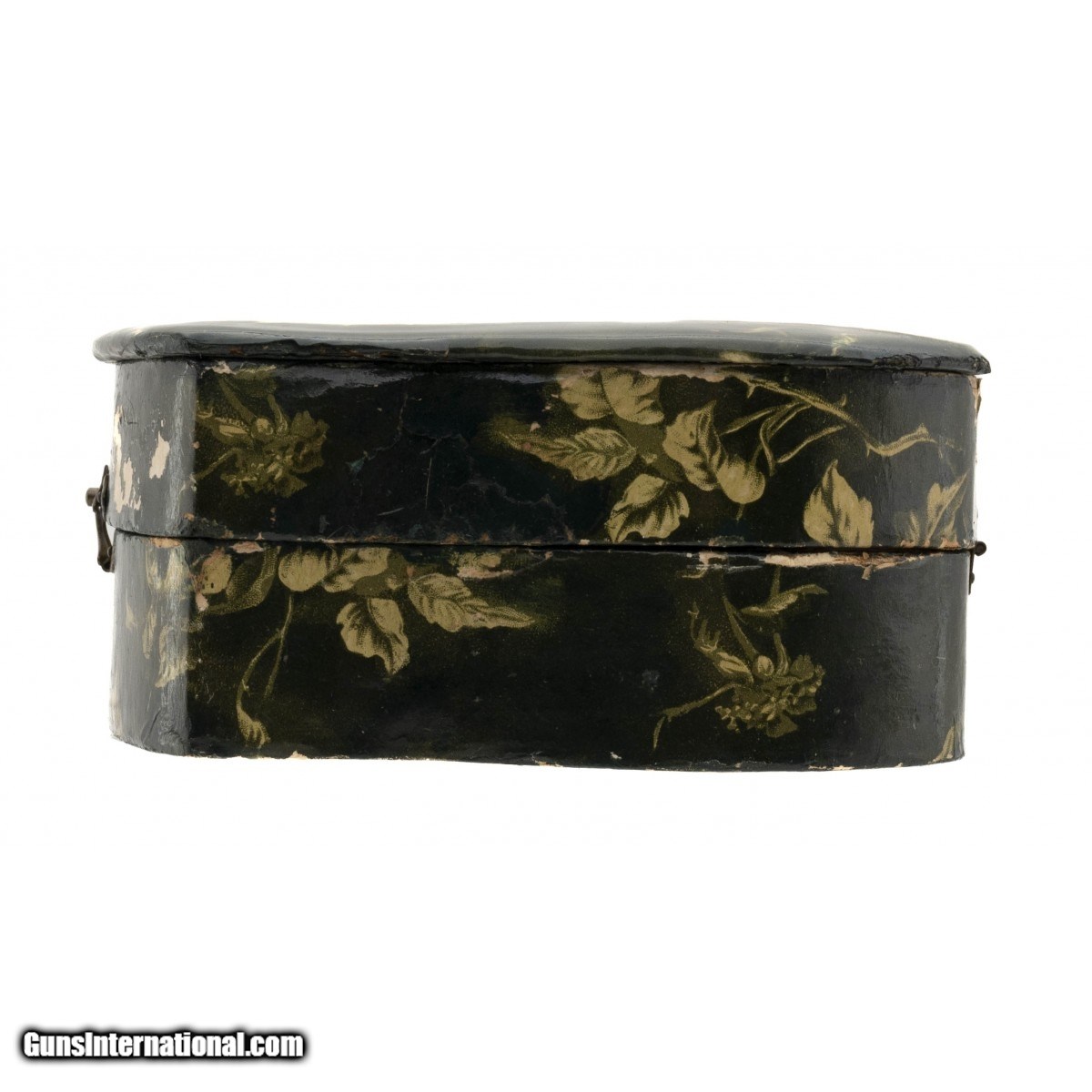 Wyatt Earp’s “whore box" in very good condition, comes with a garter belt attached with a tiny mother of pearl handle knife. Also included in the box is a mirror and with a lady of the night pictured on the front and a tiny pick. These items came from John Flood who was Wyatt and Sadie Earp’s personal Secretary and closest confidant. Mr. Flood even wrote a biography on Wyatt Earp that was never published. He was given and inherited numerous items from the Earp’s. Mr. Flood in turn passed the Earp collection on to John Gilchriese. Mr. Gilchriese owned and operated The Wyatt Earp Museum in Tombstone, AZ, where all of these items were displayed. These items were sold directly by Mr. Gilchriese to David Roberts along with Mr. Gilchriese’s notes on each item. Each item comes with a certificate of authenticity from Collectors Firearms.
