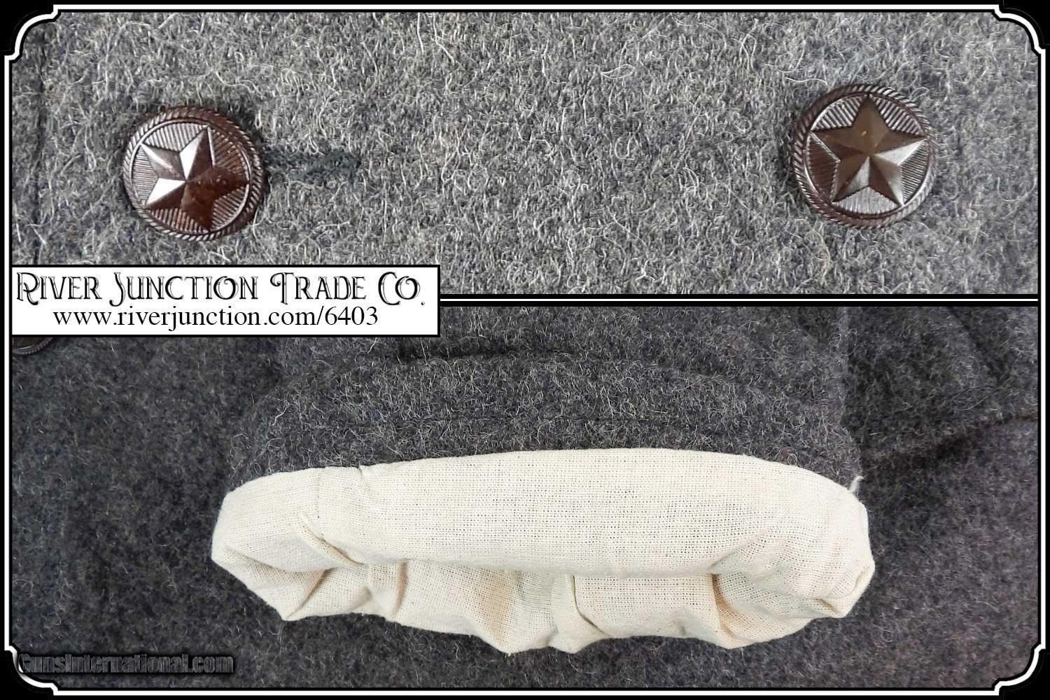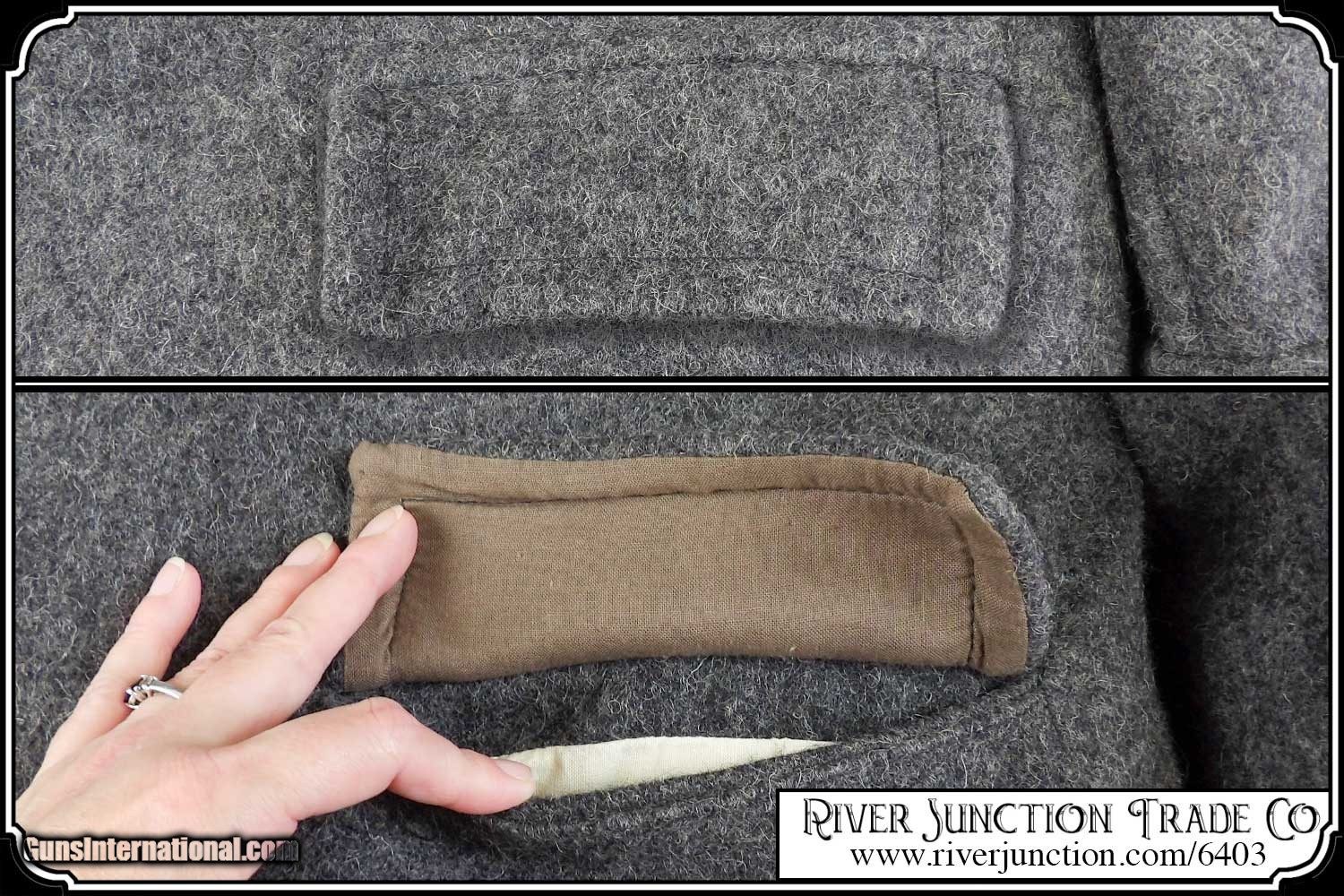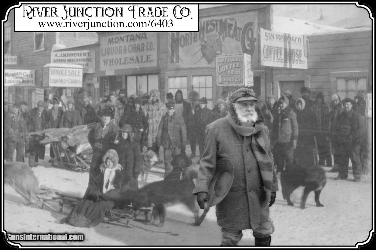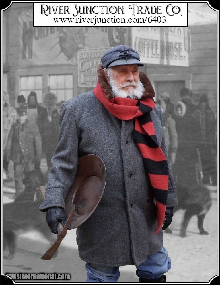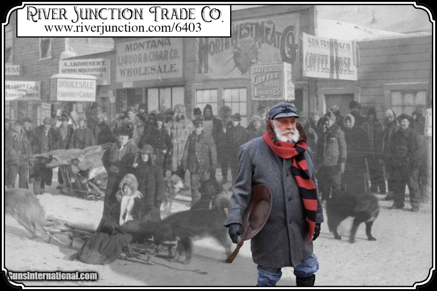 Description: The toughest "NORTH TO ALASKA" coat on earth, designed for hard use with comfort in winter and in the far north. This coat pattern is an authentic cut as seen in the Klondike gold rush and worn by the line rider of northern Montana. Similar in design to our wool Mackinaw but with sheep lining. The outer shell is made of 100 % wool, finished off with a dark brown mouton collar. This is a very warm, ruff n' tuff coat for hard-use. Just the thing for the well supplied gold rush adventurer. A true heirloom product that will be admired by all. Outer wool colors deep grey. Fits USA Sizes 48, 50 and 52 Payment: Item, can be ordered on line with a credit card or paypal on our sight. Just Google (riverjunction) and type in the River Junction Trade Co. item number (6403) in the search box. Before you checkout you will see shipping cost and total. OR If you prefer: Pay by cash, postal money order, cashiers check, personal & business checks. We wait for checks to clear. We always answer questions and entertain offers. Have questions? Call me 563-880-4588. Jim SOLD |