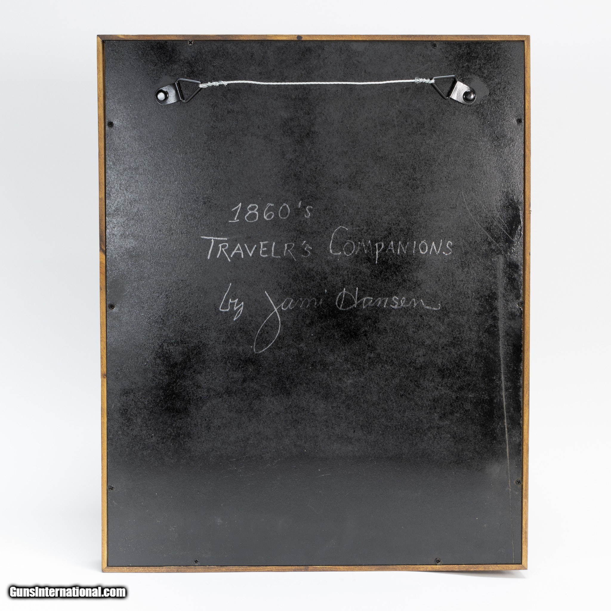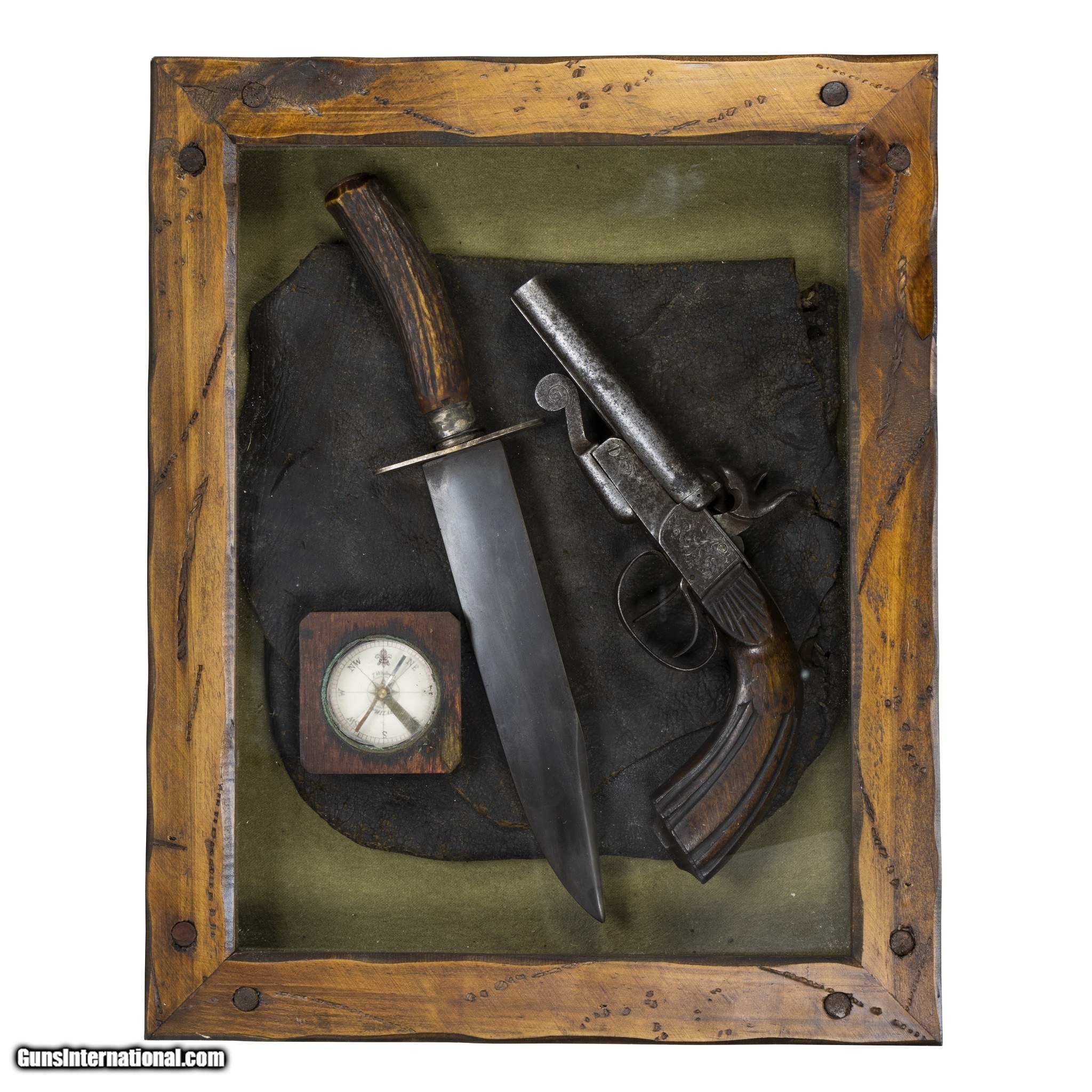 Description: Framed 1860 traveler's companions set with .44 cal Belgian pinfire, bowie knife and Lews & Clark style compass. A well displayed shadowbox with dark and rustic coloring that is perfect for a cabin home or lodge. Gun is non-functioning. Size: 12" x 16" x 2" Family Owned & Operated Cisco’s Gallery deals in the rare, exceptional, and one-of-a-kind pieces that define the history of America and the Old West. Our pieces range from American Indian to Cowboy Western and include original items of everyday life, commerce, art, and warfare that tamed America’s frontier. Our 14,000 square foot gallery opened in 1996 in beautiful Coeur d’Alene, Idaho. Personal Service Cisco’s operates on old fashioned values – honesty and integrity, and all of our items are backed by our money back guarantee. We appreciate the opportunity to earn your business. Whether you desire assistance with a jewelry purchase, choosing a gift, identification, or even selling – we hope to be your trusted source. SOLD |