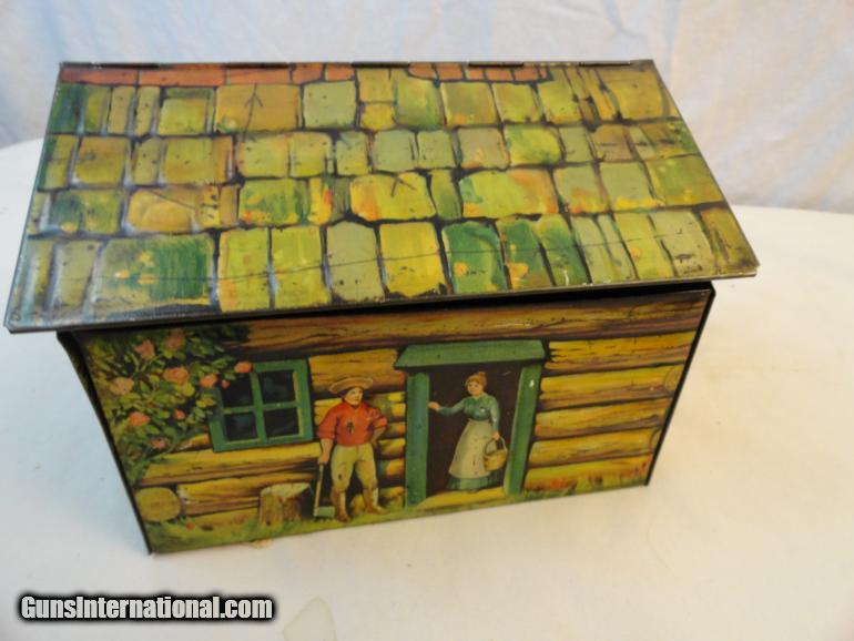 1880's Embossed Cowboy Ranch House Biscuit Tin - England