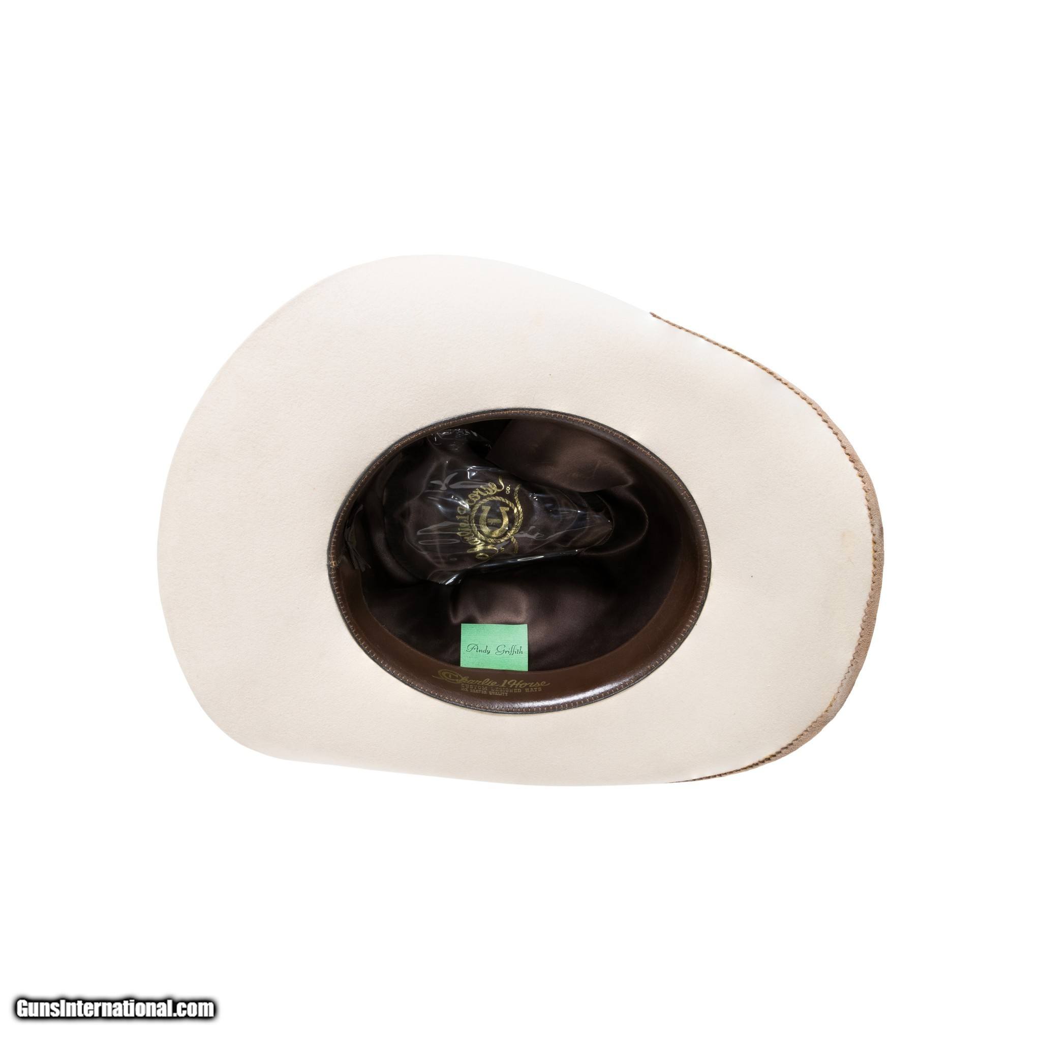 Description: 10x Beaver Charlie One Horse cowboy hat, personalized inside to Andy Griffith. The company started in 1890 and is still in business today. Purchased from his Hollywood home in 1992, with COA signed by Andy Griffith and letters attesting to estate. Includes "Benjamin Matlock, Attorney At Law" busines card. Family Owned & Operated Cisco’s Gallery deals in the rare, exceptional, and one-of-a-kind pieces that define the history of America and the Old West. Our pieces range from American Indian to Cowboy Western and include original items of everyday life, commerce, art, and warfare that tamed America’s frontier. Our 14,000 square foot gallery opened in 1996 in beautiful Coeur d’Alene, Idaho. Personal Service Cisco’s operates on old fashioned values – honesty and integrity, and all of our items are backed by our money back guarantee. We appreciate the opportunity to earn your business. Whether you desire assistance with a jewelry purchase, choosing a gift, identification, or even selling – we hope to be your trusted source. SOLD |