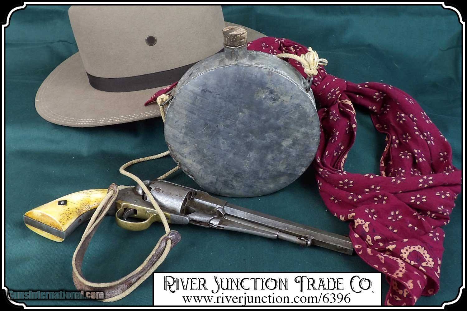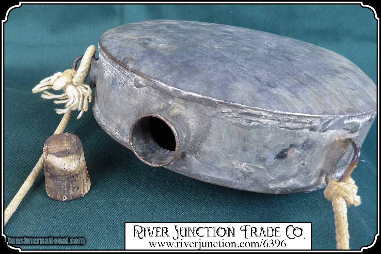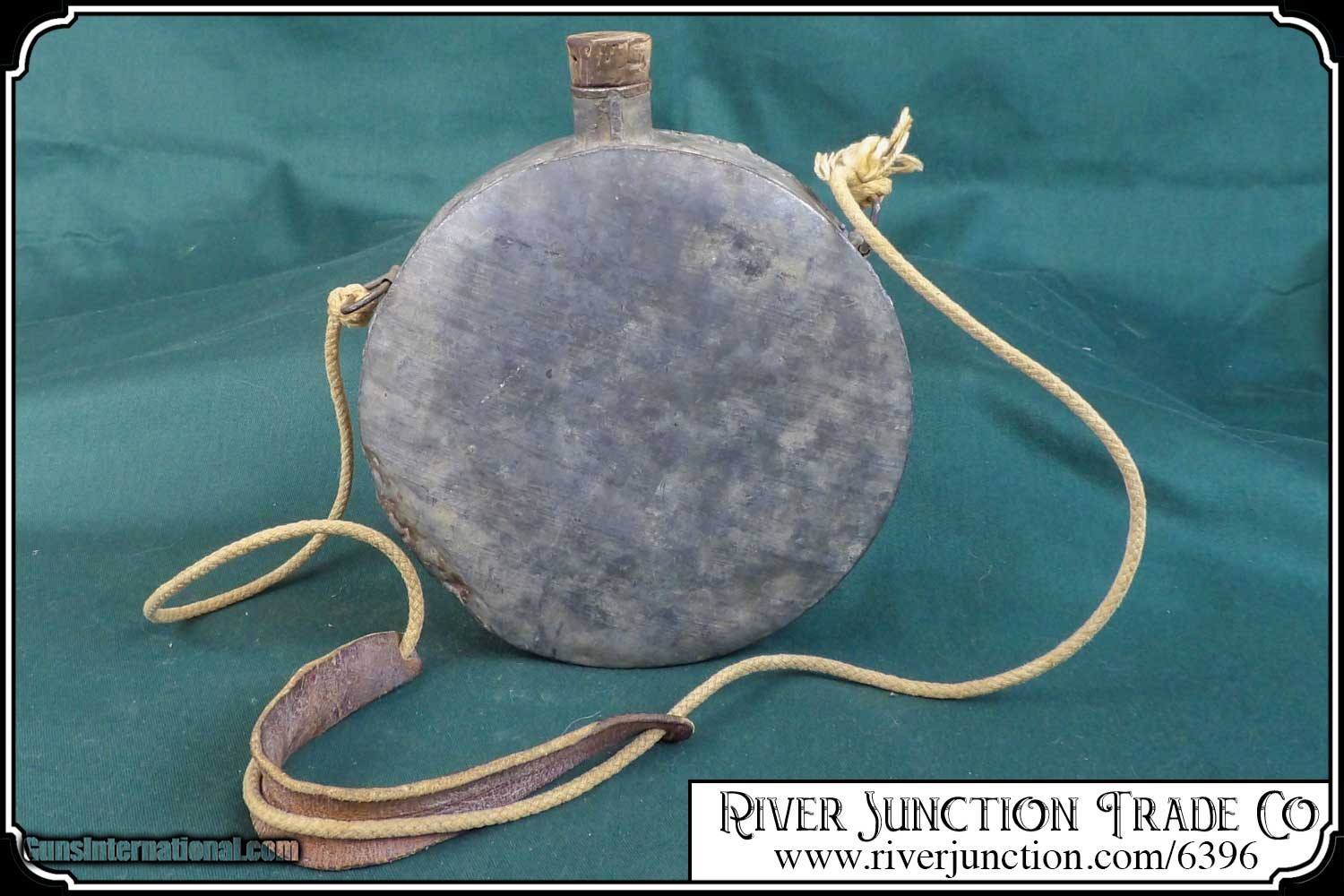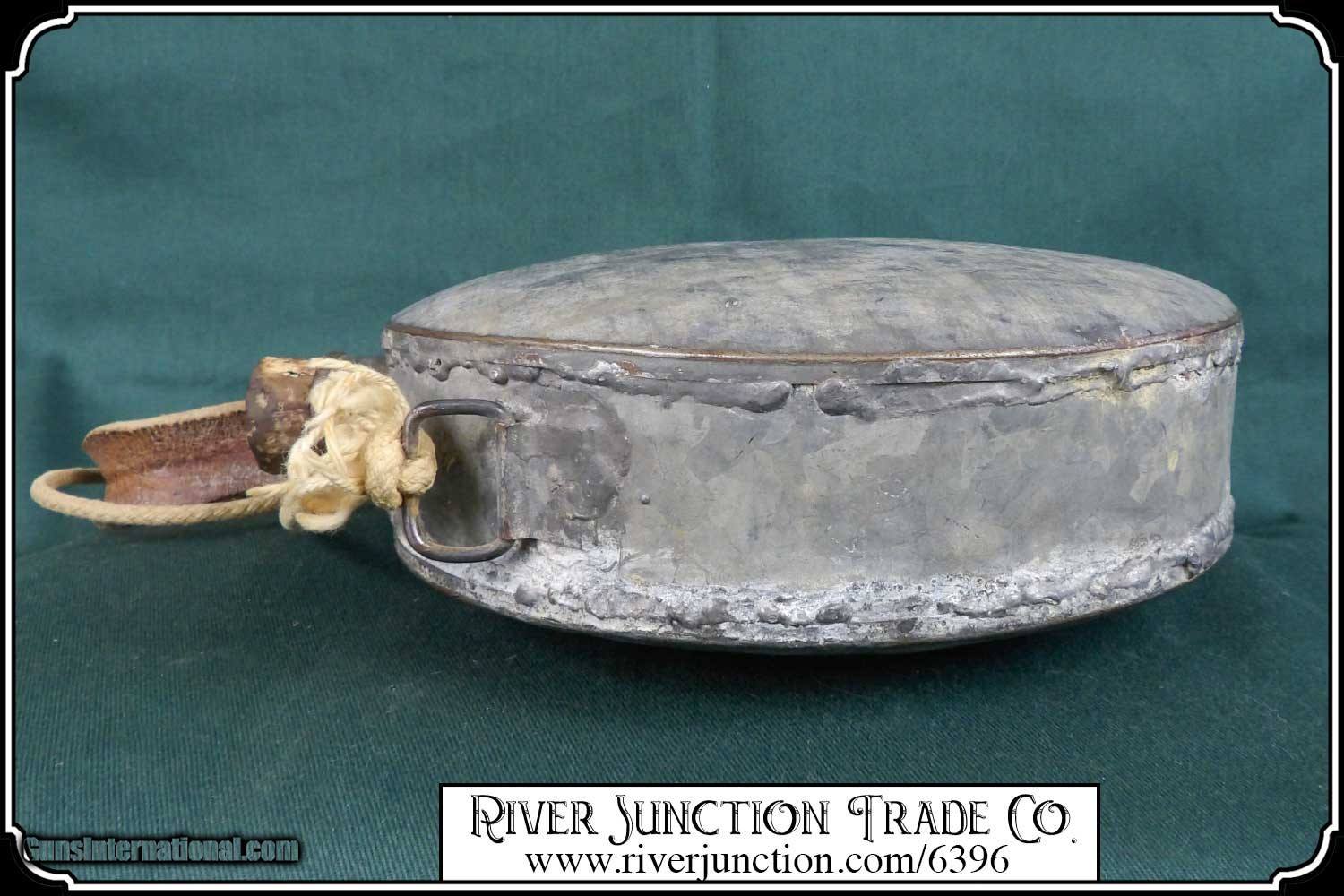 Description: Confederate canteen1840s to 1870s era tin drum canteen as carried by most gold prospectors, cowboys, and Confederate soldiers and some Northern militia men as well. All tin construction... two strap brackets intact... tin spout. Nice early piece appropriate to display with early war effects from north or south or mining collectibles and cowboy gear. Measurements are 7 3/4 across by 8 1/4 top to bottom depth around 2 1/4. I think it has a very slow leak. Price: $295.00 Buy Now Contact Seller |