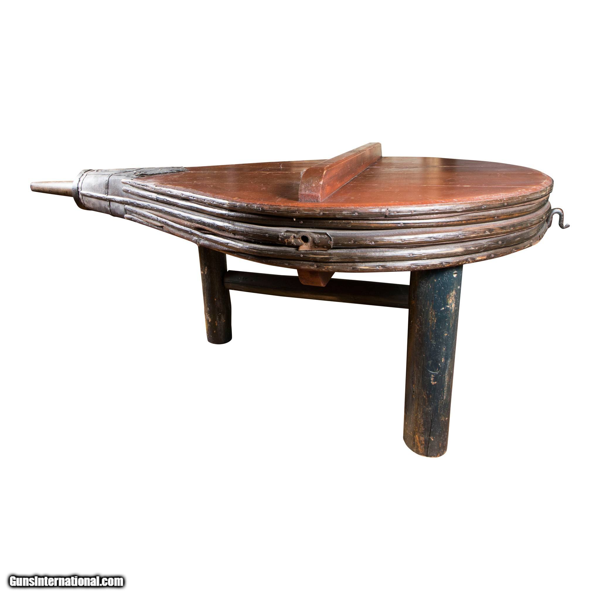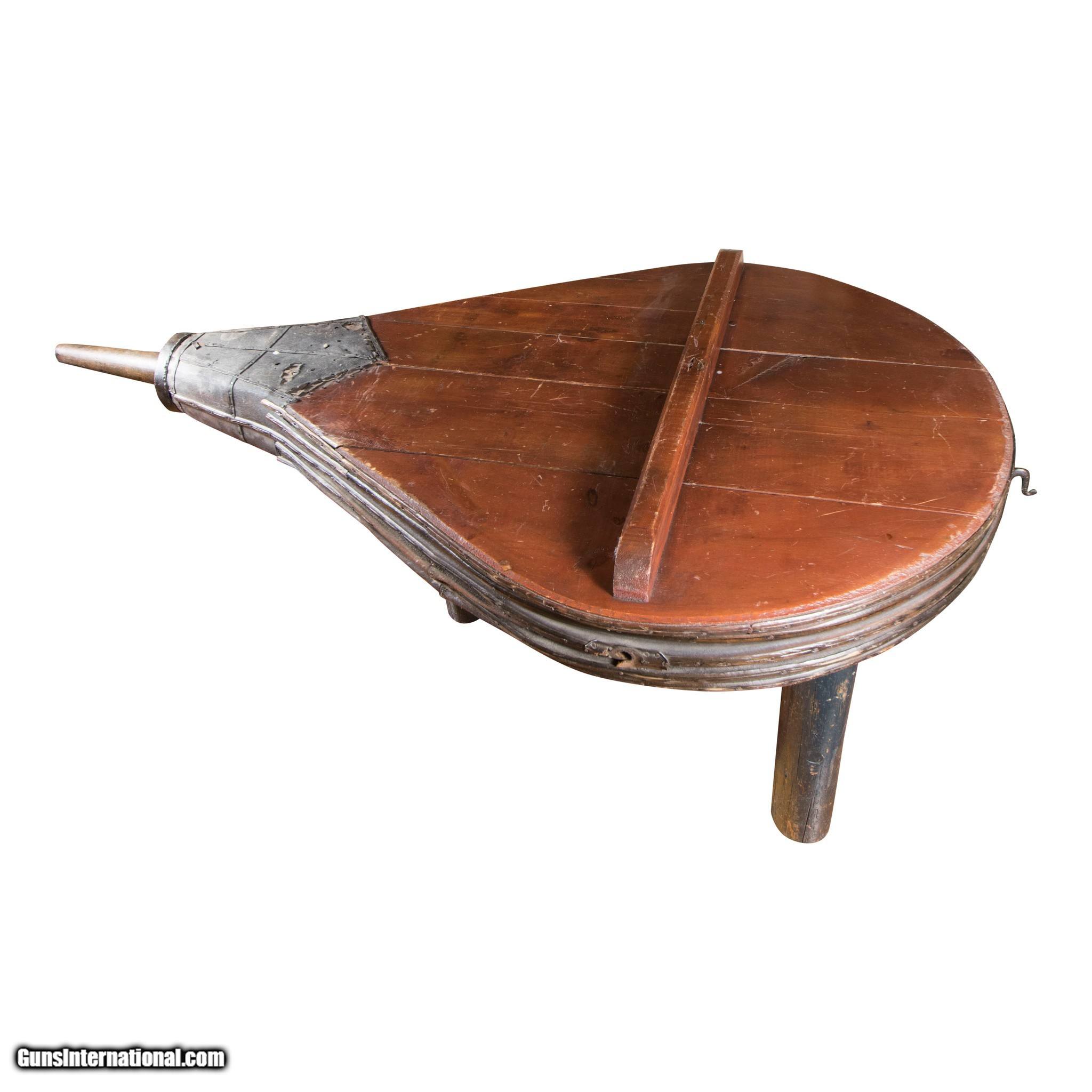 Description: Very unusual and interesting piece. A Montana blacksmith bellows that has been made into a coffee table. A great piece of 19th century Western historical furnitue that is sure to spark many a conversation. Size: 56" x 36" x 22"h SOLD |