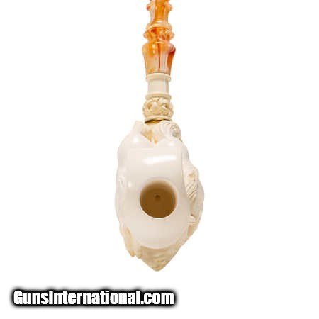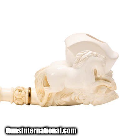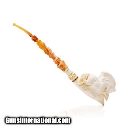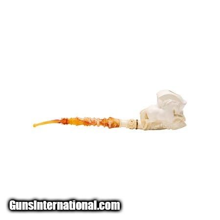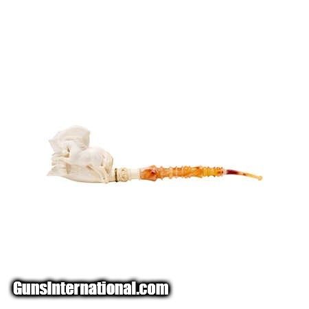 Description: Jumbo size carved Turkish block meerschaum pipe. Featuring a carving of a jumping horse over bowl with elaborate turned style carvings up colored stem. With a custom made leather case. Would look great in a tobbacciana collection or on display in a Southwestern style home. Size: 12"L Family Owned & Operated Cisco’s Gallery deals in the rare, exceptional, and one-of-a-kind pieces that define the history of America and the Old West. Our pieces range from American Indian to Cowboy Western and include original items of everyday life, commerce, art, and warfare that tamed America’s frontier. Our 14,000 square foot gallery opened in 1996 in beautiful Coeur d’Alene, Idaho. Personal Service Cisco’s operates on old fashioned values – honesty and integrity, and all of our items are backed by our money back guarantee. We appreciate the opportunity to earn your business. Whether you desire assistance with a jewelry purchase, choosing a gift, identification, or even selling – we hope to be your trusted source. SOLD |