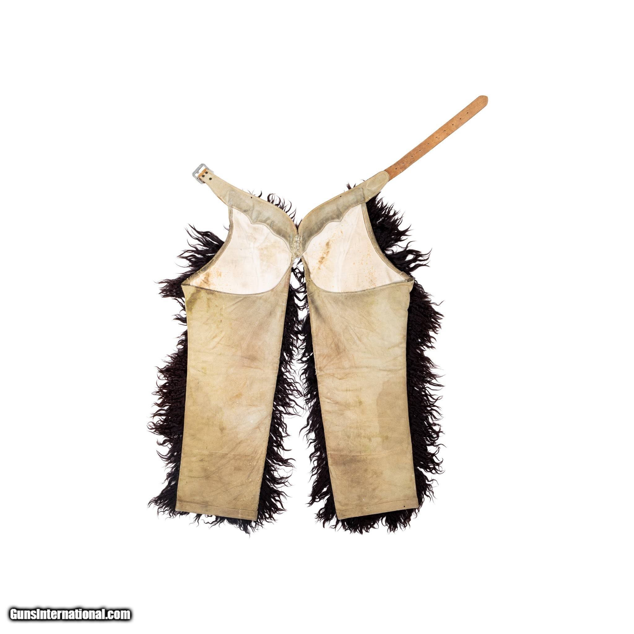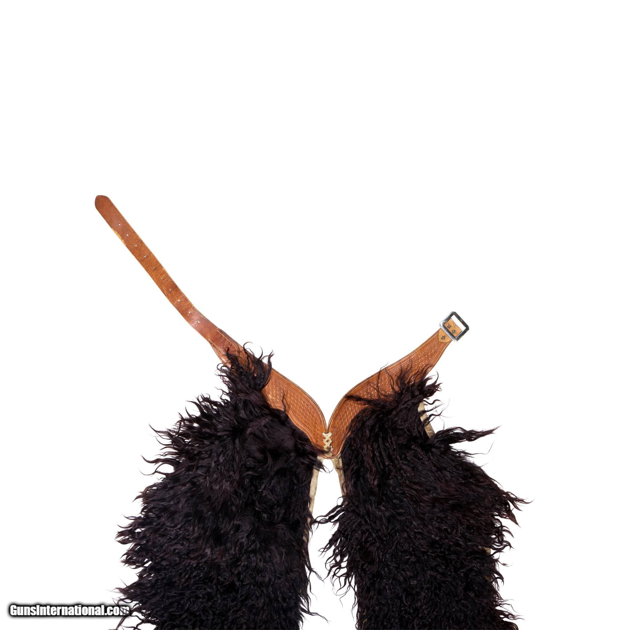 Description: Brown angora chaps with basketweave belt. Exceptional condition. No maker's mark. Catalog No. 3591. Great piece for continued use or would display nicely in a Western, cowboy, or frontier collection. Would also make for a nice piece of decor in a Southwestern style farm or ranch house, or a rustic cabin. Size: 30" waist, 40"L Family Owned & Operated Cisco’s Gallery deals in the rare, exceptional, and one-of-a-kind pieces that define the history of America and the Old West. Our pieces range from American Indian to Cowboy Western and include original items of everyday life, commerce, art, and warfare that tamed America’s frontier. Our 14,000 square foot gallery opened in 1996 in beautiful Coeur d’Alene, Idaho. Personal Service Cisco’s operates on old fashioned values – honesty and integrity, and all of our items are backed by our money back guarantee. We appreciate the opportunity to earn your business. Whether you desire assistance with a jewelry purchase, choosing a gift, identification, or even selling – we hope to be your trusted source. SOLD |