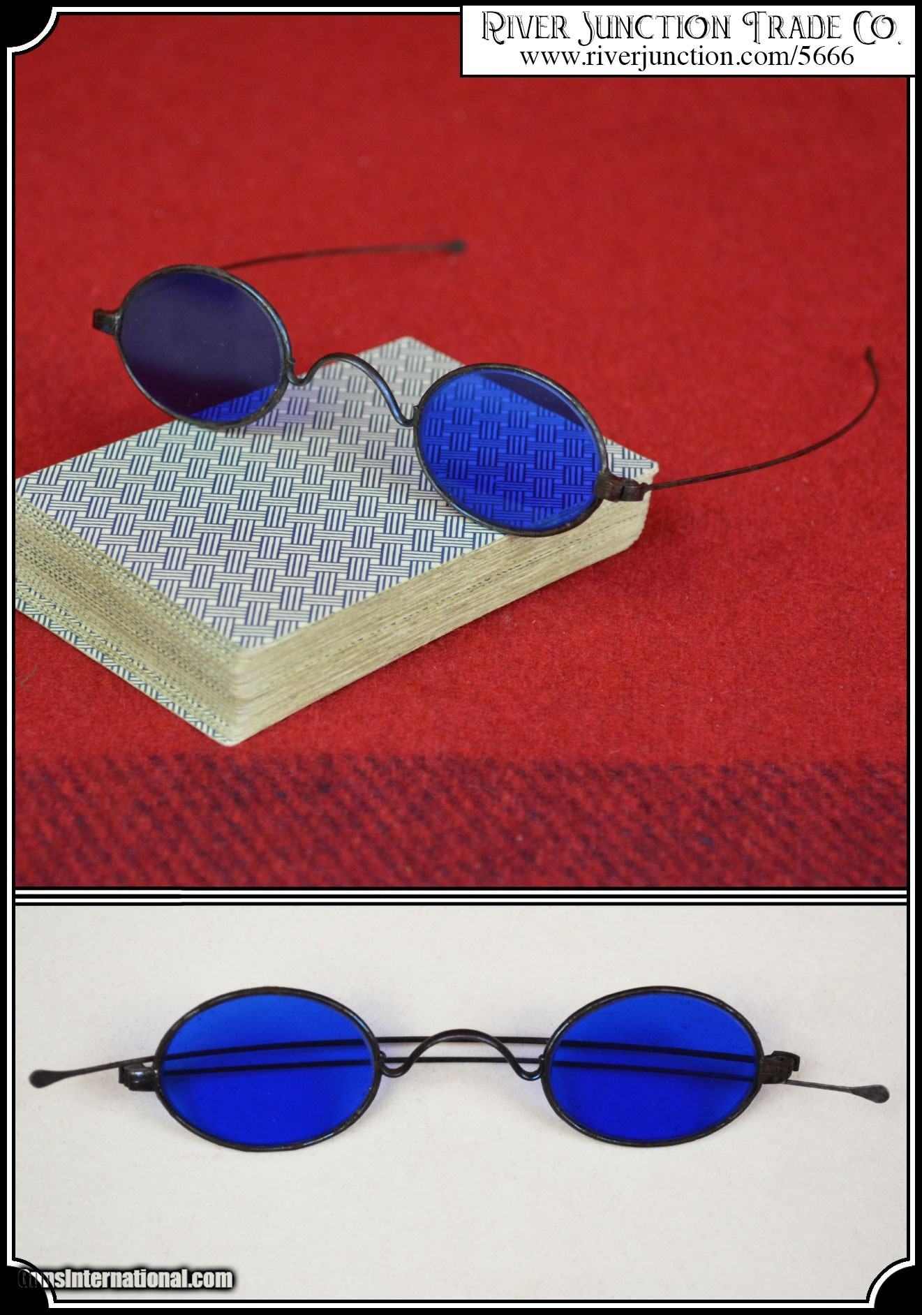 Description: Gambler's Cheater Glasses. These glasses are cheating spectacles. Blue-tinted spectacles (as they were called back in the day) afforded the wearer a huge advantage over all other card players at the table because with the use of phosphorescent ink he could mark a deck of cards and with the use of these special glasses he could view the markings while his opponents could not. In K. C. Card Co. Blue Book , page 34 there is a listing for Luminous Readers. The book states "Luminous Readers originated and introduced by us have been successfully used in all parts of the country. These cards do not bear any visible mark, but when viewed with our Luminous Visor or our Luminous Glasses the work appears as plain as the figure 8 on the back of the card pictured". Also listed on that page are; Luminous Glasses or Visor, Luminous Material, Luminous Ink and Luminous Daub. We are including a copy of the K. C. CARD CO. 40th Anniversary catalog, which shows the "Readers" on page 34 along with other related cheating paraphernalia. Payment: Item, can be ordered on line with a credit card or paypal on our sight. Just Google (riverjunction) and type in the River Junction Trade Co. item number (5666) in the search box. Before you checkout you will see shipping cost and total. OR If you prefer: Pay by cash, postal money order, cashiers check, personal & business checks. We wait for checks to clear. We always answer questions and entertain offers. Have questions? Call me 563-880-4588. Jim SOLD |