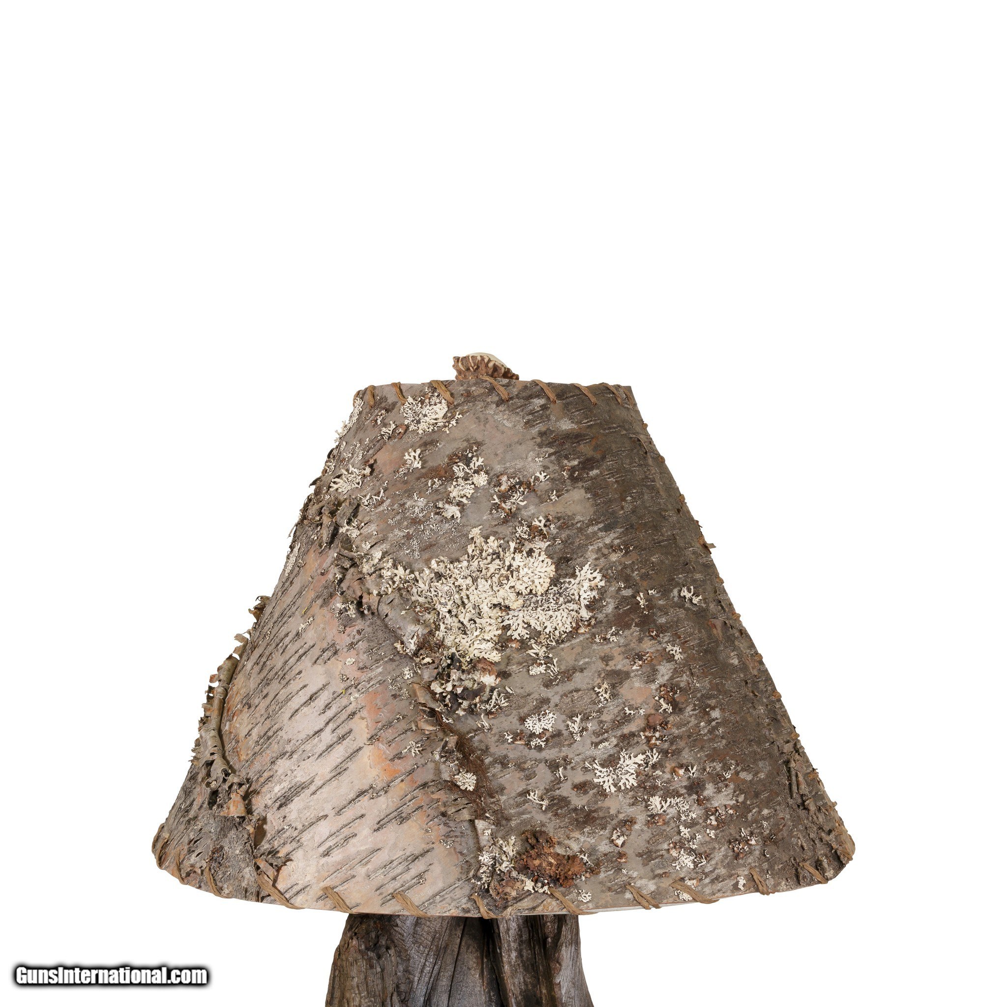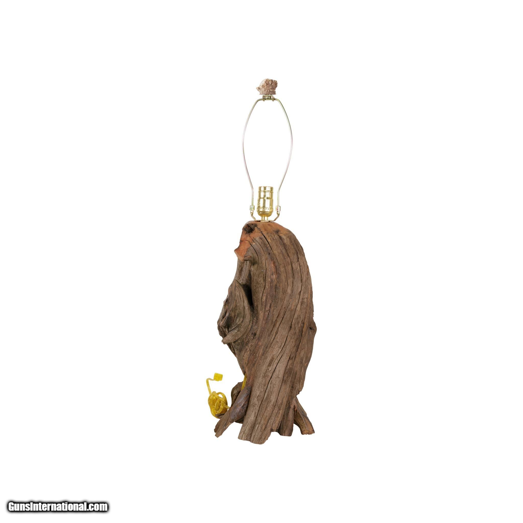 Description: Hand carved raccoon table lamp with mother and two babies. This lamp features realistic carvings on natural driftwood base with rustic birchbark shade and antler finial. This is an original piece signed and dated by North Idaho artist Paul Carrico. Perfect for rustic home, hunting lodge, or cabin. Size: base 10" x 10", shade diameter 18", overall 30"H SOLD |