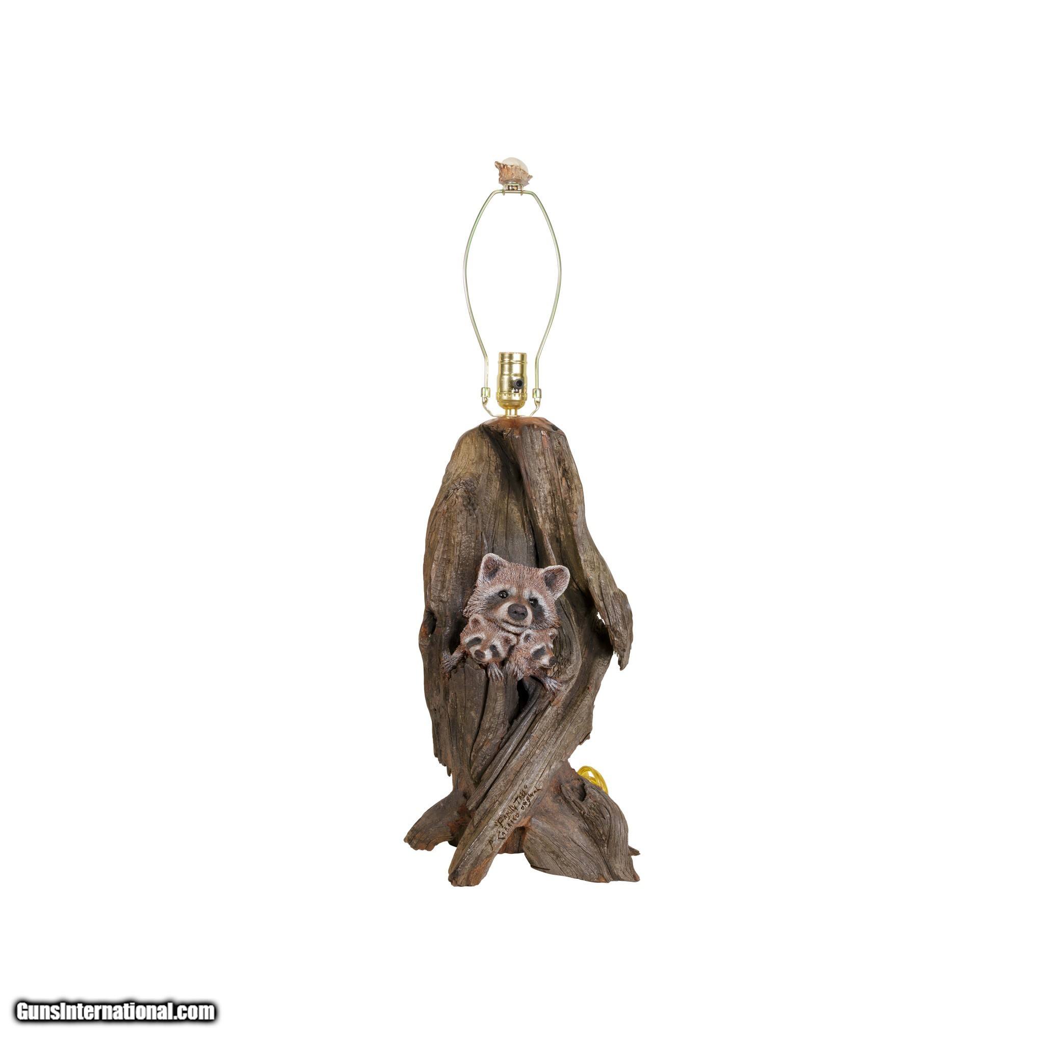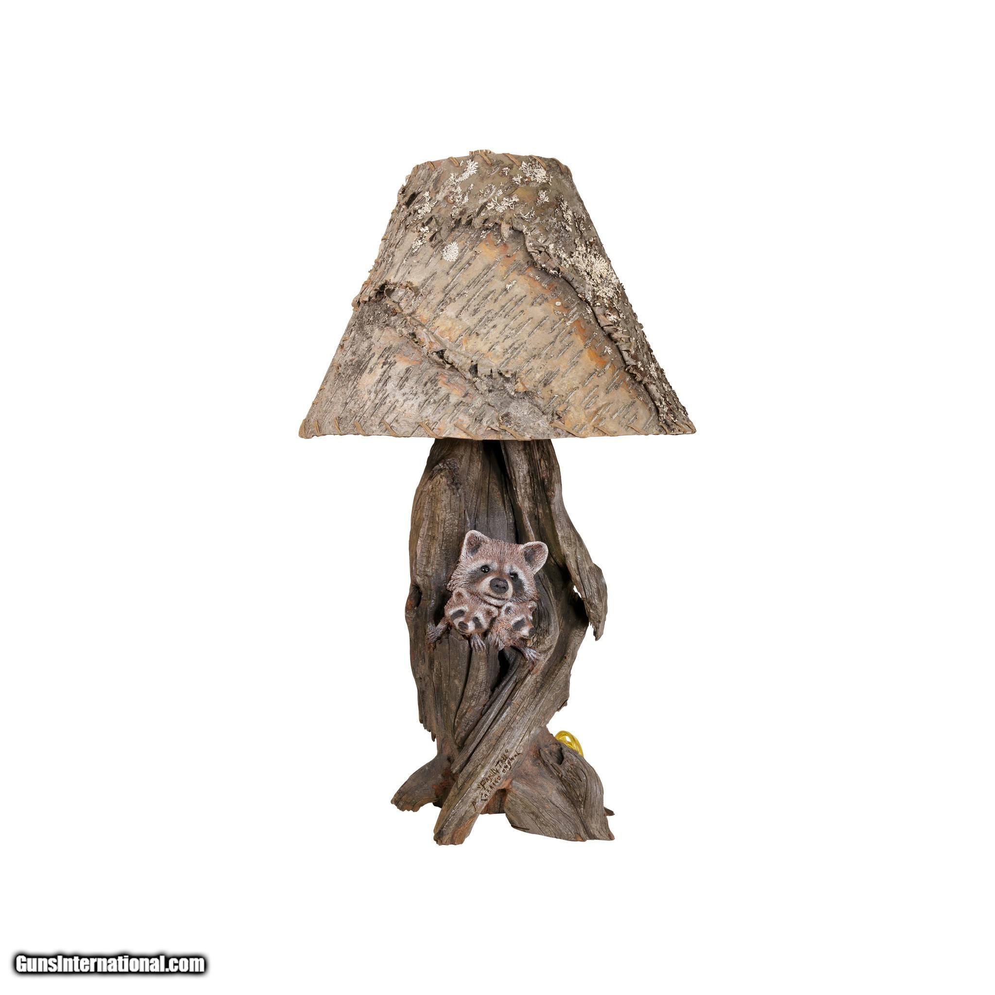 Carved Raccoon Table Lamp