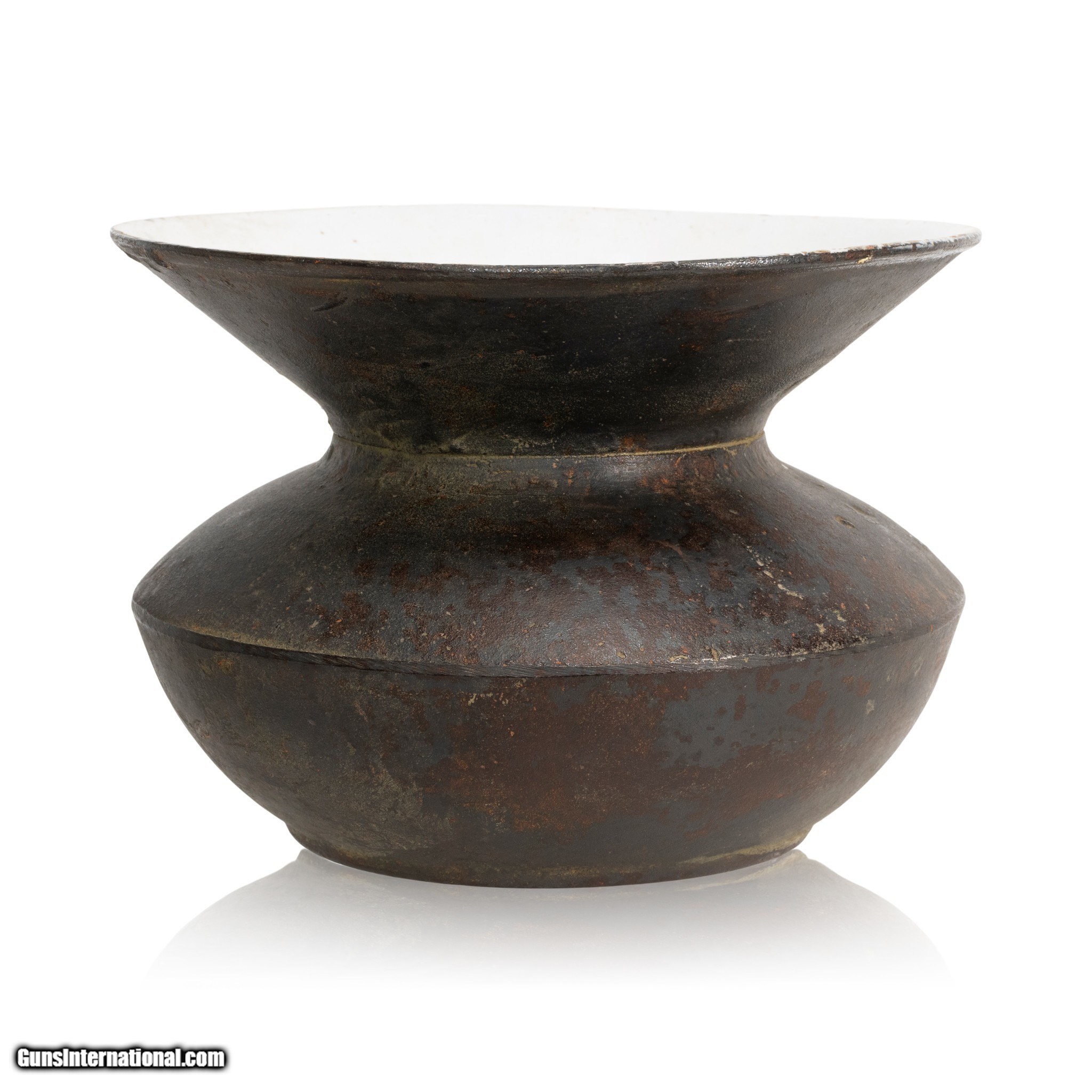 Description: Cast iron spittoon with enamel interior. Great historical piece for your tobacciana or cowboy western frontier collection. Would also make for great decor in a Southwestern style farm or ranch house. Size: 8"D x 6"H Family Owned & Operated Cisco’s Gallery deals in the rare, exceptional, and one-of-a-kind pieces that define the history of America and the Old West. Our pieces range from American Indian to Cowboy Western and include original items of everyday life, commerce, art, and warfare that tamed America’s frontier. Our 14,000 square foot gallery opened in 1996 in beautiful Coeur d’Alene, Idaho. Personal Service Cisco’s operates on old fashioned values – honesty and integrity, and all of our items are backed by our money back guarantee. We appreciate the opportunity to earn your business. Whether you desire assistance with a jewelry purchase, choosing a gift, identification, or even selling – we hope to be your trusted source. SOLD |