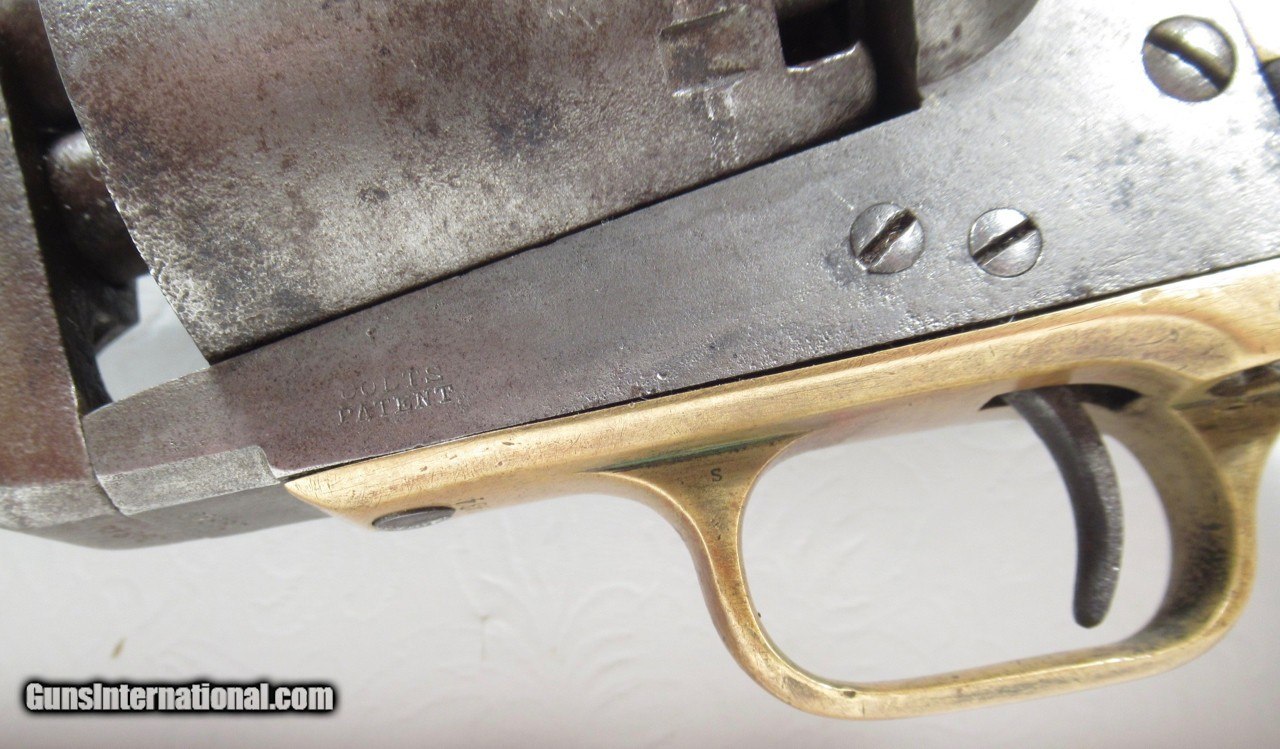 Description: Colt 3rd Model Dragoon; Serial No. 19342; Made 1860; Identified to David Crockett Riley of Crabapple, Gillespie Co., Texas; He was Enlisted in Capt. Henry T. Davis’s Company Mounted Texas Frontier Regiment, Texas State Troops on March 4, 1862 at Gillespie Co., Texas These Men were Considered Texas Rangers; Much Info on this Revolver is Found in the Spring 2020 Edition of “The Texas Gun Collector”; Revolver is 100% Original, Correct, and Matching; Has that Rode Hard and Put Up Wet Look; Good Action and fairly Strong Bore; A Real Piece of Texas Frontier and Ranger History; See All Photos for Condition; No Texts; Call (254)541-5765 or Email Only; PERSONAL PROPERTY of Harold Wieser; Price: $15,975 + $45 S&H Via USPS PRIORITY MAIL; Payment Address: Harold Wieser - 1466 U.S. Hwy 77 - Rosebud, TX 76570; SEND PAYMENTS VIA USPS PRIORITY MAIL; BEWARE of SCAMS!!! – DO NOT SEND MONEY or CORRESPONDENTS ELECTRONICALLY UNLESS YOU HAVE SPOKEN to HAROLD WIESER FIRST! 254-541-5765 SOLD |