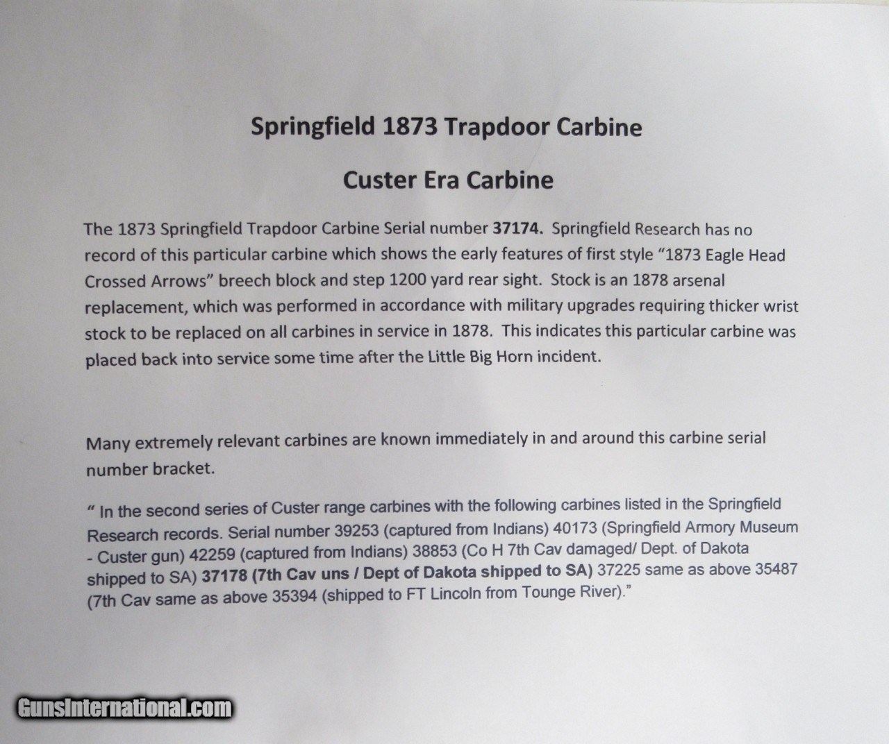 CUSTER ERA SPRINGFIELD TRAPDOOR CARBINE from COLLECTING TEXAS – SERIAL NUMBER 4 DIGITS OFF of 7TH CAVALRY CARBINES