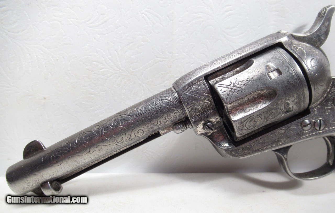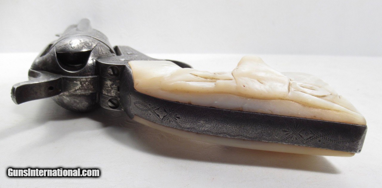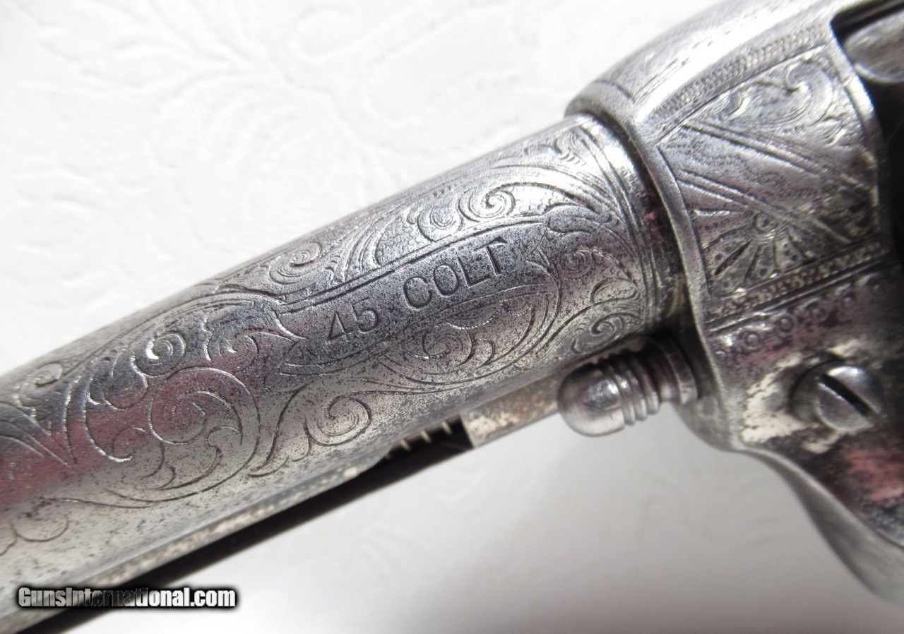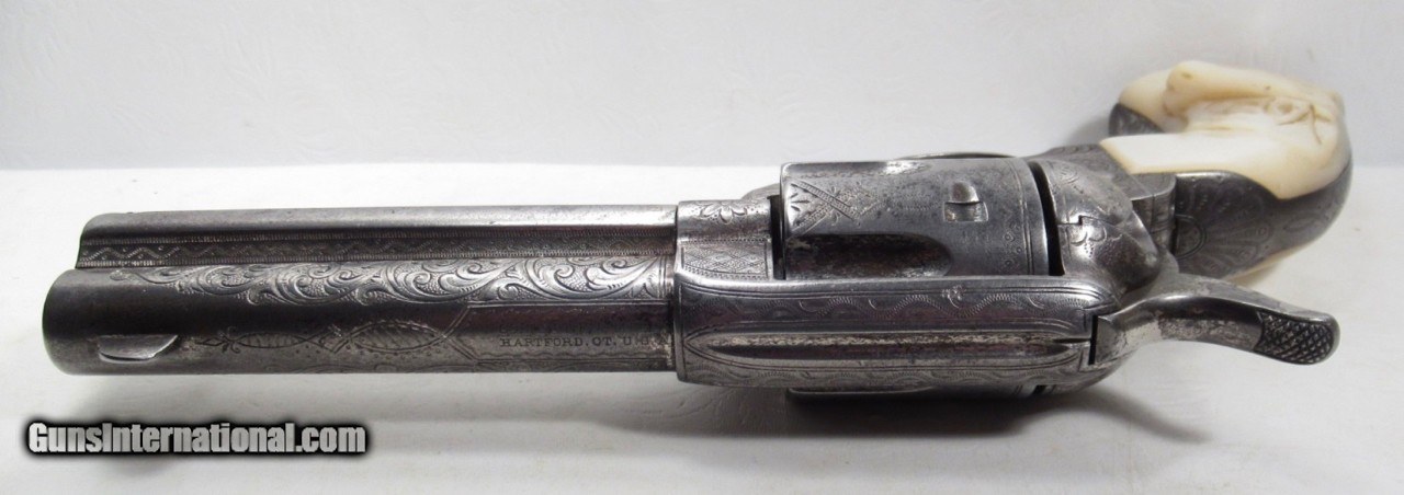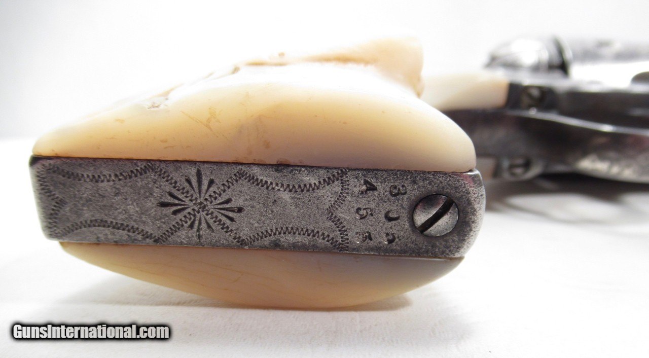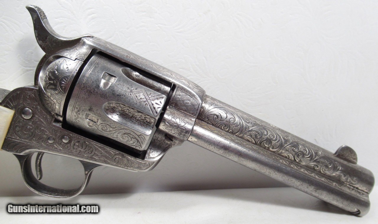 Description: Colt Single Action Army Revolver; Serial No. 305455; Per Included Factory Letter: .45 Caliber with 4 ¾” Barrel, Silver Finish, Carved Pearl Grips with Ox Head Motif; Factory Engraved (Yes); Shipped to Smith Sporting Goods Company of Tucson, Arizona Territory on December 18, 1908 as a One Gun Shipment; Fantastic Factory Engraved with Factory Carved Ox Head Pearl Grips and Silver Finish Revolver; Rare Arizona Territory Shipped 114 Year-Old Colt .45 Revolver; See All Photos for Condition; No Texts; Call (254)541-5765 or Email Only; PERSONAL PROPERTY of Harold Wieser; Price: $39,975 + $45 S&H Via USPS PRIORITY MAIL; Payment Address: Harold Wieser - 1466 U.S. Hwy 77 - Rosebud, TX 76570; SEND PAYMENTS VIA USPS PRIORITY MAIL; BEWARE of SCAMS!!! – DO NOT SEND MONEY or CORRESPONDENTS ELECTRONICALLY UNLESS YOU HAVE SPOKEN to HAROLD WIESER FIRST! 254-541-5765 SOLD |