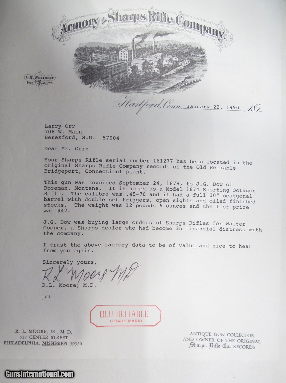 Description: Sharps Model 1874; Serial No. 161277; R.L. Moore, Jr. M.D. Letter Dated January 22, 1990 to Larry Orr of Beresford, South Dakota Describes Rifle in Present 100% Original Configuration as Model 1874 Sporting Octagon Rifle; .45-70 Caliber; Full 30” Octagonal Barrel; Double Set Triggers; Open Sights; Oil Finished Stocks; Weight 12 lbs. 6oz.; Shipped September 24, 1878 to J.G. Dow of Bozeman, Montana for Walter Cooper (Bozeman, Montana Dealer); Condition of the Fine Old Sharps is Good With Original Metal and Wood Finish Present; PERFECT Action and Very Strong Bore with minor imperfections; 144 Year-Old Montana Shipped Sharps From the Hank Williams, Jr. Collection; See All Photos for Condition; No Texts; Call (254)541-5765 or Email Only; PERSONAL PROPERTY of Harold Wieser; Price: $13,975 + $75 S&H Via USPS PRIORITY MAIL; Payment Address: Harold Wieser - 1466 U.S. Hwy 77 - Rosebud, TX 76570; SEND PAYMENTS VIA USPS PRIORITY MAIL; BEWARE of SCAMS!!! – DO NOT SEND MONEY or CORRESPONDENTS ELECTRONICALLY UNLESS YOU HAVE SPOKEN to HAROLD WIESER FIRST! 254-541-5765 SOLD |