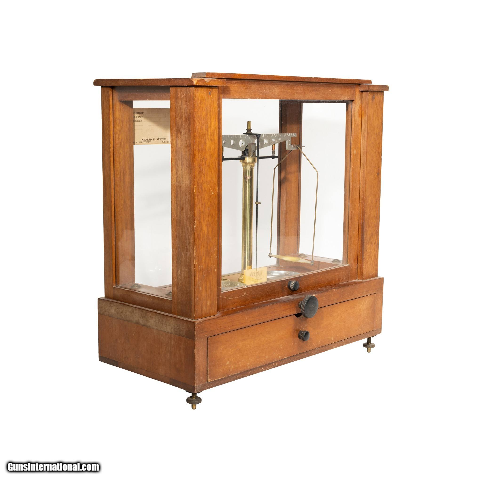 Description: Gold scale with complete weight box, tweezer and spatula. Piece is in excellent condition and mechanically functional. Case made from American walnut. Would display nicely in a Western frontier or gold mining collection, or could continue to be used. A piece of history that is in excellent condition, perfect for new and old collectors alike. Size: 16" x 8" x 17"H Family Owned & Operated Cisco’s Gallery deals in the rare, exceptional, and one-of-a-kind pieces that define the history of America and the Old West. Our pieces range from American Indian to Cowboy Western and include original items of everyday life, commerce, art, and warfare that tamed America’s frontier. Our 14,000 square foot gallery opened in 1996 in beautiful Coeur d’Alene, Idaho. Personal Service Cisco’s operates on old fashioned values – honesty and integrity, and all of our items are backed by our money back guarantee. We appreciate the opportunity to earn your business. Whether you desire assistance with a jewelry purchase, choosing a gift, identification, or even selling – we hope to be your trusted source. SOLD |