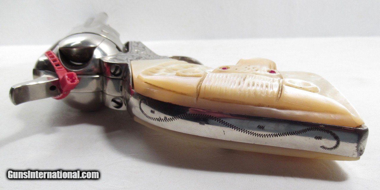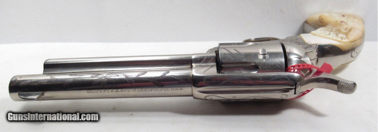 GREAT TEXAS SHIPPED COLT S.A.A. 45 REVOLVER from COLLECTING TEXAS – WOLF & KLAR ENGRAVED – CARVED PEARL GRIPS – MADE 1924