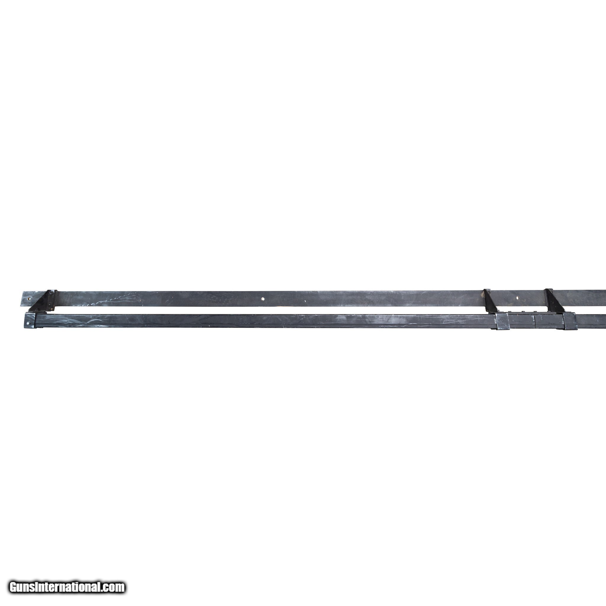 Description: Pair of custom hand forged iron gates with sliding barn door style hardware. 96"H x 86"W; Top Bar 192 SOLD |