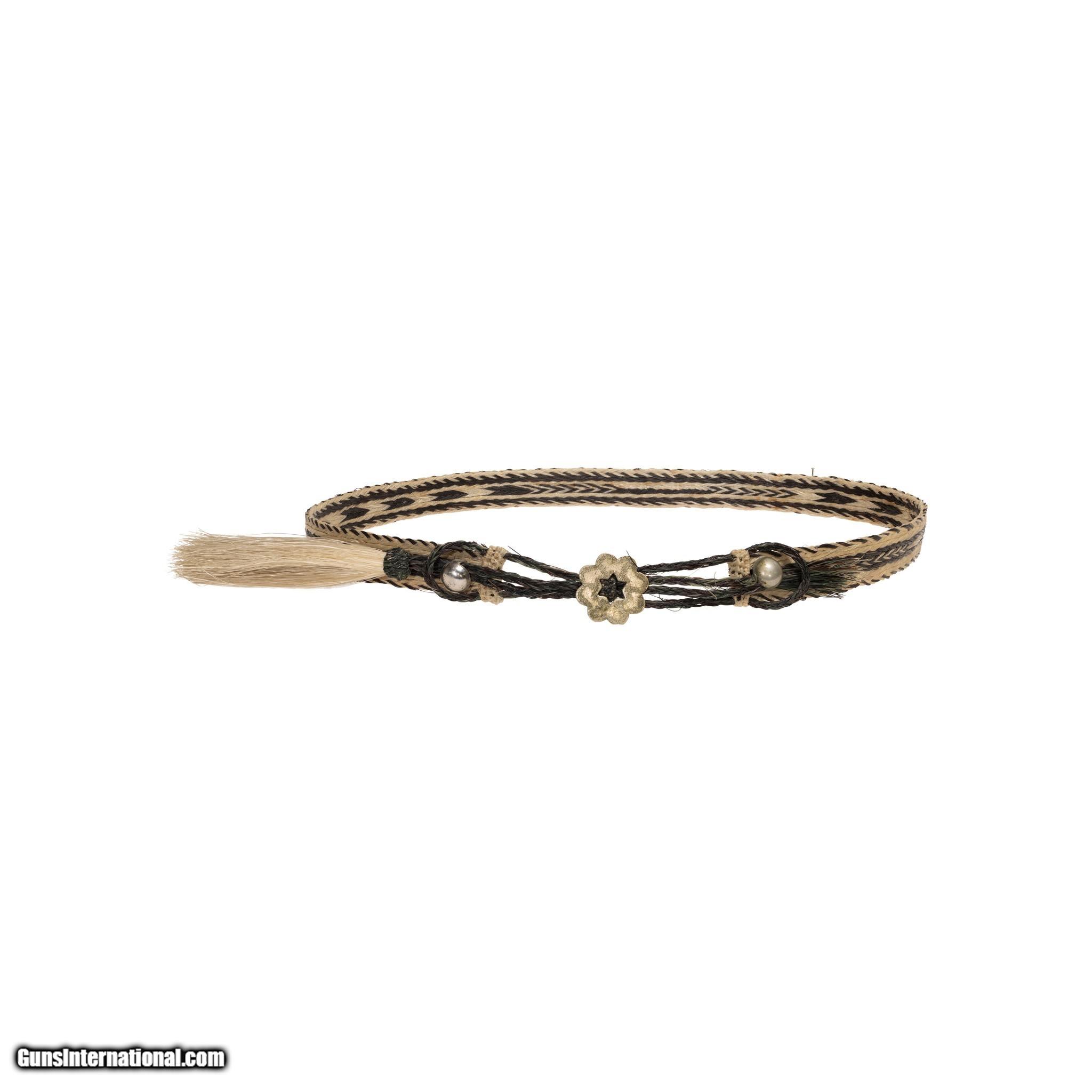 Description: Horsehair hat band with German silver. Possibly from the Deer Lodge Prison. Tightly woven band featuring colors of black and cream with simple Southwestern geometric design. Great simple and classic design that would compliment any Western style or cowboy hat. Size: 21" and expandable. Family Owned & Operated Cisco’s Gallery deals in the rare, exceptional, and one-of-a-kind pieces that define the history of America and the Old West. Our pieces range from American Indian to Cowboy Western and include original items of everyday life, commerce, art, and warfare that tamed America’s frontier. Our 14,000 square foot gallery opened in 1996 in beautiful Coeur d’Alene, Idaho. Personal Service Cisco’s operates on old fashioned values – honesty and integrity, and all of our items are backed by our money back guarantee. We appreciate the opportunity to earn your business. Whether you desire assistance with a jewelry purchase, choosing a gift, identification, or even selling – we hope to be your trusted source. SOLD |