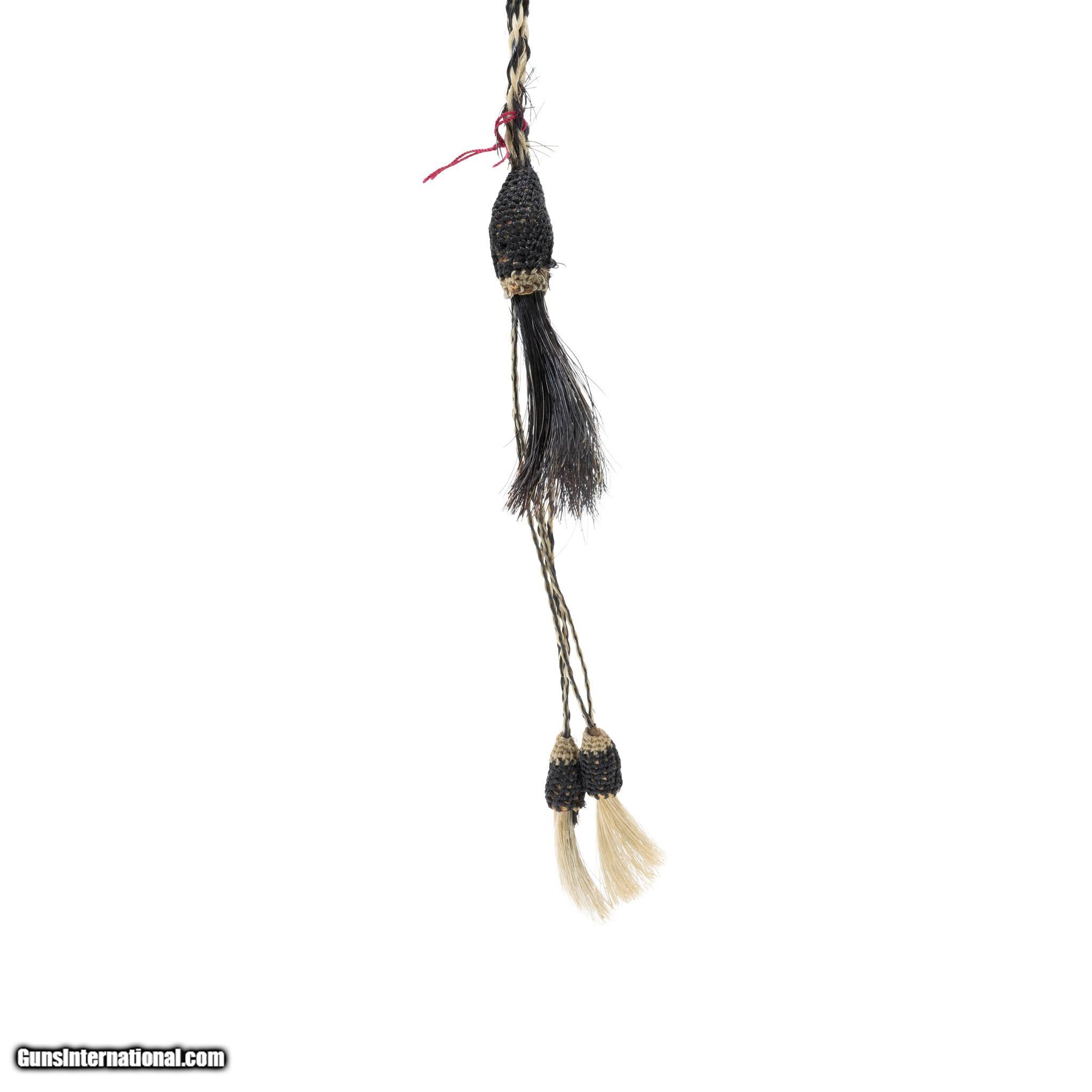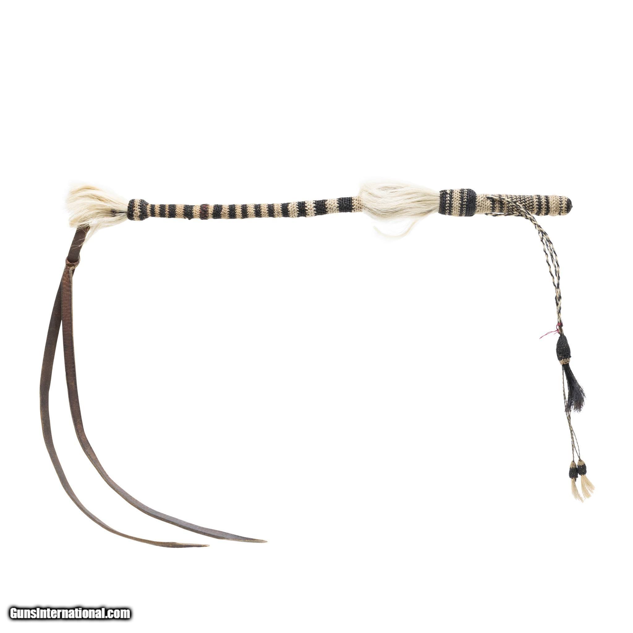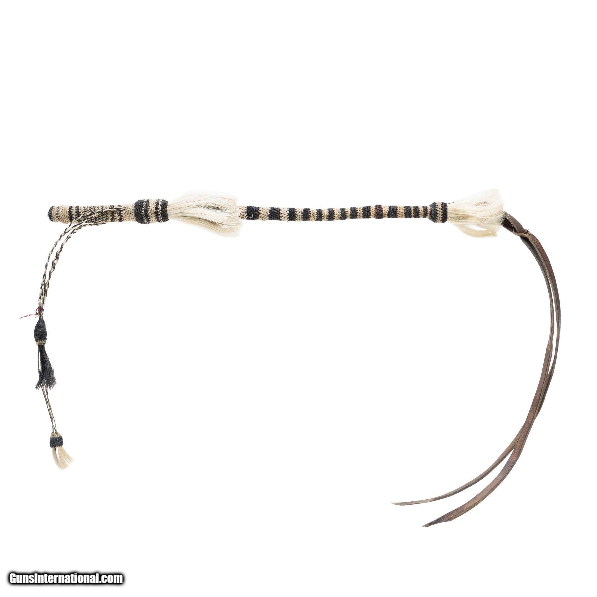 Description: Horsehair quirt with original leather flapper and buttons. Like new condition. Lovely handmade piece that would complement a Western collection or great for continued use. Early 20th century. Size: 18", Overall 36" Family Owned & Operated Cisco’s Gallery deals in the rare, exceptional, and one-of-a-kind pieces that define the history of America and the Old West. Our pieces range from American Indian to Cowboy Western and include original items of everyday life, commerce, art, and warfare that tamed America’s frontier. Our 14,000 square foot gallery opened in 1996 in beautiful Coeur d’Alene, Idaho. Personal Service Cisco’s operates on old fashioned values – honesty and integrity, and all of our items are backed by our money back guarantee. We appreciate the opportunity to earn your business. Whether you desire assistance with a jewelry purchase, choosing a gift, identification, or even selling – we hope to be your trusted source. SOLD |