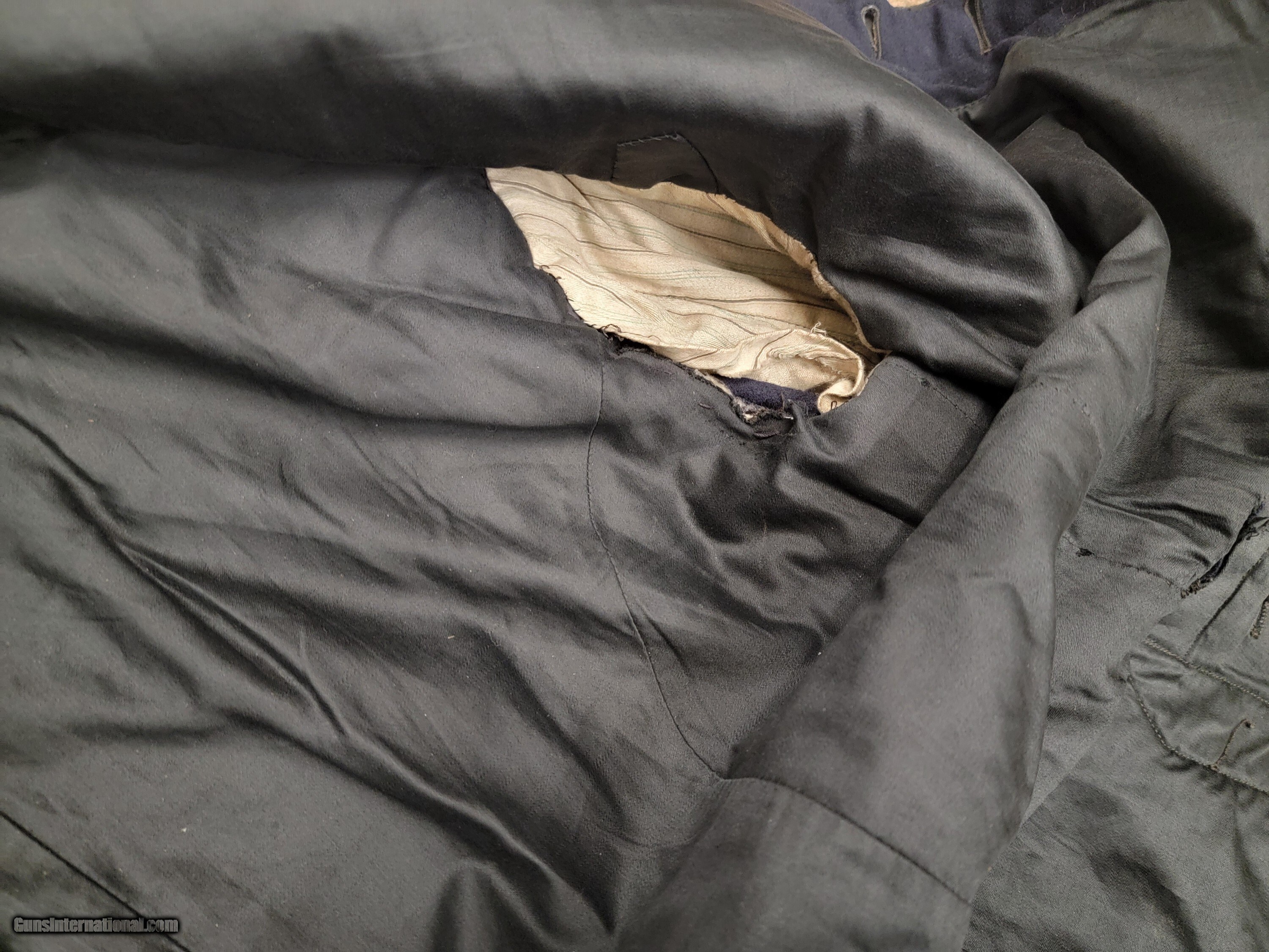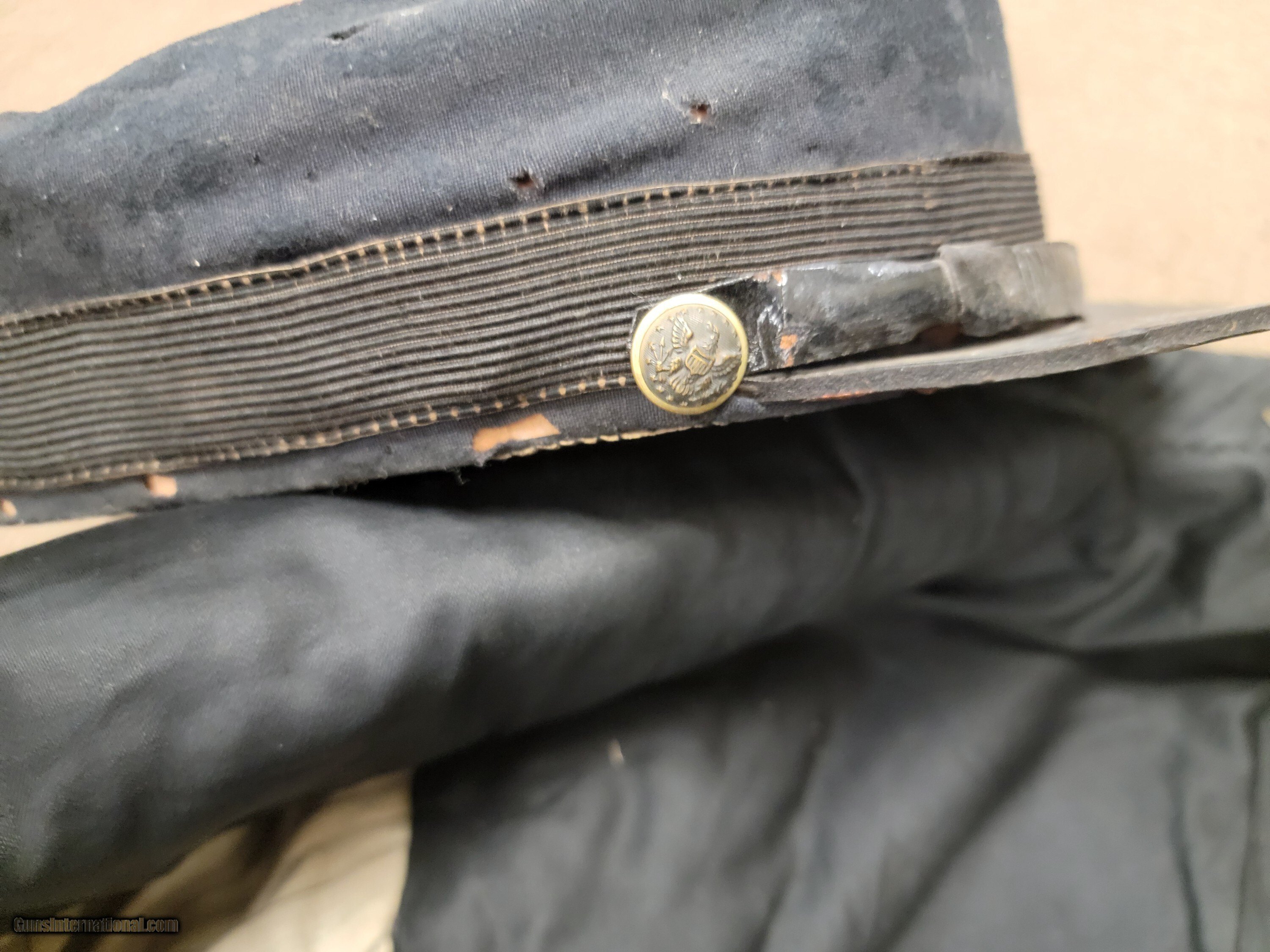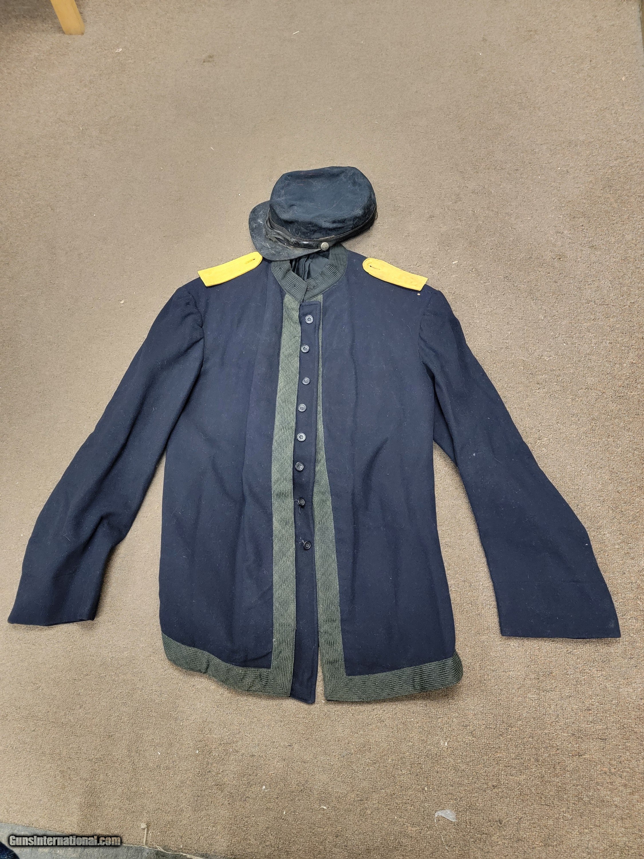 Description: A rare Indian War s/Spanish American War era tunic and matching garrison Kepi/hat. Guaranteed original 1880's/1890's US Blue Army/Cavalry tunic. This tunic is in great condition. The colors are excellent and vibrant.....a little dusty. No rips or loose stitching, just a couple of moth nips smaller than a pea. No missing buttons. The sleeve linings are in tack/nothing loose or torn. Tis tunic was probably used by a Adjutant (Officers personal staff)soldier probably working on Cavalry boards (no sewing or buttons). The Cavalry boards (found in the inside pocket)would make the uniform correct for promotion to Cavalry second lieutenant. The matching Garison hat, with original chin strap is a rare find by itself. Made by a rare Albany New York maker that will make a fabulous addition to any US Cavalry, museam, western era or Military collection and display. layaway available Add 3%for CC payment Questions;Mark. msbobbettkimbersinc Price: $885.00 Buy Now Contact Seller |