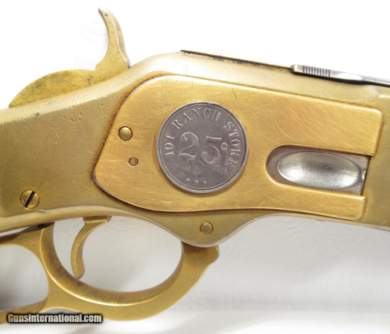 JACK CASE 101 RANCH GOLD PLATED WINCHESTER 1873 SADDLE RING CARBINE from COLLECTING TEXAS – COMES with VINTAGE POCKET WATCH