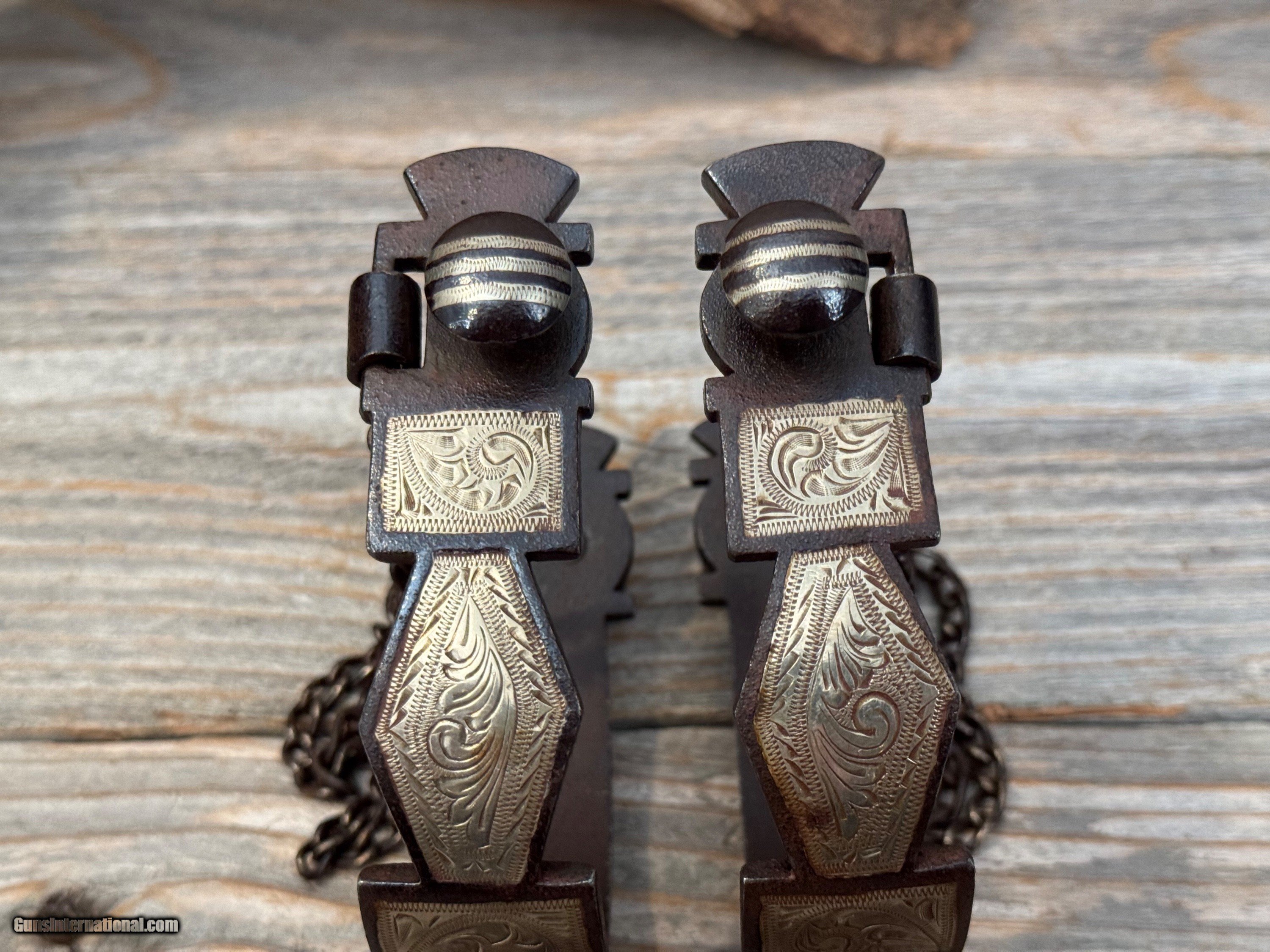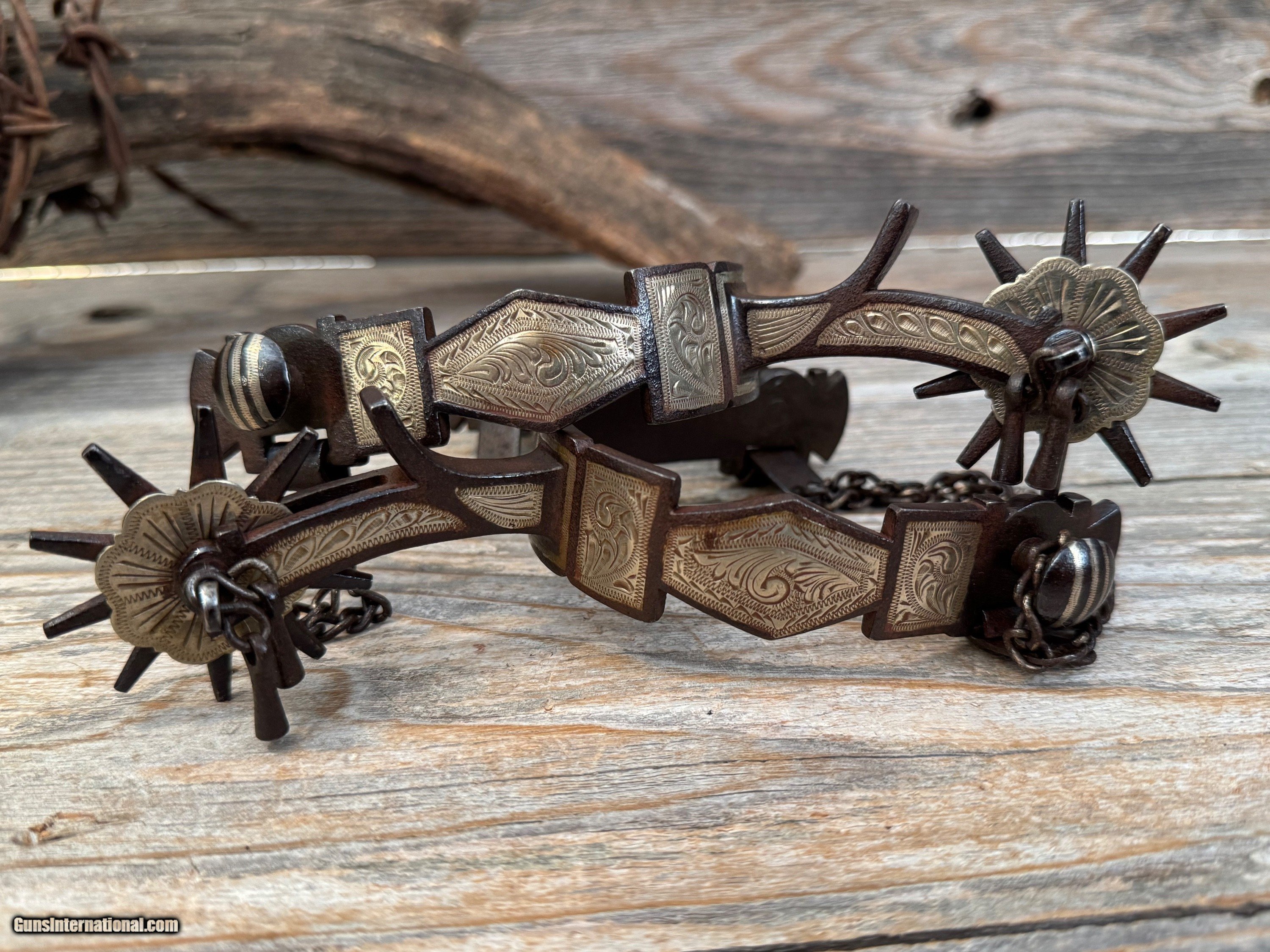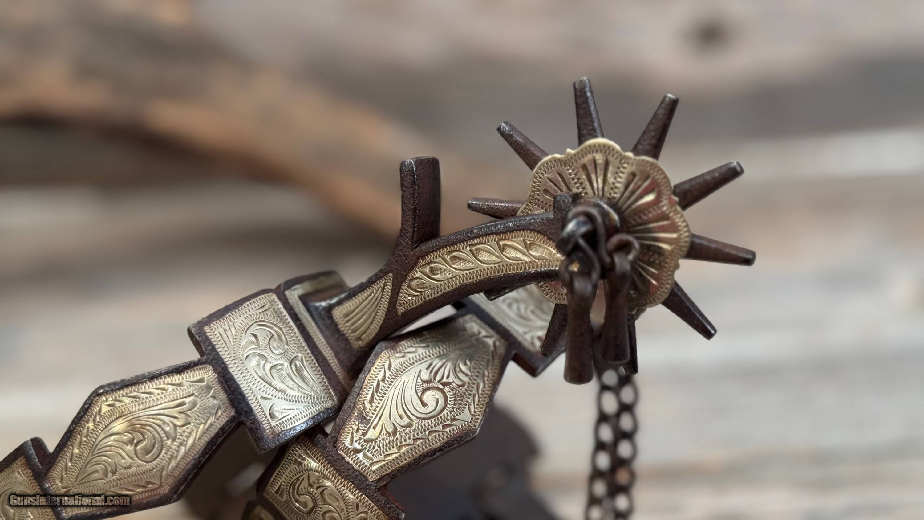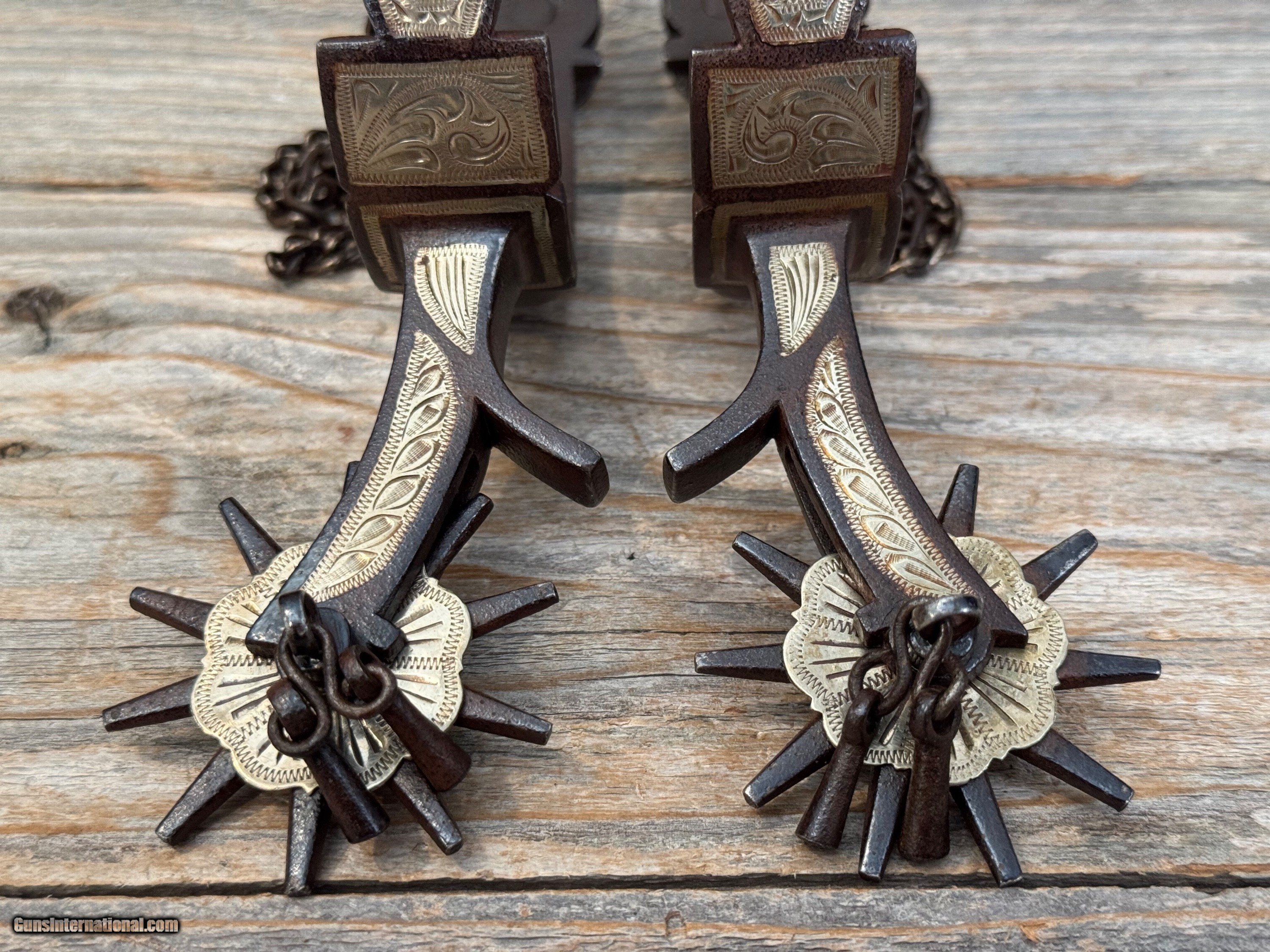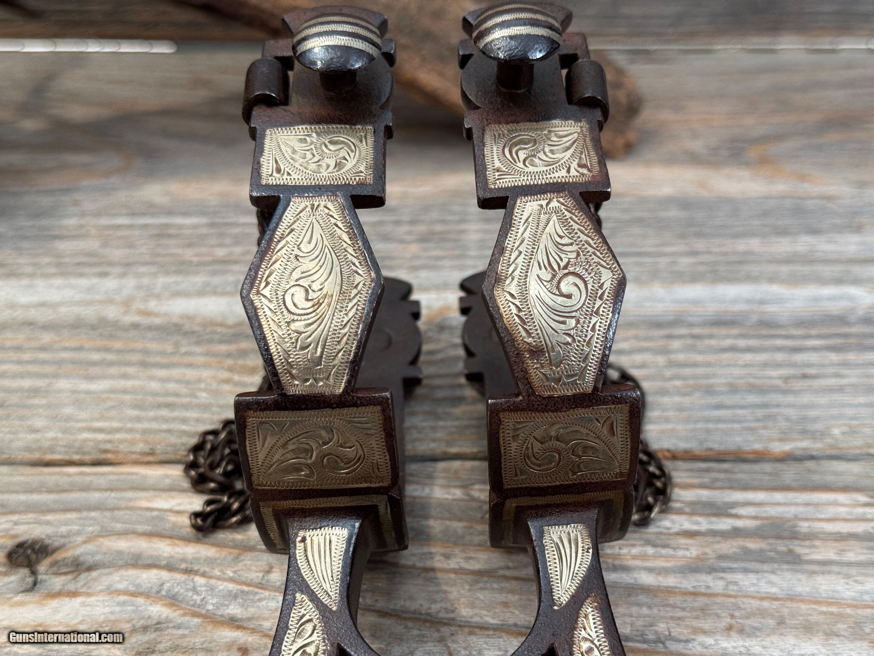 Les "GARCIA" Marked Silver Inlay Vaquero Spurs w/ Double Chains - BEAUTIFUL
