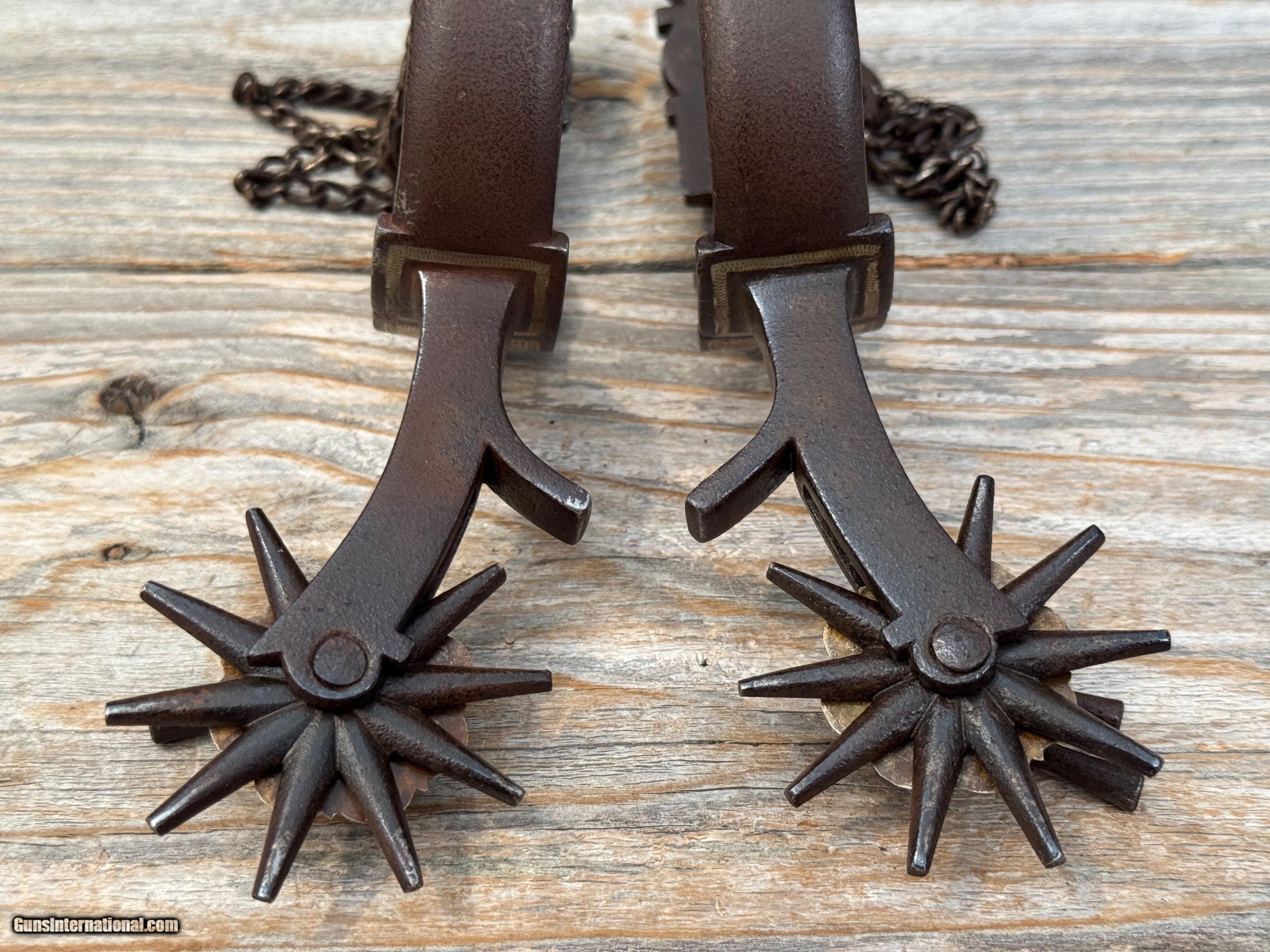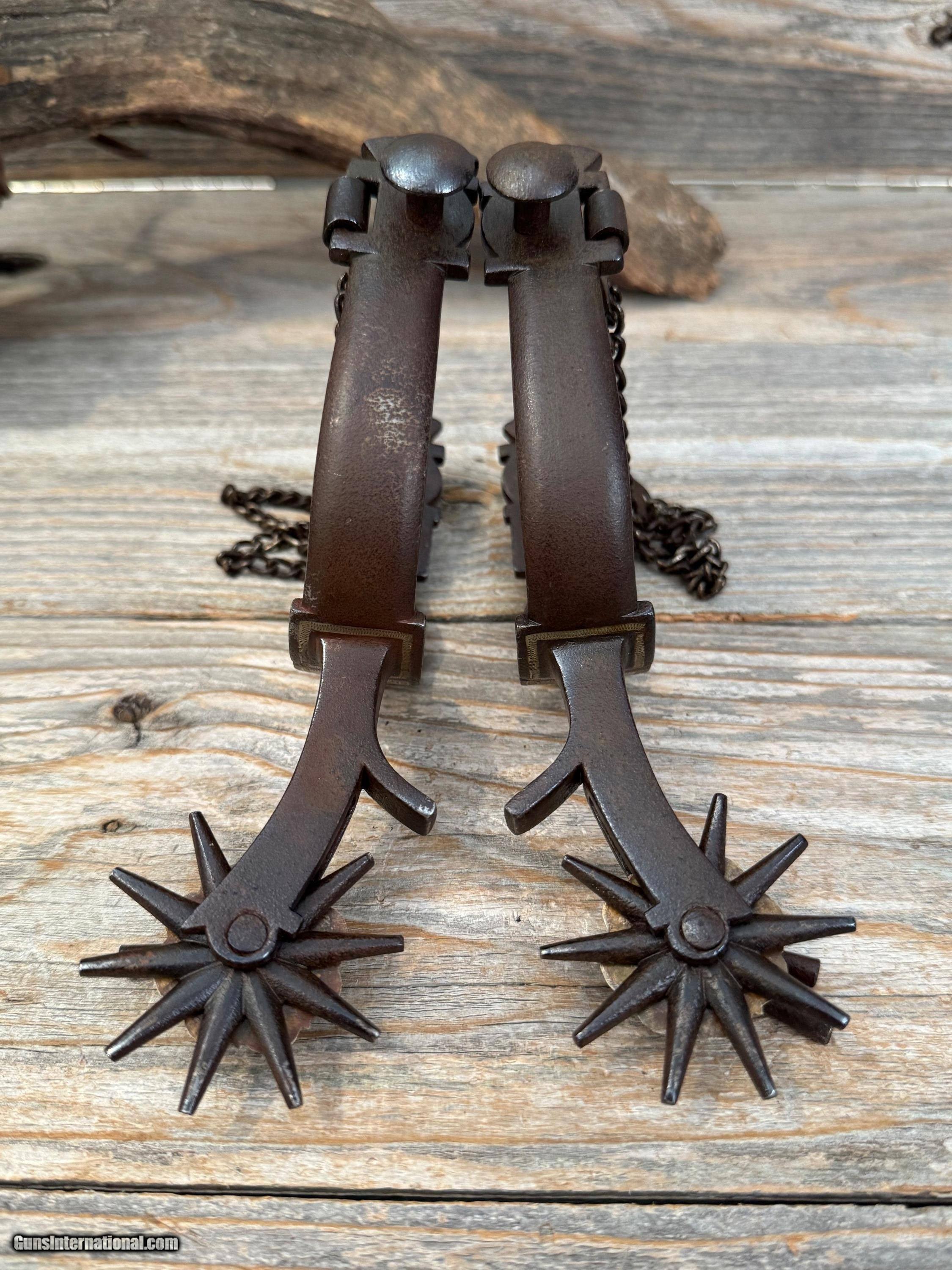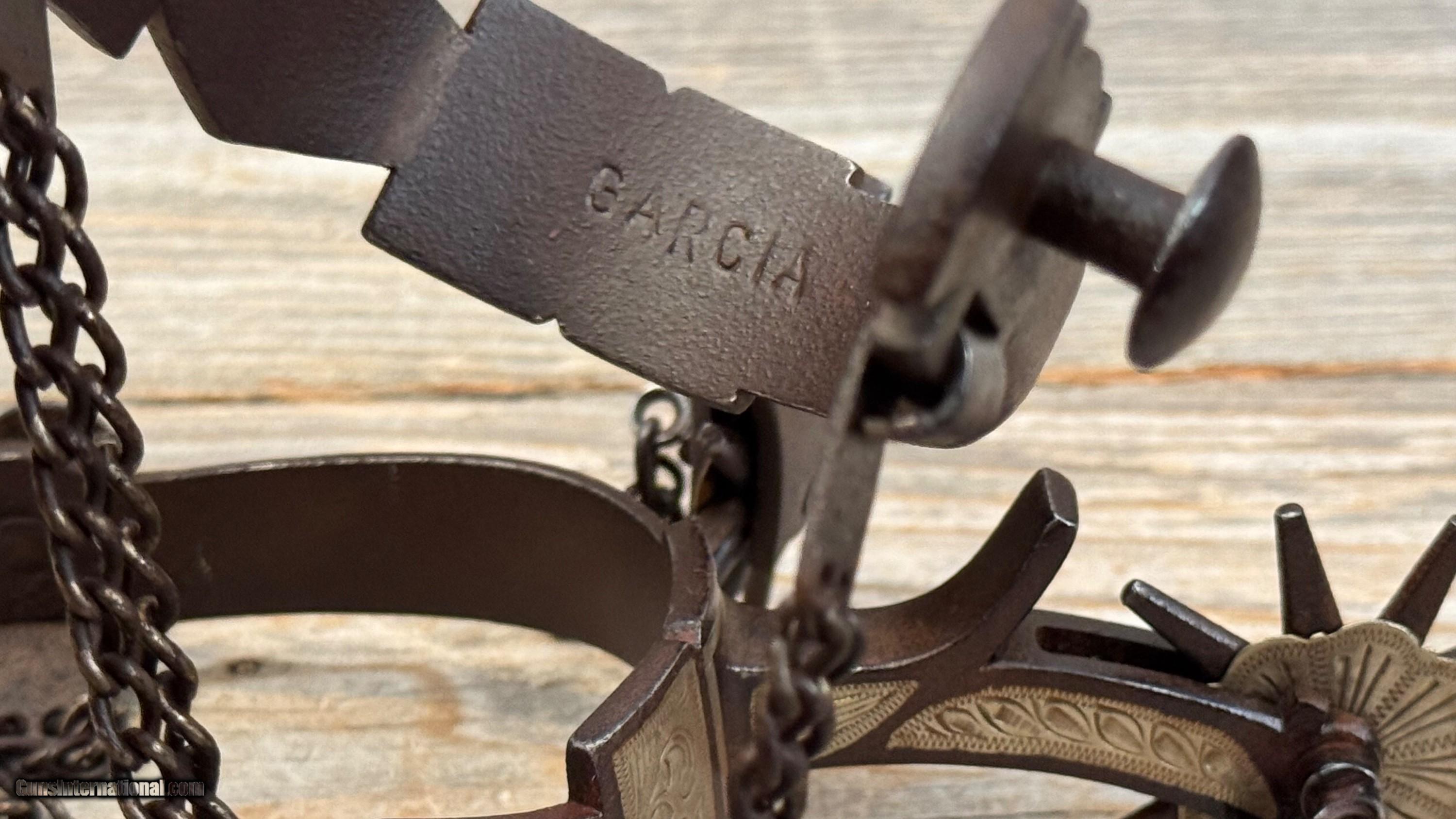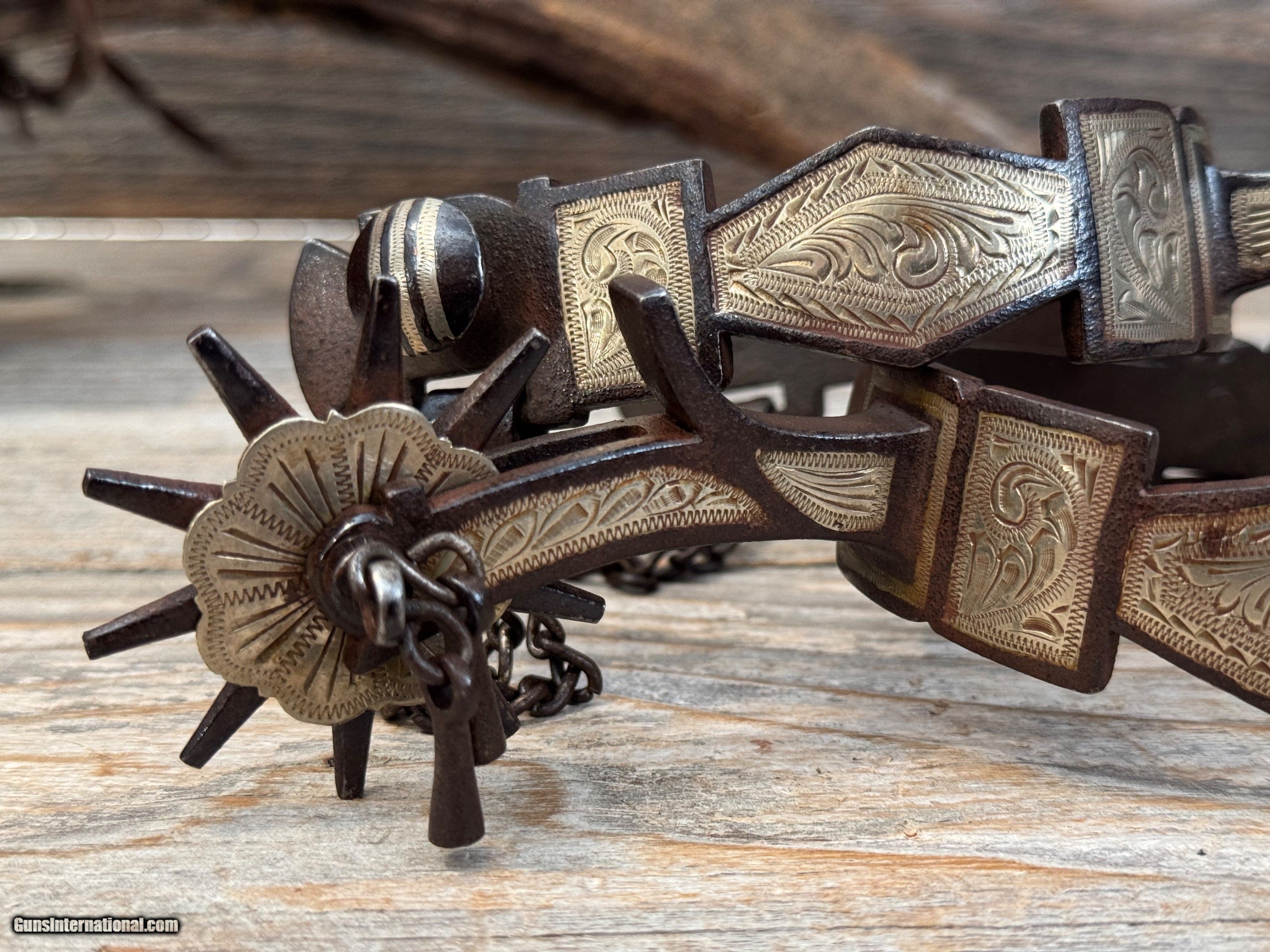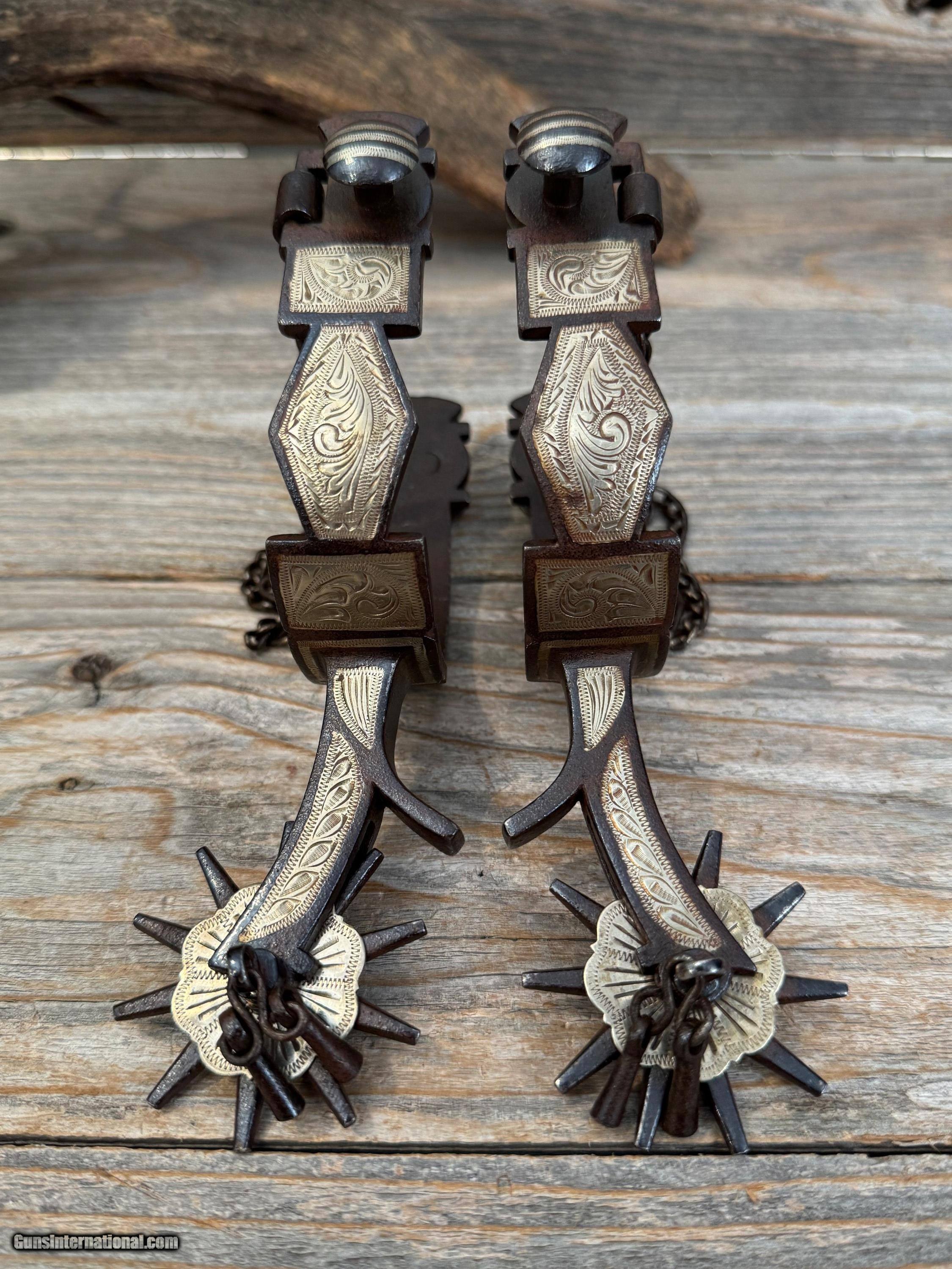 Les "GARCIA" Marked Silver Inlay Vaquero Spurs w/ Double Chains - BEAUTIFUL