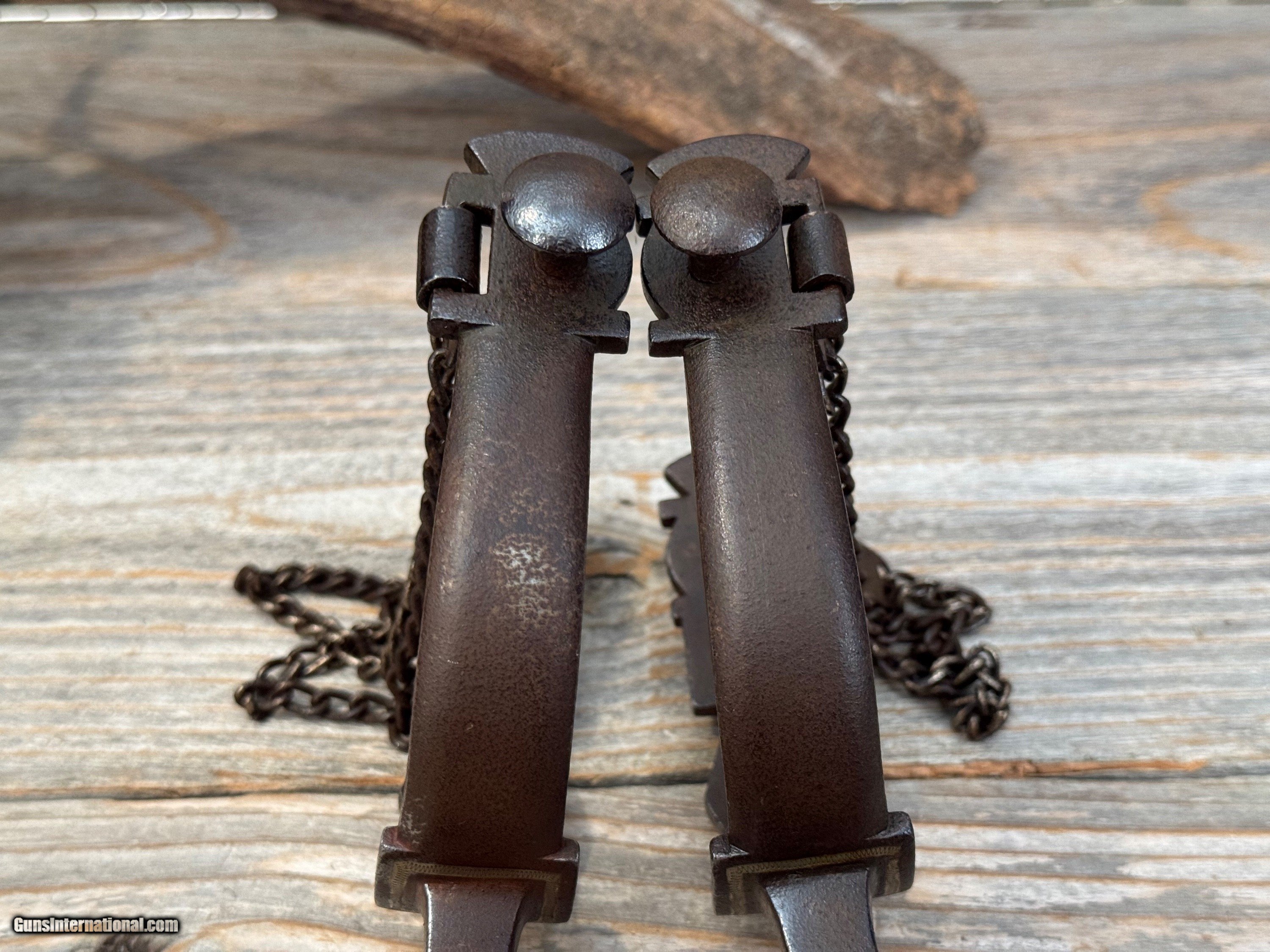 Description: Looking to sell a BEAUTIFUL pair of Les "GARCIA" marked Square/Diamond Silver Inlay Vaquero Spurs w/ Double Chains. Featuring silver inlay throughout with a gold hue, these spurs have 2 engraved squares w/ an engraved diamond in the middle, engraved shanks and engraved rowel guards. Beautifully crafted with a nice patina, these spurs have double heel chains, chap guards and jingle bobs. The buttons also have silver inlay stripes in them. Circa 1936-1939 (shut down for WWII). Rowel Diameter: 2" Number of points on Rowel: 10 Heel band opening: 3" Overall length: 7" ________________________________________________________________________________________________________________________________________________________________________________ HISTORY & TIMELINE of the life of GS GARCIA and the brand: 1864 – Born in Sonora, Mexico 1882 – Opens his first shop in California 1894 – Moves to Nevada and begins work where his company employs many other master spur and bit makers. Many people this that by this time he was doing very little work himself as he was running his business and working as a Rodeo promoter. 1932 – G. S. Garcia turns the business over to his sons Les and Henry 1933 – G. S. Garcia dies 1936 – Les and Henry move the business back to Salinas, California, however it shuts down for WWII 1946 – Business reopens after the war 1957 – Les sells out his portion of the business to Henry, Les continues to produce some items marked “Les Garcia – Reno” 1979 – the J. M. Capriola Co. buys out Les Garcia and moves the company to Elko, Nevada, and is still in business producing spurs today. Born: 1864 Died: 1933 Locations: Elko, NV & Salinas, CA Markings: “GS GARCIA ELKO NEV”, “GSG HAND MADE”, “GS GARCIA MAKER ELKO NEV” Garcia’s marks vary over time based on the location where the business was located and the ownership as well. These marks can be generally categorized as follows: “G.S. GARCIA” “ELKO NEV.” – This is the mark used while the shop was in Elko, Nevada. Early on the mark has a backwards “N” in Nev., this was changed around 1910 to a regular “N”. This can be a helpful feature in dating Old Spurs. “GARCIA” “SADDLERY COMPANY” “SALINAS CALIF.” – This mark was used by Les Garcia after his father left the company, when his sons moved to Salinas. ________________________________________________________________________________________________________________________________________________________________________________ If you are a fan of Western Americana or are looking to add a unique piece to your collection, these gorgeous spurs are a must-have. Price includes shipping to the CONUS. SOLD |
