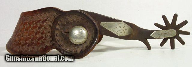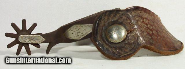 Description: Crockett Diamond Pattern Single Mounted Spurs with nice straps; from my own personal collection;All items shipped fully insured--Spurs $30; return policy: three days inspection from the date the item is received; full refund of shipping both ways ONLY IF THE ITEM IS MISREPRESENTED. Note: International sales only as laws permit. SOLD |