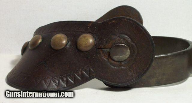 Description: Nice pair of R. L. Causey spurs; typical crude; RLC mark; Robert Lincoln Causey was born February 12, 1868 in Kansas City, MO.; Died in 1937 Safford, AZ.; he made spurs in Texas, New Mexico, Oregon, Idaho, and Arizona; from my own personal collection;All items shipped fully insured--Spurs $30; return policy: three days inspection from the date the item is received; full refund of shipping both ways ONLY IF THE ITEM IS MISREPRESENTED. Note: International sales only as laws permit. SOLD |