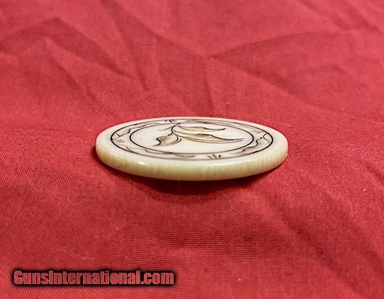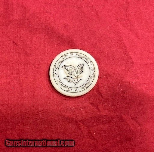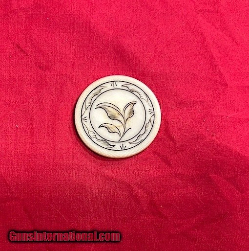 RARE!! Antique 1800's Old West Poker Chip w/ Hand Scrimshaw Floral Motif Design