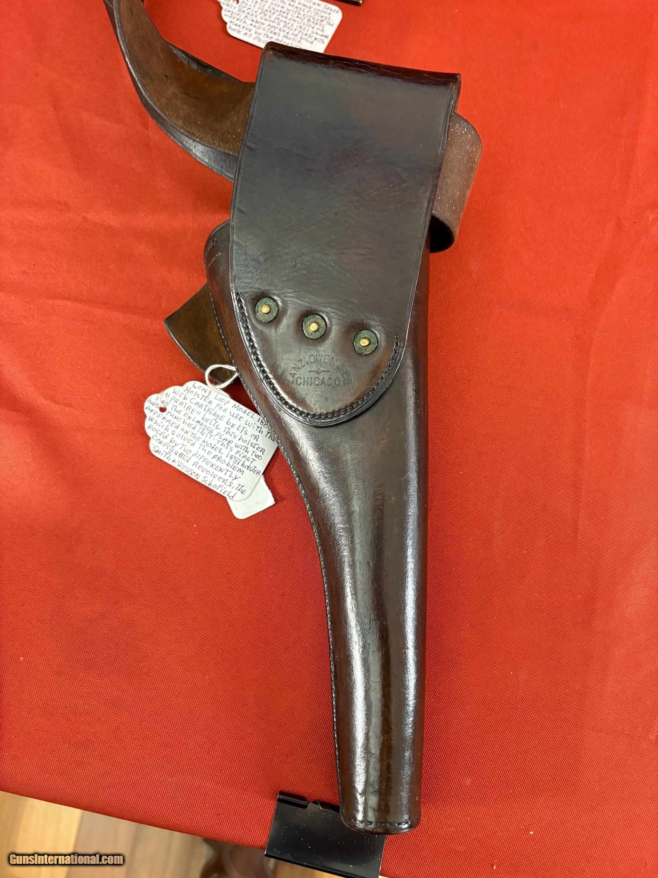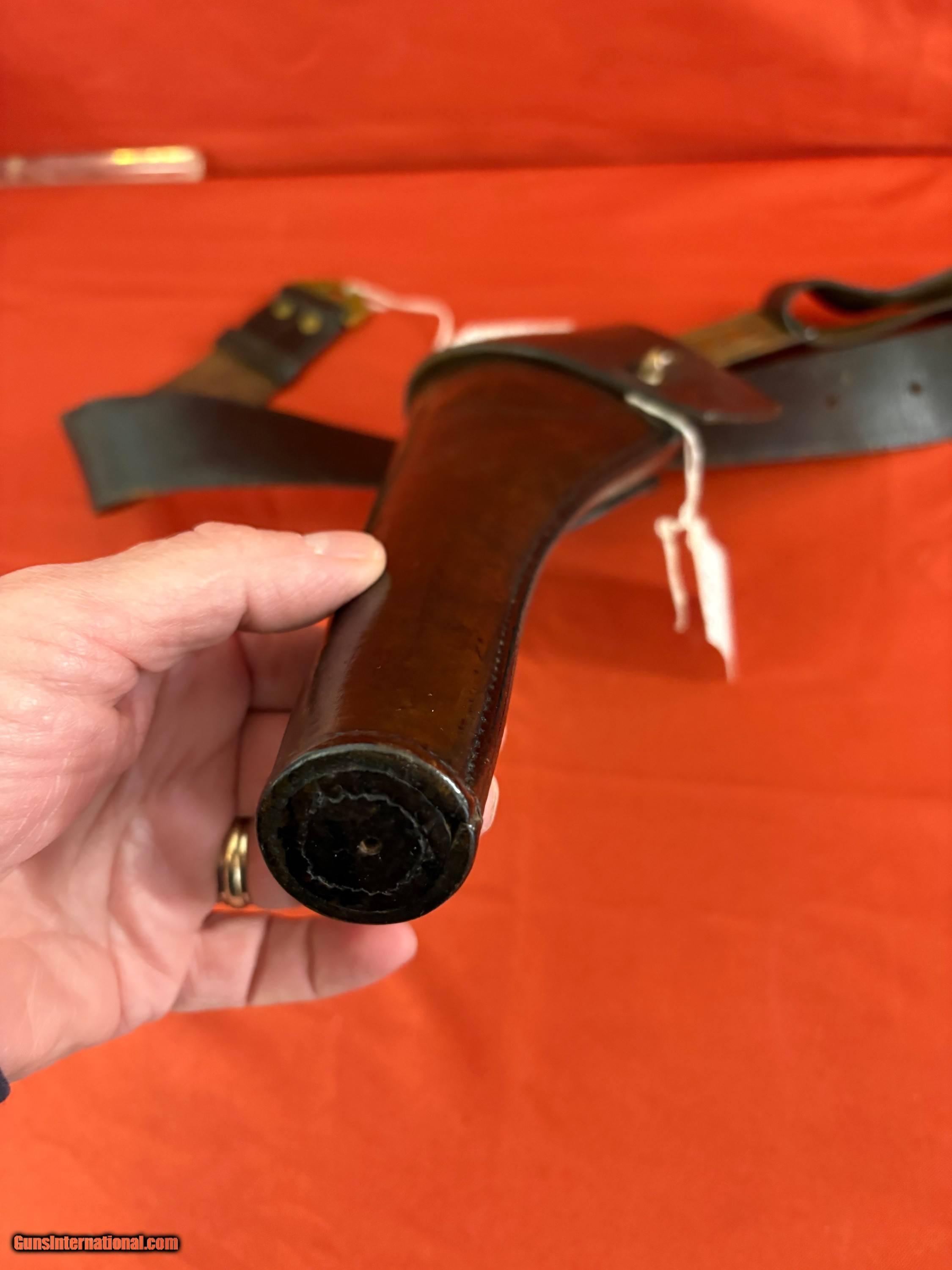 Description: RARE FIND ~ COLT 1873 SINGLE ACTION ARMY CAVALRY HOLSTER BY LANZ . OWEN & CO. CHICAGO , COMES WITH A ROCK ISLAND ARSENAL BELT WITH BUCKLE. VERY NICE CONDITION . SEE PICTURES, ADD 20.00 UPS GROUND SHIPPING. EASTERN BRANCH FIREARMS OPTIONAL INSURANCE IS AVAILABLE AT 1.25 PER 100.00 Questions e-mail or call Glen at Eastern Branch Firearms 207-215-5021 TERMS – PLEASE READ BEFORE I DO NOT HAVE A LAYAWAY OPTION ( WE ACCEPT CREDIT CARDS ) -- I GET ALOT OF REQUEST FOR TRADES, I WOULD PERFER NOT TO DO TRADES ON MY INTERNET LISTINGS PAYMENT OPTIONS- We accept money orders, cashier’s checks , bank checks. personal checks ( with personal check - shipping hold for 10 days from check being deposited - no exceptions) . We accept all major credit cards please add 3% to the ’s cash discount price.(Shipping within the state of Florida - Florida Residents must pay sales tax) .Handguns and long guns do need to be shipped separate. PLEASE do not send payment via FED EX . USPS & UPS are fine. Thank you. We include a signed copy of our FFL with each firearm shipped. SAFTY NOTICE- Buyer is solely responsible for determining that a used gun is safe to shoot. The firearms offered have not been test fired but have been given a visual inspection only for purposes. It is a requirement that every used firearm is inspected by a qualified gunsmith before firing. By , the buyer agrees to hold seller harmless against damages, injury, or death caused by defective merchandise. RETURN POLICY- All firearms come with a 3-day non firing , non messing with ( turning srews ,taking apart,removing parts, scoping. firing, cleaning or messing with in anyway) inspection/return privilege.Inspection is based on a visual review of the gun to confirm the gun is in the condition stated. In the case of a return, buyer pays all shipping charges & if paid for with a credit card buyer absorbs the 3% credit card charges . So please ask questions BEFORE you bid. Thanks for Looking and Good Luck!! Price: $2,950.00 Shipping: $20.00 Buy Now Contact Seller |