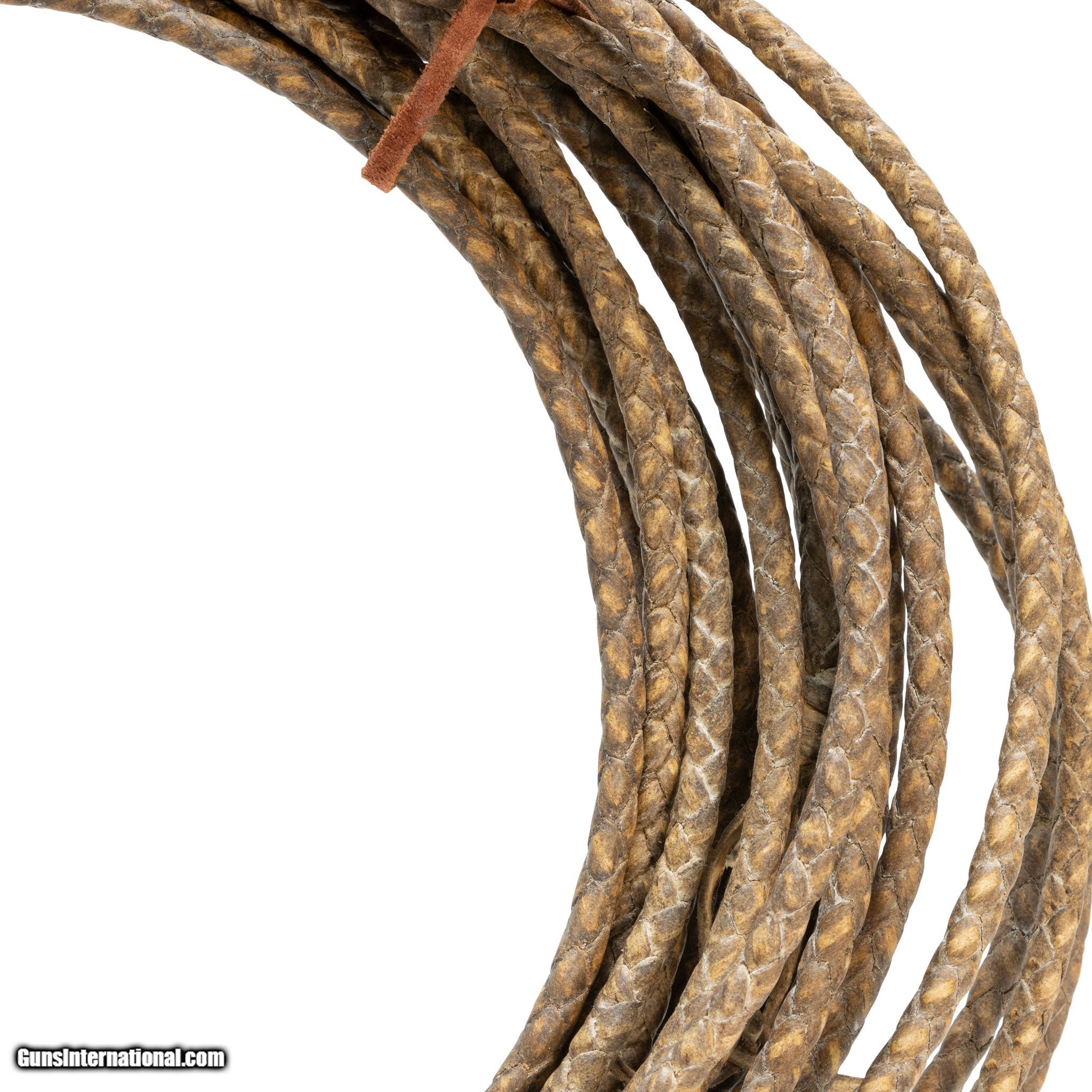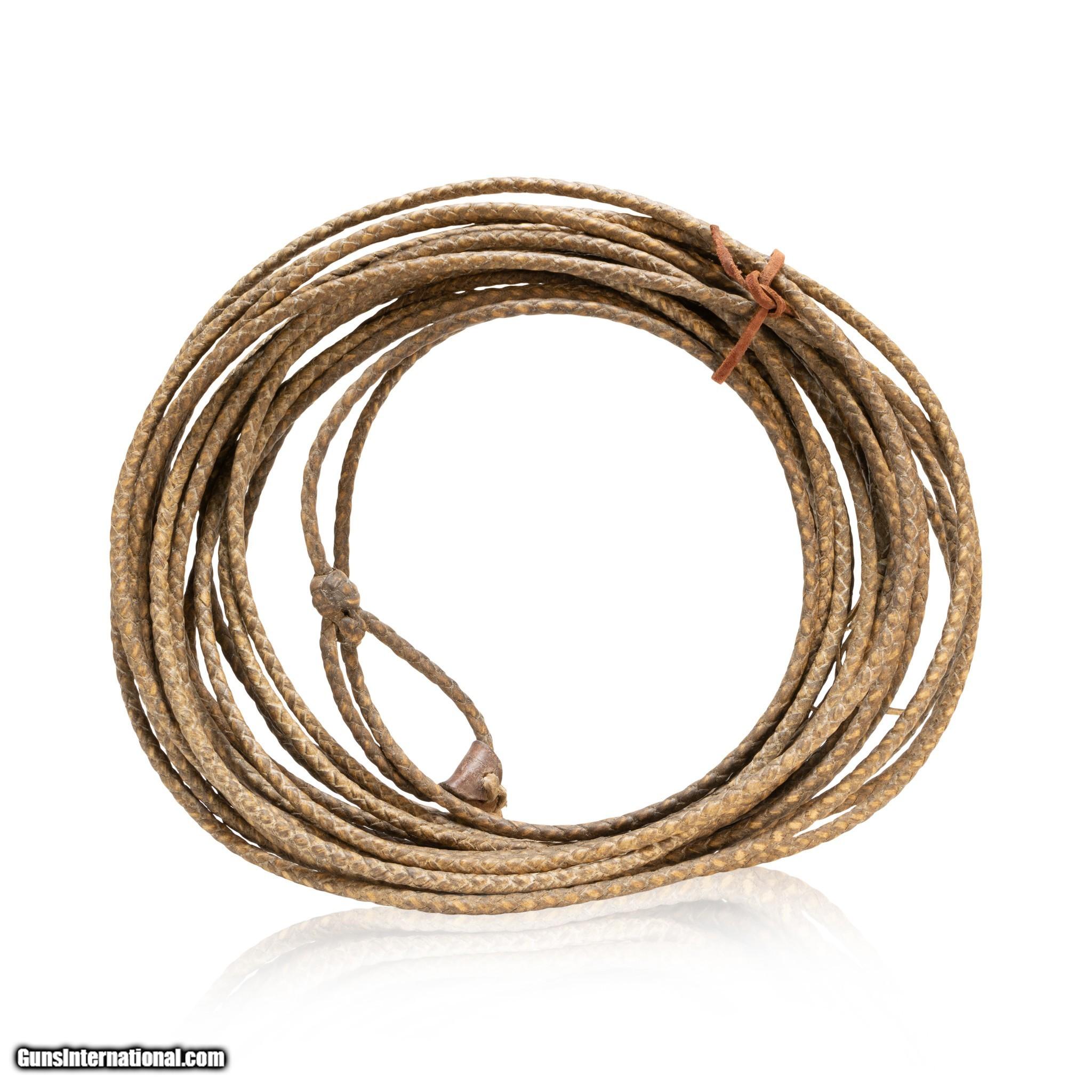 Description: Outstanding 70 foot rawhide braided riata. Shows nice four plait braid work throughout with appealing hondo and tails. Great supple feel and color. Great antique vintage piece that would display nicely in a Southwestern style home, farm or ranch house, or in a Western or cowboy collection. Size: 70' Family Owned & Operated Cisco’s Gallery deals in the rare, exceptional, and one-of-a-kind pieces that define the history of America and the Old West. Our pieces range from American Indian to Cowboy Western and include original items of everyday life, commerce, art, and warfare that tamed America’s frontier. Our 14,000 square foot gallery opened in 1996 in beautiful Coeur d’Alene, Idaho. Personal Service Cisco’s operates on old fashioned values – honesty and integrity, and all of our items are backed by our money back guarantee. We appreciate the opportunity to earn your business. Whether you desire assistance with a jewelry purchase, choosing a gift, identification, or even selling – we hope to be your trusted source. SOLD |