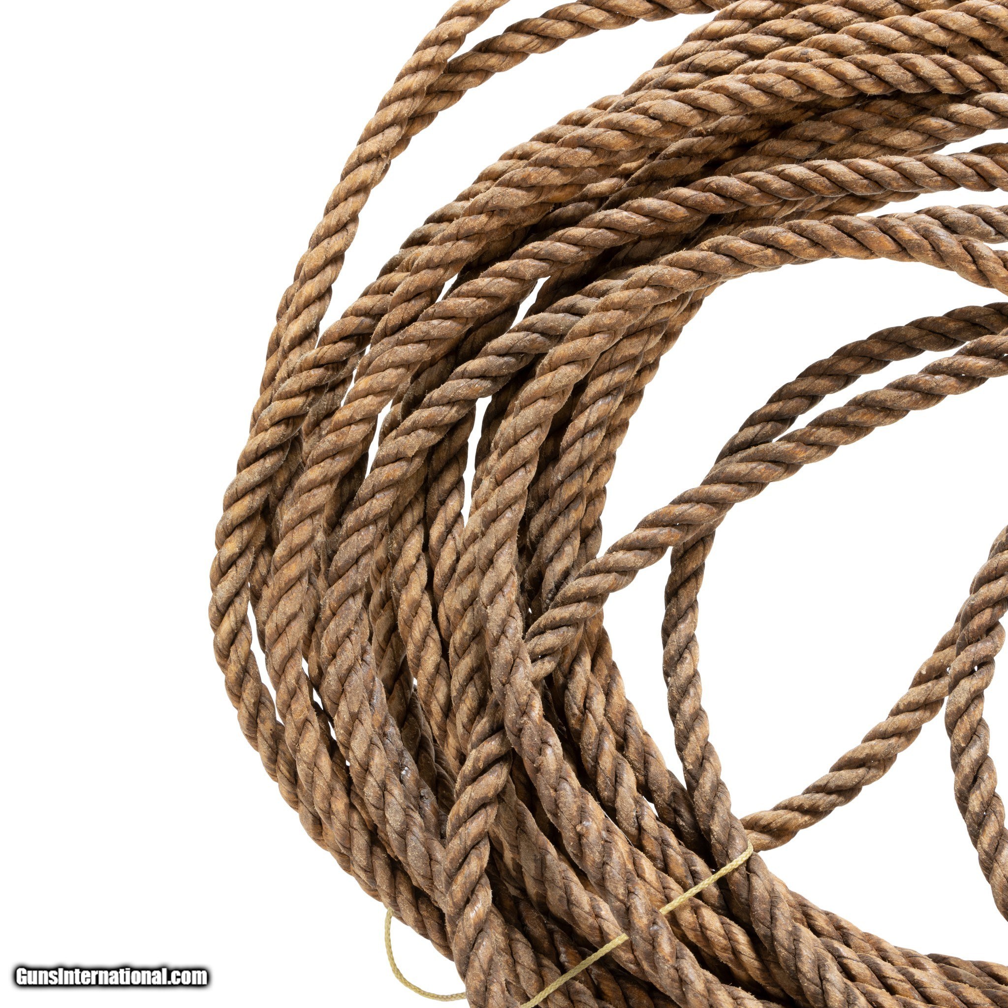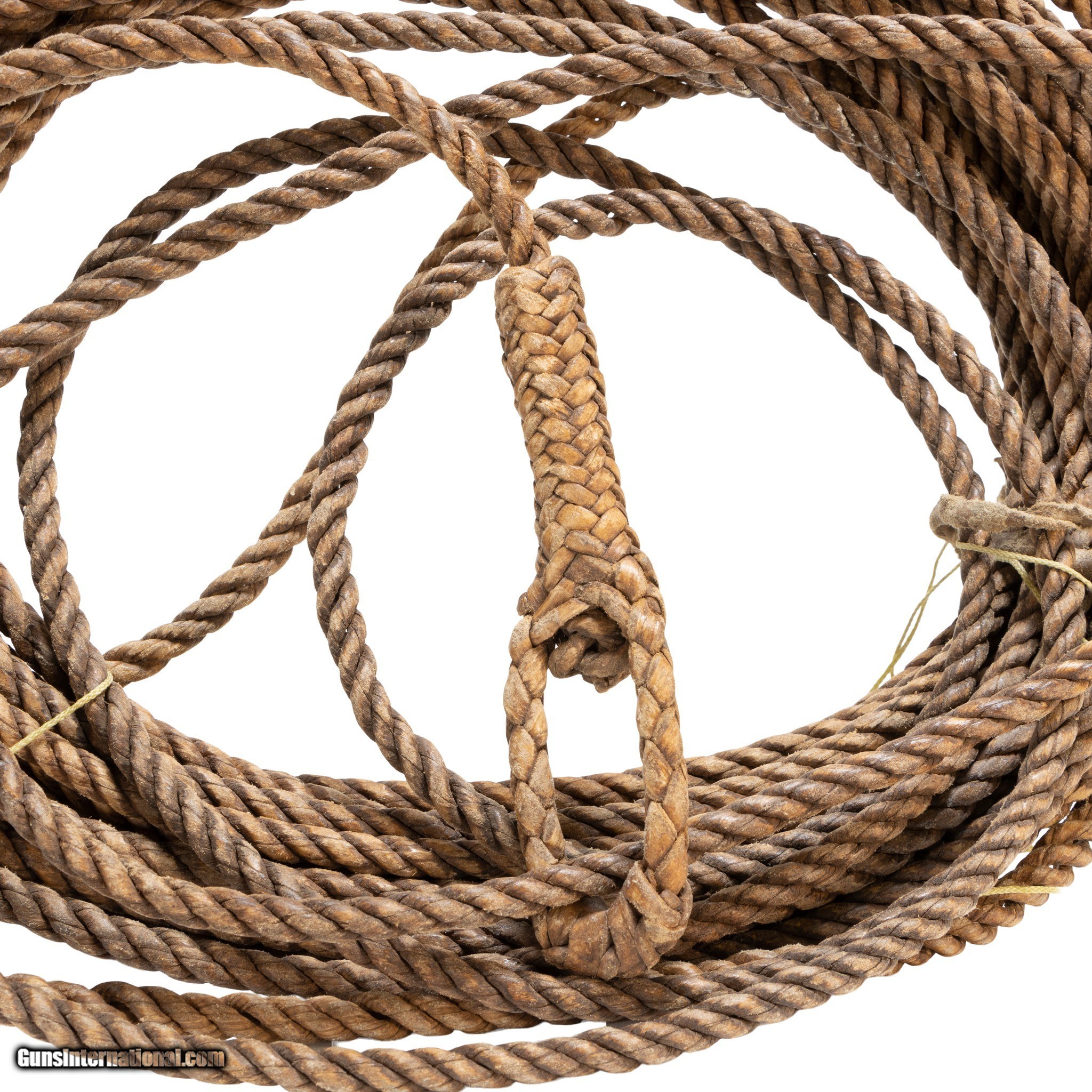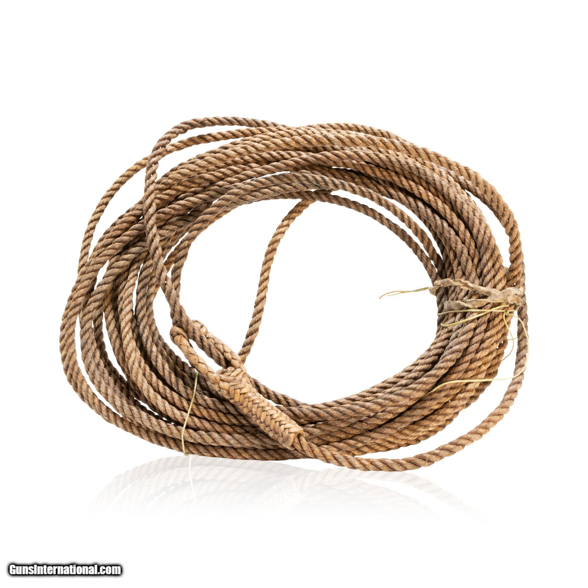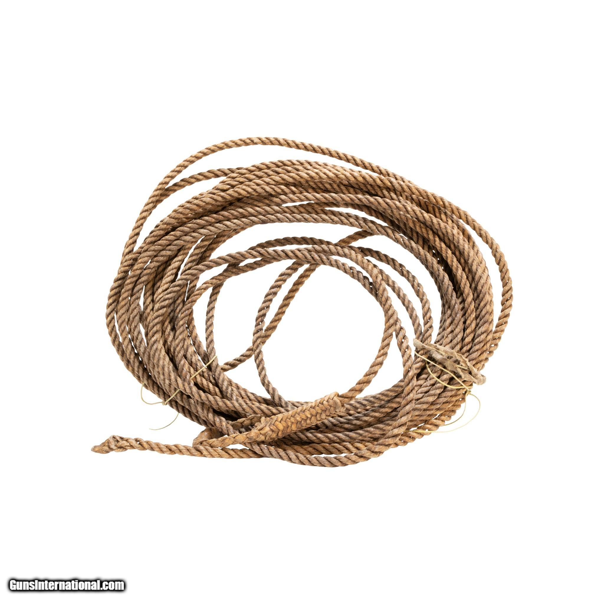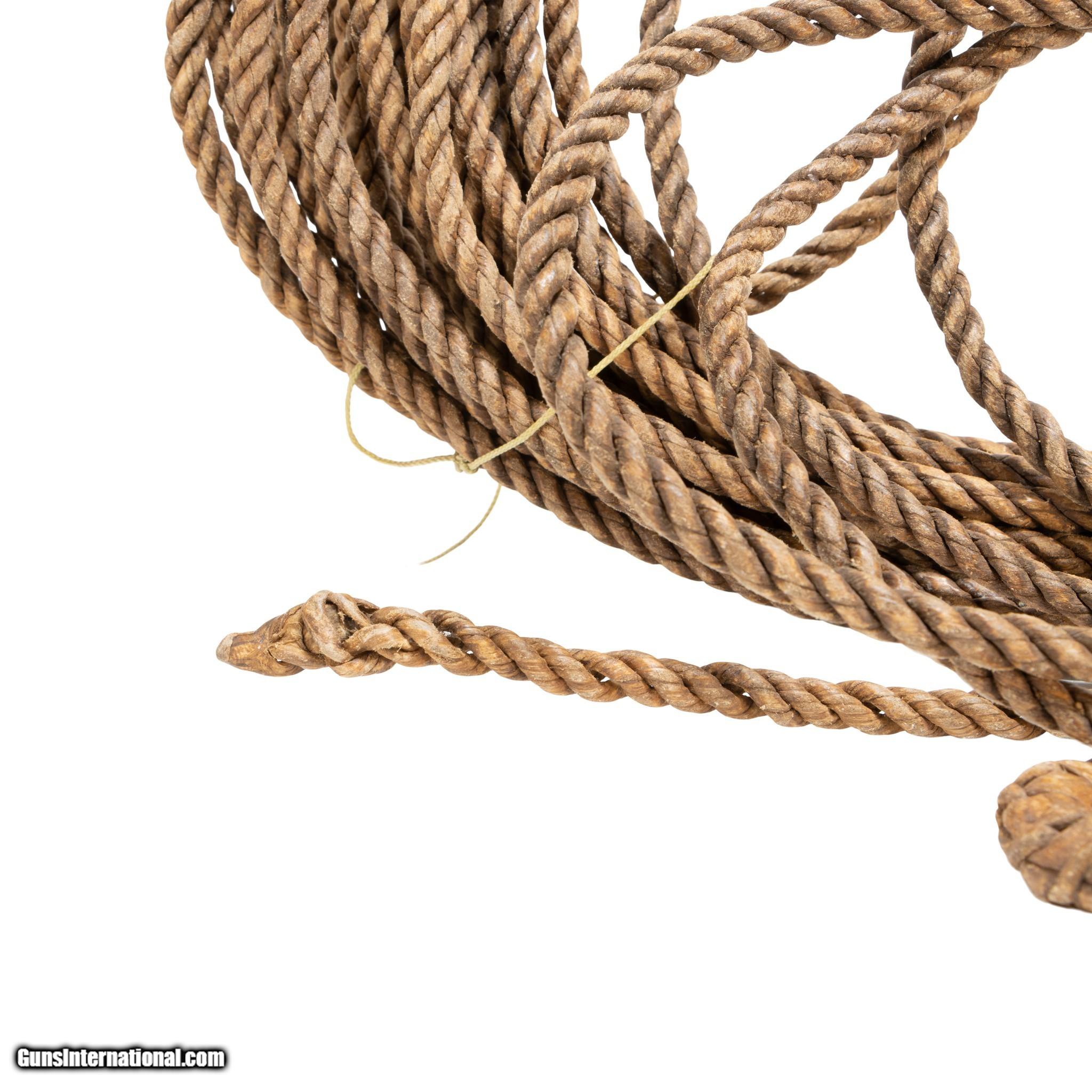 Description: Extra long 85 foot rawhide riata in seldom seen twisted rawhide with a fantastic hondo and patinated color. Great antique vintage piece that would display nicely in a Southwestern style home, farm or ranch house, or in a Western or cowboy collection. Size: 85' Family Owned & Operated Cisco’s Gallery deals in the rare, exceptional, and one-of-a-kind pieces that define the history of America and the Old West. Our pieces range from American Indian to Cowboy Western and include original items of everyday life, commerce, art, and warfare that tamed America’s frontier. Our 14,000 square foot gallery opened in 1996 in beautiful Coeur d’Alene, Idaho. Personal Service Cisco’s operates on old fashioned values – honesty and integrity, and all of our items are backed by our money back guarantee. We appreciate the opportunity to earn your business. Whether you desire assistance with a jewelry purchase, choosing a gift, identification, or even selling – we hope to be your trusted source SOLD |