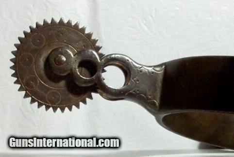 Description: Original Pair of R. L. Causey Spurs; marked R.L.C.; Old Cowboy Spurs with Straps; from my own personal collection; All items shipped fully insured--Spurs $30; return policy: three days inspection from the date the item is received; full refund of shipping both ways ONLY IF THE ITEM IS MISREPRESENTED. Note: International sales only as laws permit. SOLD |