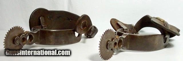 Description: Original Pair of R. L. Causey Spurs; marked R.L.C.; Old Cowboy Spurs with Straps;from my own personal collection; Price: $3,975 shipped;All items shipped fully insured; return policy: three days inspection from the date the item is received; full refund of shipping both ways ONLY IF THE ITEM IS MISREPRESENTED. (Scroll to view 19 photos of this item). SOLD |