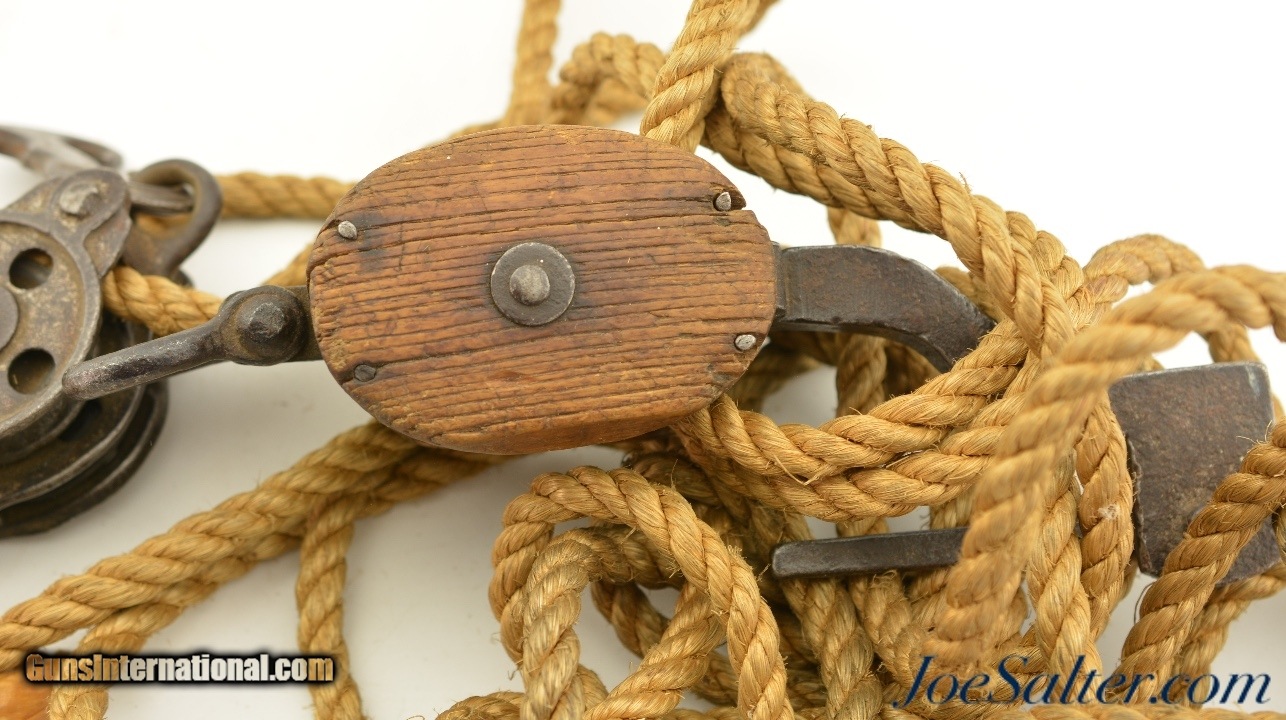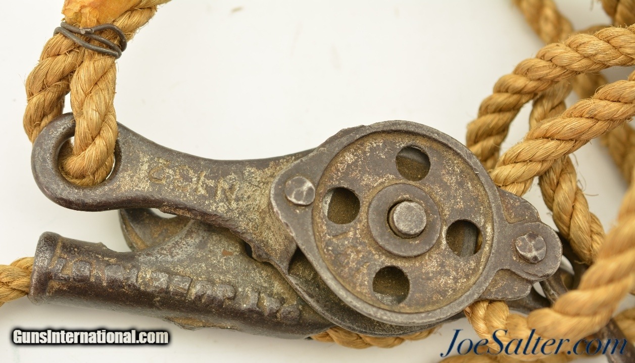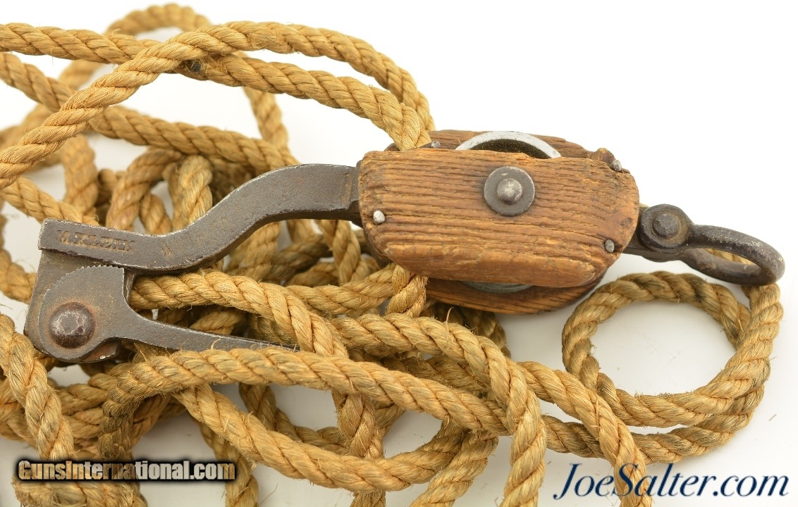 Scarce Antique M. Klein Ranch Fence Wire Wood Block & Tackle Puller