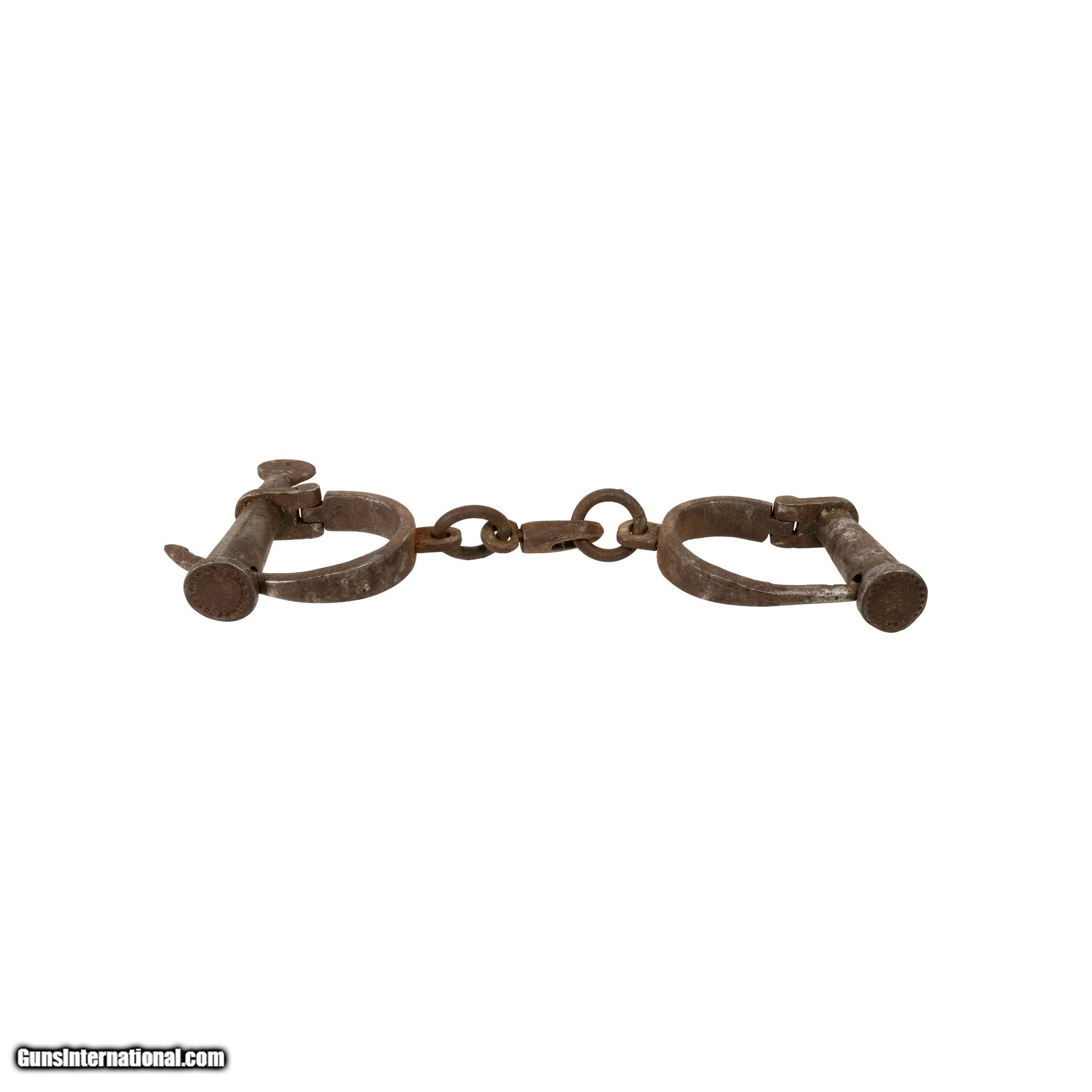 Description: Screw lock cuffs with original key. Unmarked. Cuff 3 1/2" 3" with Chain 10". First quarter 20th century. SOLD |