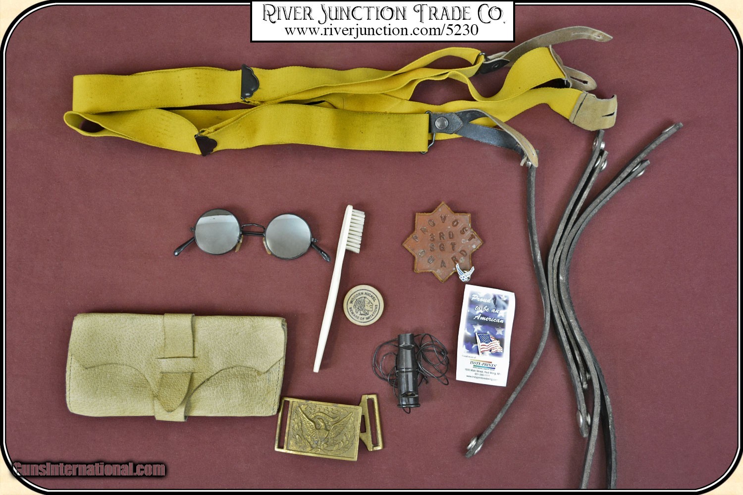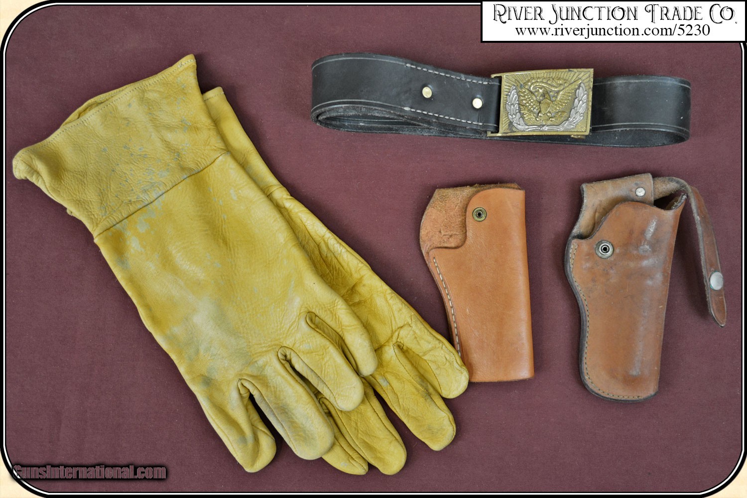 Description: A great bundle full of usable and displayable leather goods. Bundle includes: these items have been in storage for some time and may have a slight musty smell. Most items are usable, some are perfect for display, all are great pieces and perfect for any collector. Sold as is and as a set. At this price Bundle is not returnable for any reason. Payment Cash, postal money order, cashiers check, personal & business checks. Can be ordered with a credit card or paypal on our (riverjunction) just type in the number (5230) in the search box. We always answer questions and entertain offers. SOLD |