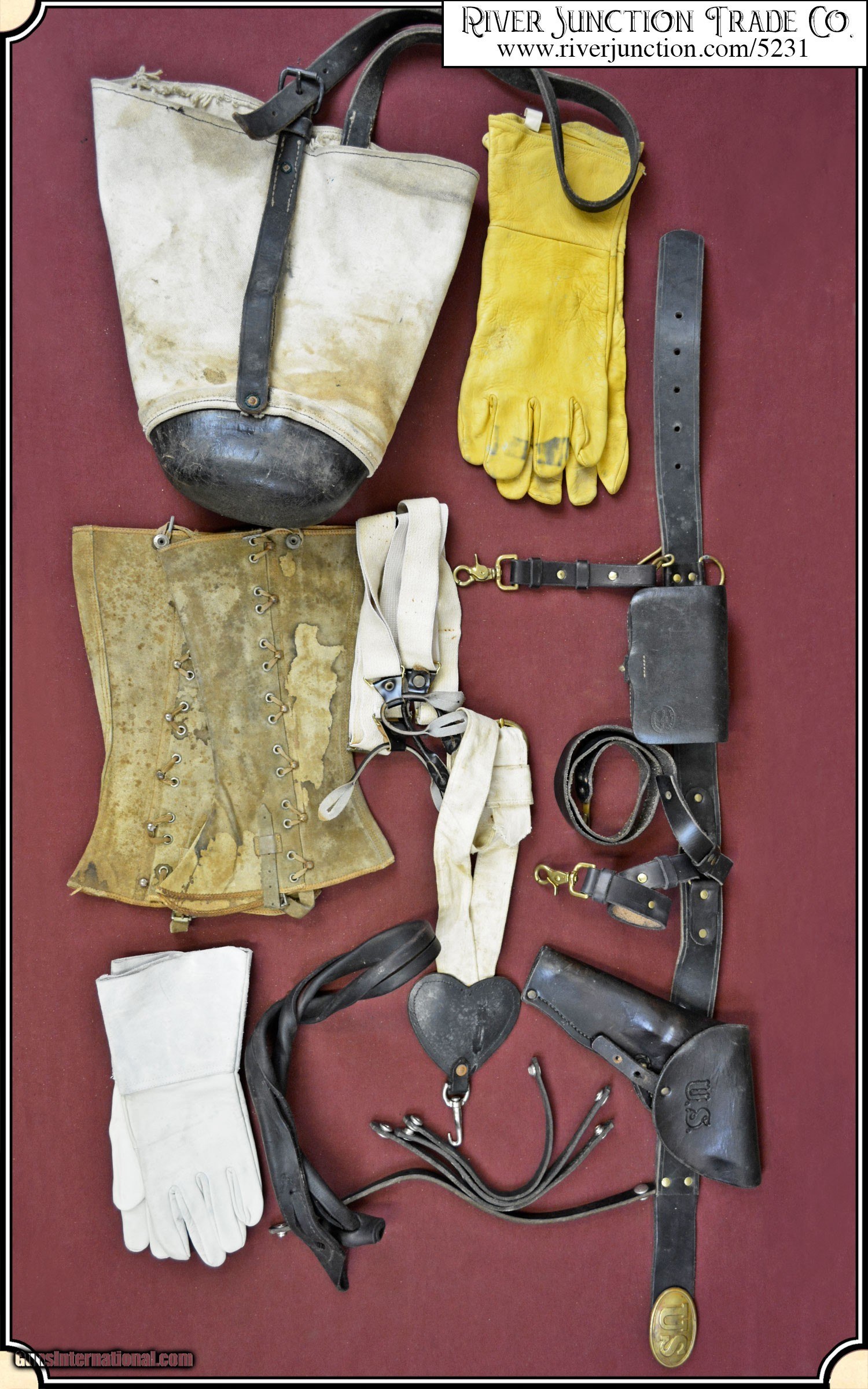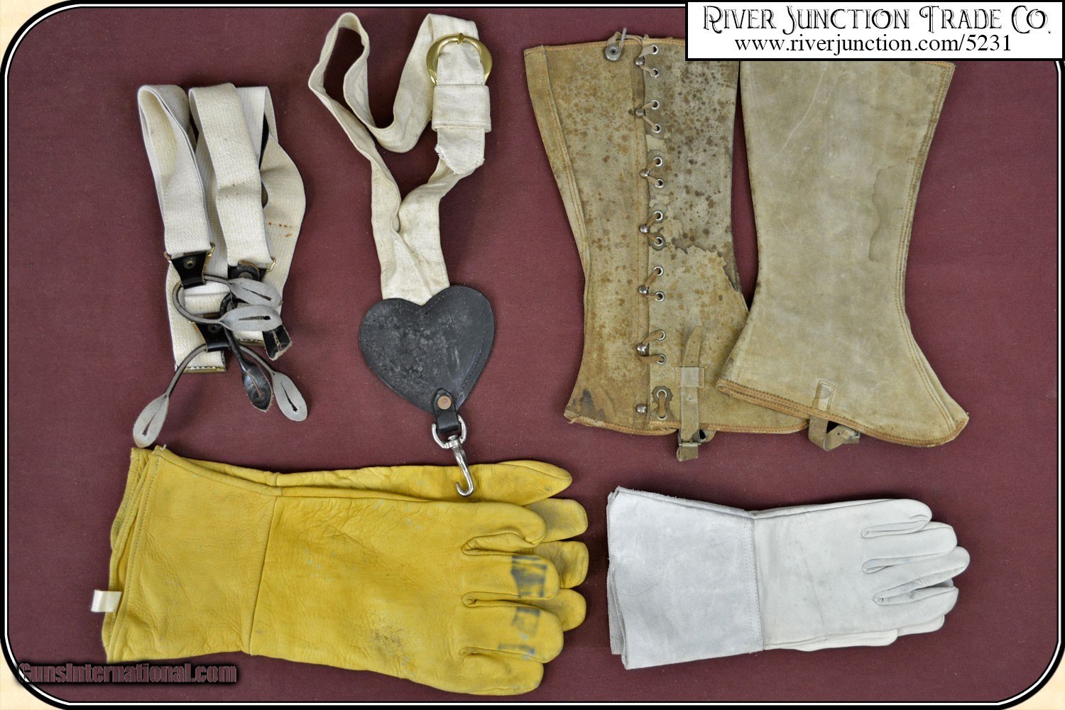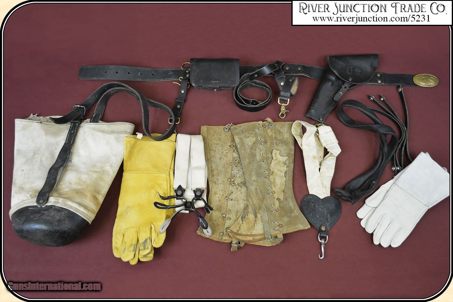Description: A great bundle full of usable and displayable leather goods. Bundle includes: these items have been in storage for some time and may have a slight musty smell. Most items are usable, some are perfect for display, all are great pieces and perfect for any collector. Sold as is and as a set. At this price Bundle is not returnable for any reason. Payment Cash, postal money order, cashiers check, personal & business checks. Can be ordered with a credit card or paypal on our (riverjunction) just type in the number (5231) in the search box. We always answer questions and entertain offers. SOLD |