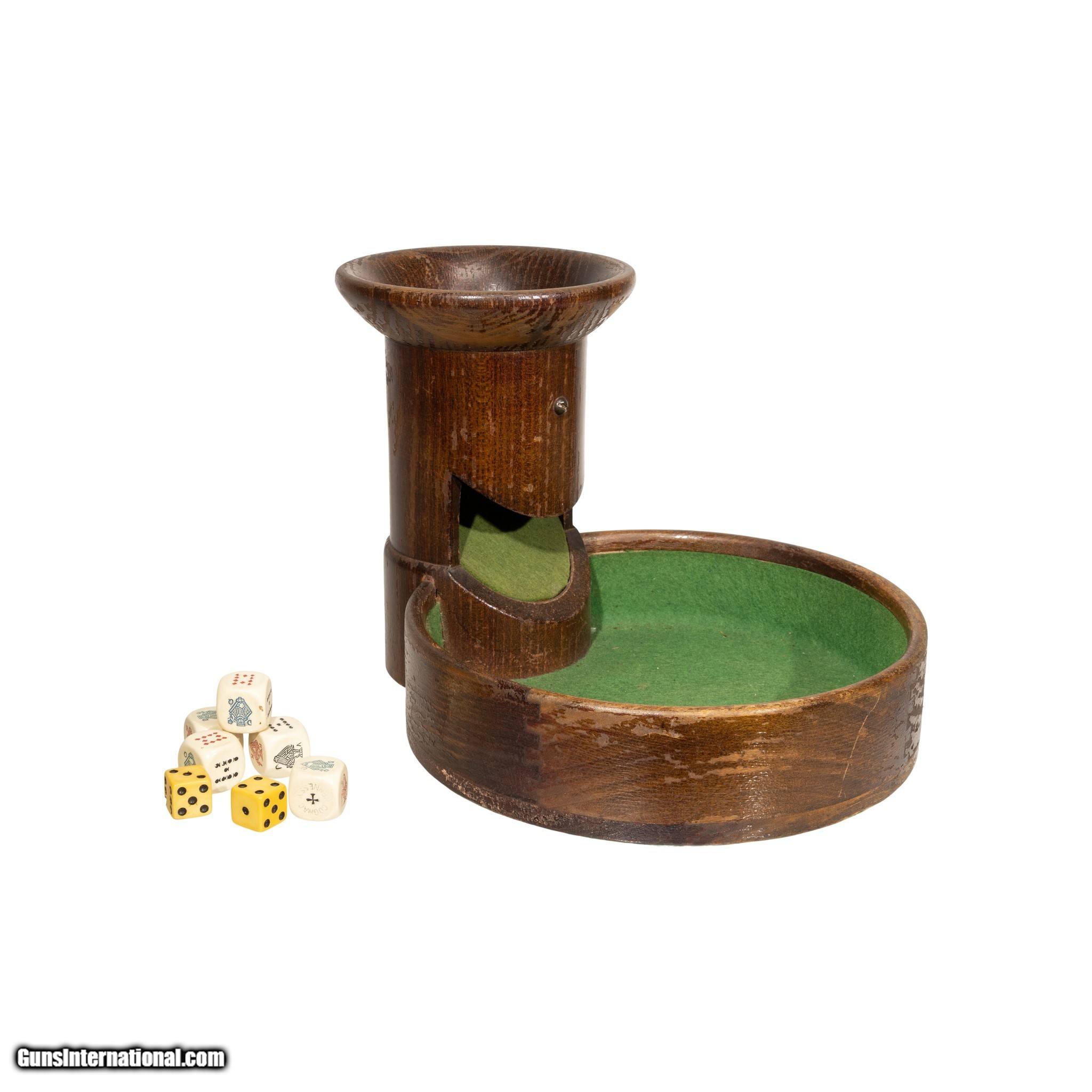 Description: Antique tabletop dice drop/hazard horn. Wooden with green felt. Felted to underside with a vintage pair of dice. Great addition to a Western gaming or gambling collection, or would display nicely in a Southwestern or rustic style home. Size: 7 1/4'H x 10"L Family Owned & Operated Cisco’s Gallery deals in the rare, exceptional, and one-of-a-kind pieces that define the history of America and the Old West. Our pieces range from American Indian to Cowboy Western and include original items of everyday life, commerce, art, and warfare that tamed America’s frontier. Our 14,000 square foot gallery opened in 1996 in beautiful Coeur d’Alene, Idaho. Personal Service Cisco’s operates on old fashioned values – honesty and integrity, and all of our items are backed by our money back guarantee. We appreciate the opportunity to earn your business. Whether you desire assistance with a jewelry purchase, choosing a gift, identification, or even selling – we hope to be your trusted source. SOLD |