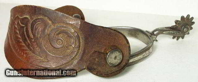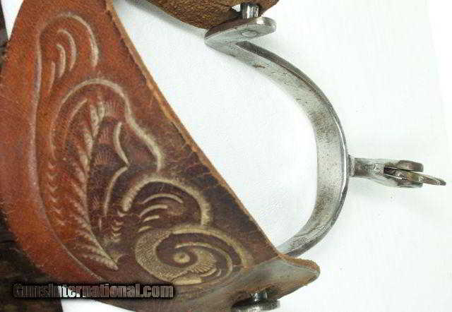 Description: FROM MY PERSONAL COLLECTION!!! Nice pair of Texas Bottle Opener Spurs attributed to R.L. Causey; some silver ‘inlay’ missing; nice straps, which are not as old as spurs;All items shipped fully insured Priority Mail- -Hand guns $30 --Long guns $45; Spurs ; return policy: three days inspection from the date the item is received; full refund of shipping both ways ONLY IF THE ITEM IS MISREPRESENTED. Note: No International sales under any circumstances. Will ship C&R eligible items to C&R license. Antiques shipped without license to anyone EXCEPT New Jersey and City of New York where a FFL is required. SOLD |