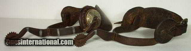 Description: SOLD!!! FROM MY PERSONAL COLLECTION!!! Very early pair of R.L. Causey, Gal Leg Spurs; early ‘RLC’ inside heel band mark; crudely marked like example shown on page 112 of “Bit and Spur Makers in the Texas Tradition” by Ned and Jody Martin and Kurt House; these spurs came out of Las Crues, New Mexico in 1996;All items shipped fully insured--Spurs $30; ; return policy: three days inspection from the date the item is received; full refund of shipping both ways ONLY IF THE ITEM IS MISREPRESENTED. Note: No International sales under any circumstances. SOLD |